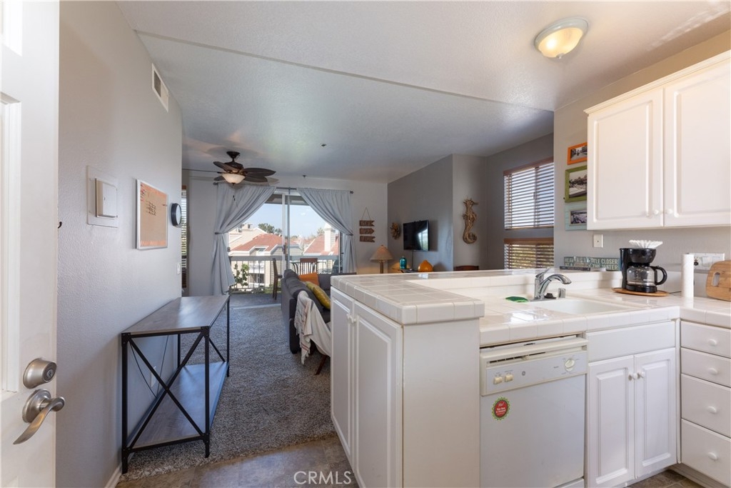 This charming, fully furnished end-unit studio is in the desirable, resort-style complex of Seabridge HB. Ideal corner unit with the ceiling being the only shared wall from above unit, no side walls are shared. This gem features the largest, oversized balcony with mountain views and ocean breezes, with plenty of room for bbq, table and lounge chairs. Large slider opens up to make this unit open and spacious with indoor/outdoor living. Perfect spot for morning coffee or peaceful evenings with cocktails. Light and bright with the perfect amount of sun exposure, with ample windows covered with wood blinds. Updated white kitchen with stainless-steel refrigerator. Bathroom is tastefully updated with white cabinets, large mirror closets and storage next to the oversized, stainless-steel washer and dryer. Close distance to pool and jacuzzi surrounded with tropical beauty. There is one assigned parking spot in the underground garage and plenty of guest parking as you pull through the gate. Seabridge is a tropical, guard gated community with 2 pools, jacuzzies, fitness center, sauna, tennis courts, walking paths and recreation room that can be rented for your parties. One mile to the beach, and close to Pacific City, Main Street and HB Pier and all the restaurants that HB has to offer. Along with the amenities, the HOA dues also cover water, hot water, sewer, heat, termite, trash, security and maintenance and allows 2 dogs. Fully furnished so you can move right in or have it ready for rental income. Perfect for first time homebuyers, rental income or vacation spot. Short term rentals are allowed with HOA with at least 90 days. Unit #111, same size/specs, closed on 9/1 for $440,000. FHA Approved