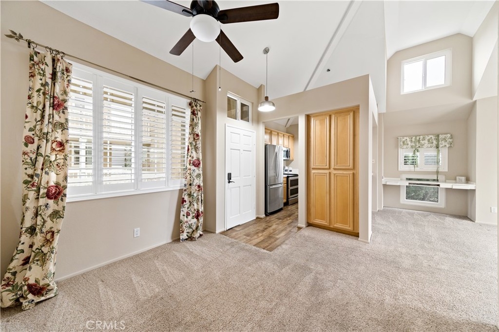 Welcome to Seabridge – your beachside dream home! Don’t miss this amazing chance to own a beautiful top-floor, end-unit home in the highly desired guard-gated Seabridge community – just 1 mile from the beach! This light and bright penthouse-level condo features vaulted ceilings, dual-pane windows, and a large sliding glass door that opens to a private balcony with peaceful views and a spacious storage closet. The custom wood shutters allow plenty of natural light or can be closed for a cozy movie night. The well-appointed kitchen includes stainless steel appliances and opens to the inviting living area, which boasts a wood-burning fireplace, fresh carpet, and new custom paint throughout. The in-unit laundry area offers extra storage for added convenience. While being both FHA and VA APPROVED Community now is the time to enter the Real Estate Market!! The primary bedroom feels extra spacious with high ceilings and includes ample storage along with a generous walk-in closet. The full bathroom features updated lighting and a sun-filled skylight. This home also comes with two assigned covered parking spaces and plenty of guest parking throughout the community. Seabridge offers resort-style amenities including two sparkling pools and spas, a dry sauna, an updated gym with cardio and weight equipment, and four tennis courts. Enjoy 24-hour security with a guarded gate for added peace of mind. All this, just one mile from the ocean and close to Pacific City, downtown Huntington Beach, shops, and restaurants. Summer is almost here, and an easy bike ride to the beach stopping by some restaurants and shops sounds like a wonderful weekend get-a-way. Don’t let this amazing opportunity slip away – schedule your private showing today!