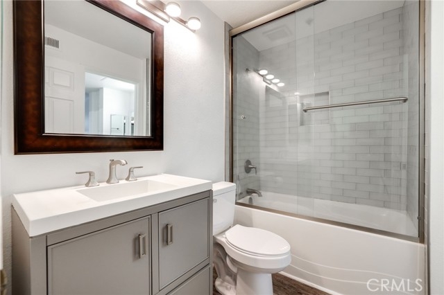 Welcome to this stunning 1 bedroom, 1 bathroom condo located in the pristine Seabridge Villas community! This condo features an upgraded kitchen with granite counters, custom cabinets, newer stainless-steel appliances with a full bathroom that offers a large walk-in closet with built ins. Front door has retractable screen for great breezes. This home also has a balcony off the living room for relaxation and to take in the mesmerizing views of the surrounding neighborhood, and on clear days, the ocean! Double pane windows with black out shades provided in the bedroom for a quiet and private sleeping experience. Subway tile in the bathroom and two separate sinks for personal and guests come with the unit. There are TWO assigned covered parking spaces in the designated parking structure. This community has amenities such as pools, a spa, and a place where you can store your bicycles.