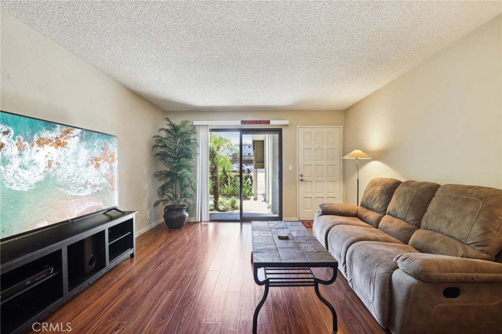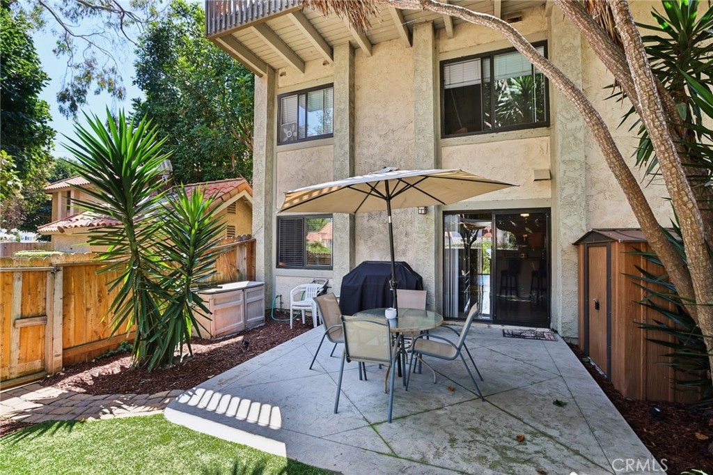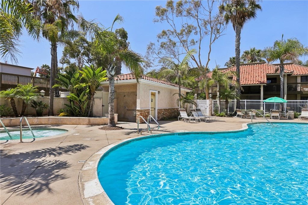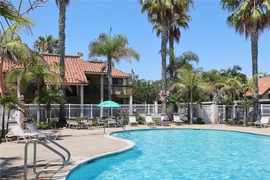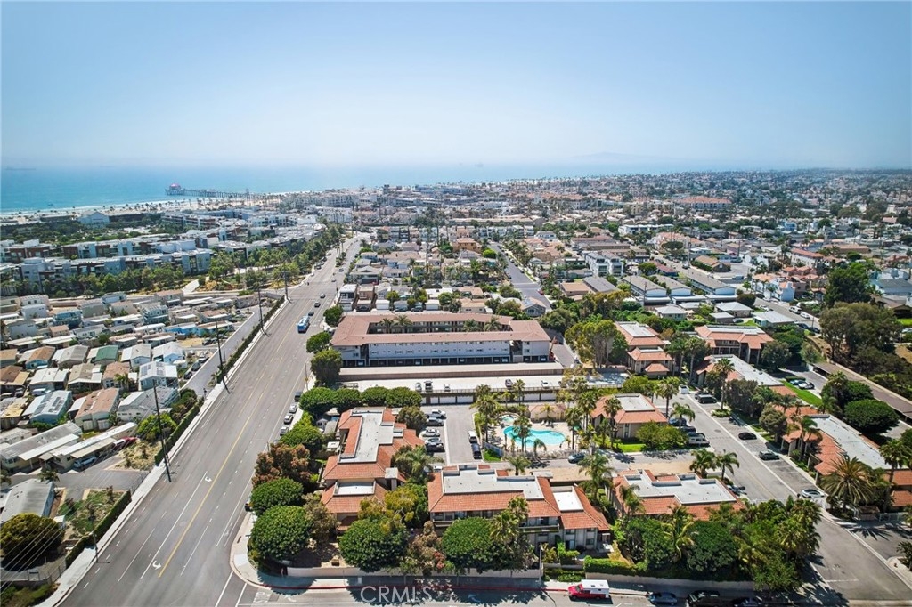 Welcome to coastal living at its finest in this inviting 2-bedroom, 1-bathroom first-floor end unit condo located in the beautiful gated community of Las Brisas. This single-level unit features a well-appointed kitchen with breakfast bar, granite countertops and stainless steel appliances, creating a stylish and functional space for all your cooking needs. In unit laundry is conveniently located in the hallway, adding ease of everyday living, while two generously sized bedrooms offer ample closet space! Step outside to the large and spacious backyard with a seperate side gate entrance and discover a unique tropical oasis with lush landscaping, mature tropical trees, artificial turf, and a storage shed ideal for entertaining and enjoying the refreshing ocean breeze. This unit also comes with one covered carport space and one assigned open parking space conveniently located just outside the unit. Ample guest parking spots are available within the community. Perfectly situated in a highly sought-after location, this home is just a short half-mile walk to the Beach, Pacific City, the Pier, and Main St for easy access to beachside dining, entertainment, and shopping! Community amenities includes a sparkling pool, spa, BBQ area and outdoor shower, perfect for enjoying the resort-style living. The HOA covers water, trash, and grounds maintenance, ensuring a well-maintained and carefree lifestyle. Whether you're seeking a primary residence or an investment opportunity, this condo offers the quintessential Huntington Beach lifestyle with its coastal charm, convenient location, and array of amenities. Don't miss out on this opportunity to experience the best of beachside living!