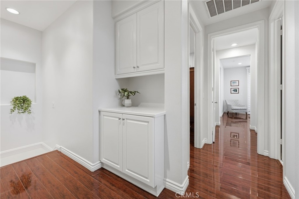 Experience the ultimate coastal lifestyle in this stunning end-unit townhouse, perfectly situated within the prestigious gated community of Pacific Shores, just moments from the iconic Huntington Beach coastline. Built in 2012, this meticulously crafted residence blends modern elegance with timeless design, offering a harmonious balance of comfort and sophistication. Step inside to discover an open-concept layout with natural light, soaring ceilings, and refined upgrades that exude quality at every turn. From the recessed lighting and crown molding to the plantation shutters and neutral tile floors, every detail has been thoughtfully curated. The beautifully updated chef’s kitchen—features gleaming quartz countertops, stylish backsplash, a generous island, and top-of-the-line stainless steel appliances, including a Bosch five-burner gas range. Flowing seamlessly into the dining area and family room, the space is perfect for both intimate evenings and lively gatherings, complete with a cozy gas fireplace and custom built-ins. Upstairs, the primary suite shines with a Juliet balcony, custom walk-in closet, and spa-like en-suite bath with dual sinks and a large walk-in shower. Two additional bedrooms, a beautifully remodeled hall bath, and a convenient upstairs laundry room provide plenty of space and functionality. Outdoor living is equally impressive, with a serene front patio showcasing a custom fire pit and a spacious side yard designed for entertaining under the California sun. Additional features include dual-pane windows, recessed lighting throughout, a tankless water heater, Tesla charger, whole-house water filtration system, and an attached two-car garage with built-in storage. As a resident of Pacific Shores, enjoy resort-style amenities including a sparkling pool and dog park, with easy access to Bauer Park, Huntington Beach’s vibrant downtown, Pacific City, and the world-famous pier. This is more than a home—it’s a lifestyle. Your coastal dream awaits.
