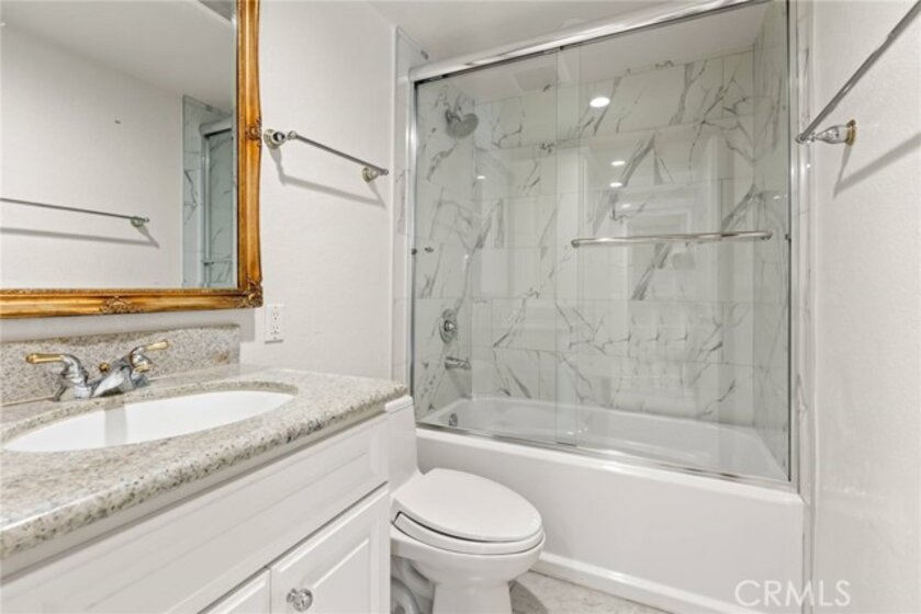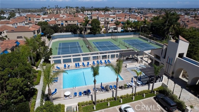 Harbor Views • Coastal Lifestyle • Top-Floor Corner Unit Situated in the coveted, guard-gated Broadmoor community, this top-floor corner unit offers peekaboo views of the harbor and a rare blend of privacy, style, and location. Just steps from the beach, this home invites you to enjoy resort-style living with unmatched convenience. The remodeled kitchen features black granite countertops, sleek matching appliances, and a built-in wine fridge — with the washer, and dryer included. Vaulted ceilings and a gas fireplace create a warm, open living space, where mirrored walls reflect natural light and stunning harbor views. The spacious wrap-around balcony is ideal for relaxing or entertaining. Retreat to the primary suite featuring dual stone sinks, a spa-style river rock shower, and a versatile loft perfect for an office or lounge. Additional highlights include plantation shutters, recessed lighting, ductless A/C, ceiling fans, and a finished two-car garage with built-in storage. Broadmoor offers resort amenities including a heated pool, spa, three tennis courts, and private paddleboard launch access. Walk to top restaurants, Mother's Market, Starbucks, and more — all just across from PCH.