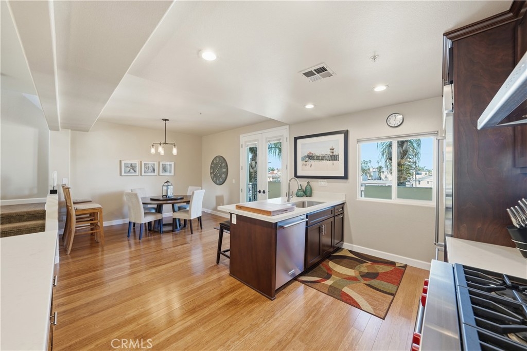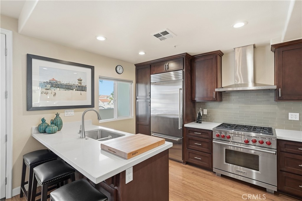 This gorgeous “Beach Close” Plaza Almeria unit has been highly upgraded with current colors and finishes… and, it has a “Great Room” layout which is very desirable! The development features “townhouse style units” which sit on top of a gated parking garage pedestal. Walking to your front door feels like a European Village with fountains, outdoor fireplace, green planters, potted trees, and painted tile accents. The building offers all the amenities you need: elevator, secured bike storage, and ample guest parking. The unit features: 2 bedrooms, 2.5 baths, 1647 square feet of living area, West-facing views, two private balconies, luxury quality kitchen, professional quality appliances, fireplace, laundry room, two garage spaces, and storage. The primary suite has a large walk-in closet, private covered balcony, and a luxury quality bathroom with double sinks, soaking tub, and glass-enclosed shower. Plaza Almeria is a stunning Spanish Revival inspired development located in Downtown Huntington Beach just a few steps from the soft sands and rideable waves of Surf City. It is an extraordinary, gated building in the heart of the vibrant Main Street Village... which includes the Pier, over 30 restaurants, shopping, pubs, and live entertainment. Just a couple blocks away there are three luxury 5-Star Hotels: The Hyatt Regency, Waterfront Hilton, and Pacea which offer numerous additional dining options. These upscale resorts along with nearby Pacific City Development make this one of the most desirable “resort locations” in Southern California. Arguably, the best feature of this property is “year around great weather” and enjoyment of a resort lifestyle… every day is like living a vacation getaway with numerous events and activities: Weekly Farmer’s Market, The 4th of July Parade, US Open of Surfing, Pacific Airshow, AVP Volleyball, Car Shows, and more! With so many fun things to do, your friends and family will come from far & near to visit you at your “Plaza Almeria beach house”. This is an ideal second home or primary residence… If you purchase this unit, you can start enjoying beach living right away because it includes All furnishings, pots, pans, plates... everything you see in the photos except some art (inquire for details). We can do a quick escrow if you like. Be sure to click on the 3D tour icon in whatever system you are using to view the listing!