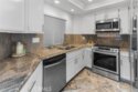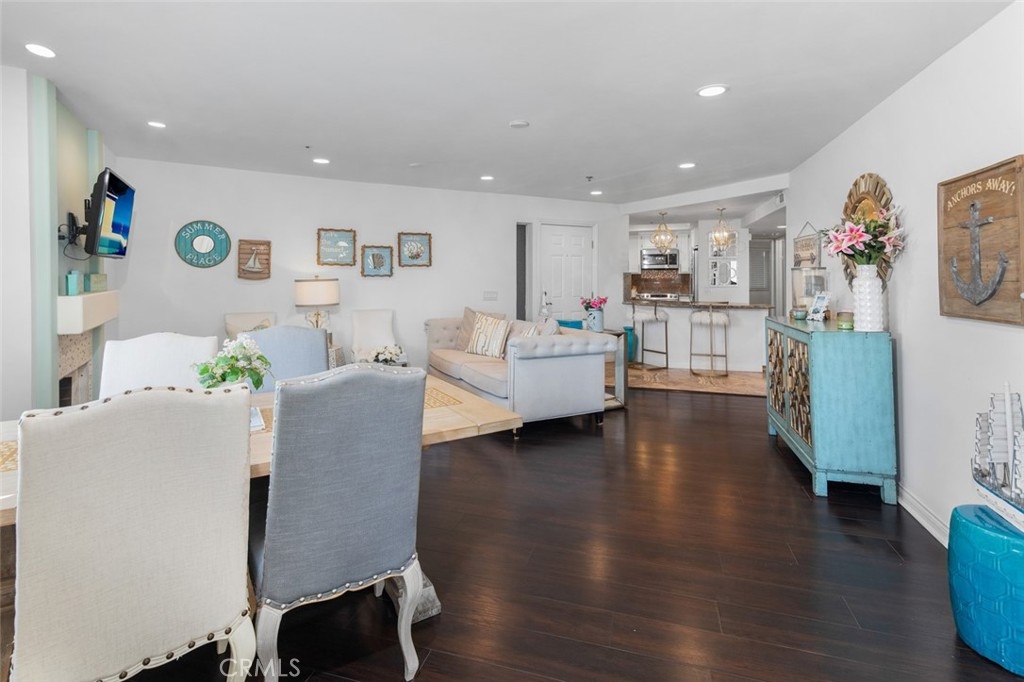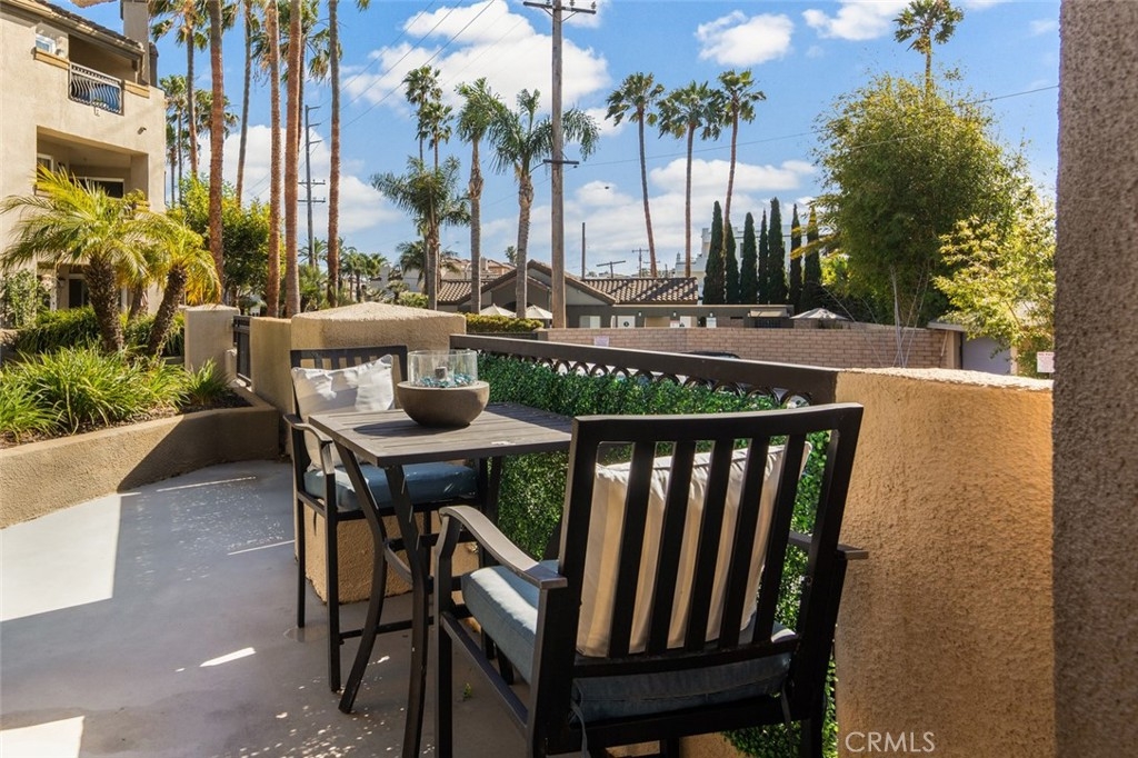 Enjoy this premier Huntington Bayshore location just three short blocks from the sand, within walking distance to Downtown Main Street and the iconic Huntington Beach Pier. Afternoons are spent at Pacific City, indulging in acclaimed dining, boutique shopping, and sunset cocktails overlooking the waves. This beautifully remodeled ground-level 2-bedroom, 2-bathroom home offers an oversized private patio and a timeless coastal aesthetic. Its ideal southwest-facing orientation fills the home with natural light and refreshing ocean breezes throughout the day. The upgraded kitchen features stainless steel appliances, stone countertops, and bar-top seating at the peninsula, opening seamlessly to the spacious family room—perfect for effortless entertaining. Luxury vinyl flooring, recessed lighting, designer paint tones, and a warm fireplace enhance the inviting living and dining spaces. Additional conveniences include in-unit laundry and a well-designed layout. The expansive primary suite offers a remodeled en-suite bathroom with a glass-enclosed shower. The secondary bedroom is paired with a fully updated bathroom, ideal for guests or flexible living. Step outside to your private patio—perfect for all-day sunshine—complete with a deep enclosed storage closet and peaceful greenbelt views toward Main Street. This home also includes two covered parking spaces within a secure, gated garage. Huntington Bayshore residents enjoy resort-style amenities, secure bike storage, enclosed dog park and the convenience of HOA-covered utilities (excluding electricity).
