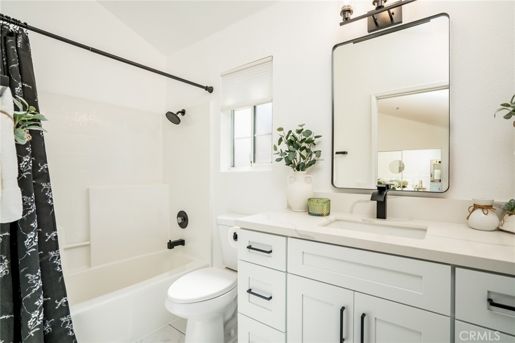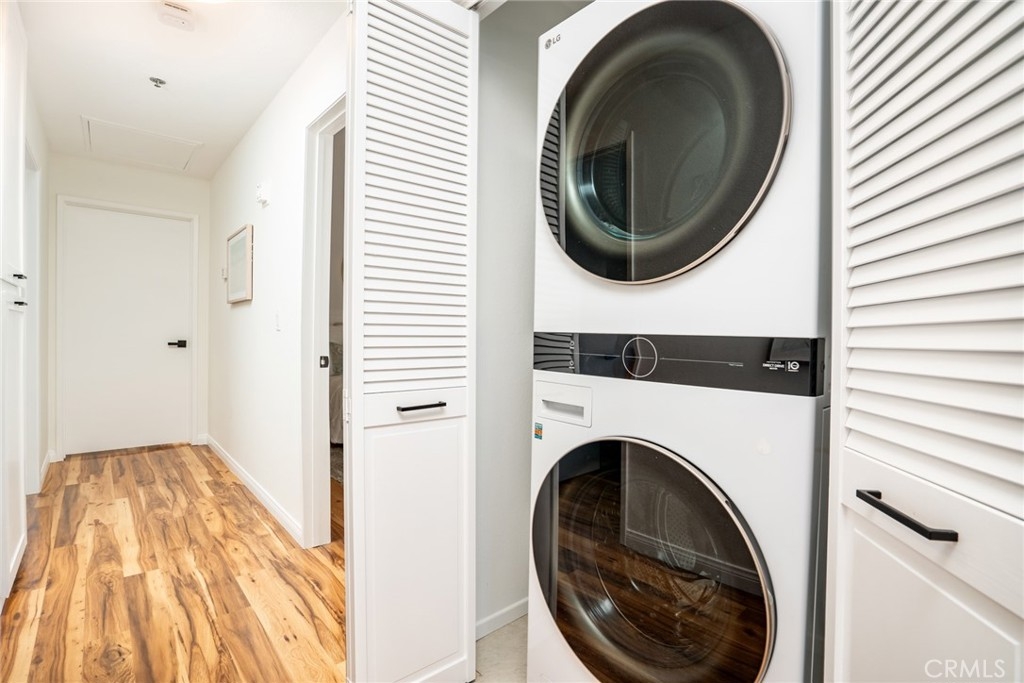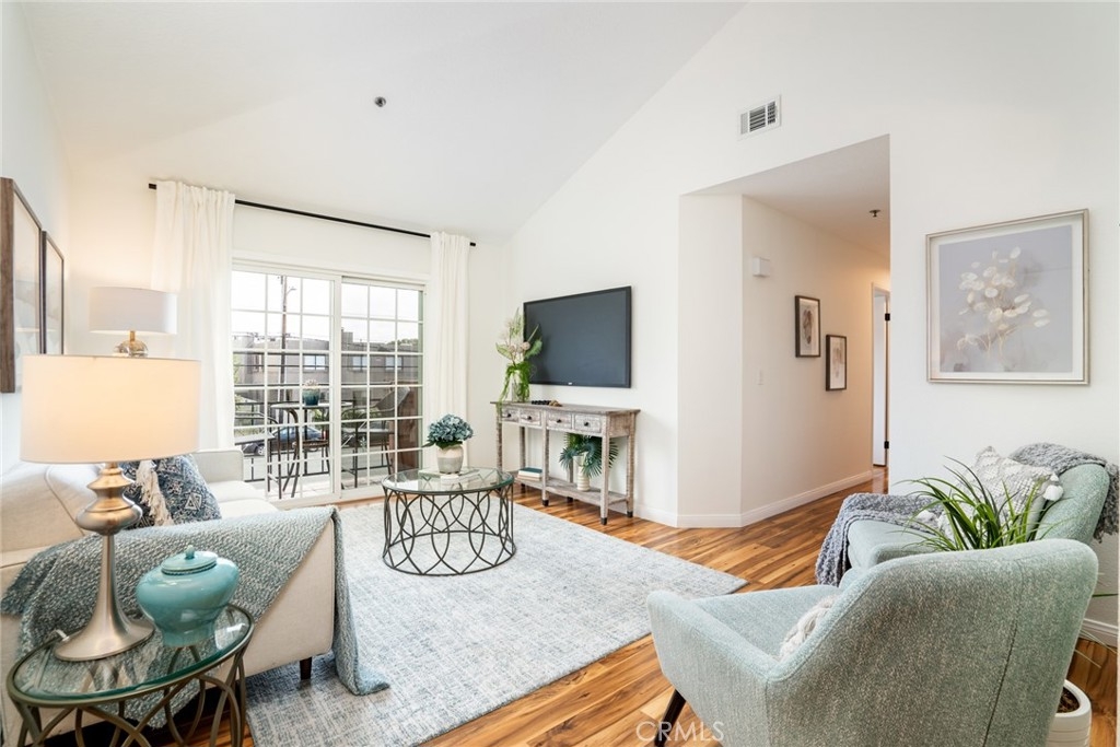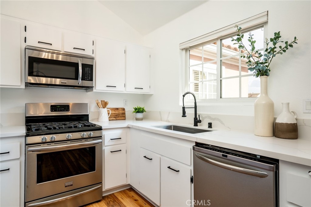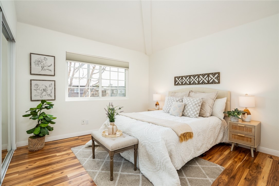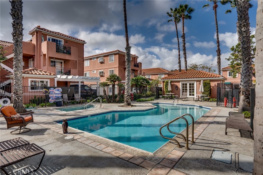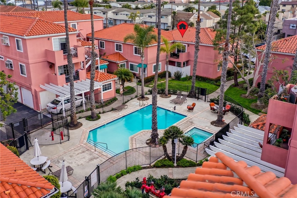 This is your chance to live less than 2 miles from the beach in a super rare and ultra clean 3 bedroom + 2 full bath Brisas Del Mar condo w/vaulted ceilings everywhere. This very desirable community is located in the ultimate Downtown HB destination close to all the important amenities like the beach, restaurants, markets, shops, and top rated schools. The Seller has put so much love into this home and has made it truly move-in ready for you. This home features an upgraded kitchen w/new quartz counter tops + new sink & faucet + stainless steel Frigidaire Gallery appliances, 2 remodeled bathrooms w/new vanities + reglazed tub/showers + new modern fixtures, new interior paint, new door & drawer hardware, and new decorator lighting. Additional upgrades include laminate flooring throughout, dual pane windows & 2 sliders, custom window treatments, mirrored closets, and inside laundry w/included LG washer & dryer. You will love the open feeling that comes from the vaulted ceilings in the living room, kitchen, primary bedroom, and secondary bedroom. The primary bedroom + retreat is amazing with plenty of room for all your furniture + huge double closets. There's even a private balcony that overlooks the pool and is perfect for incredible sunset views every night. This home comes with a one car garage (#17) w/garage door opener + one assigned parking space (#22) very close to your front door. The HOA offers a pool, spa, clubhouse, BBQ area and includes Spectrum basic cable & internet, water, and trash.