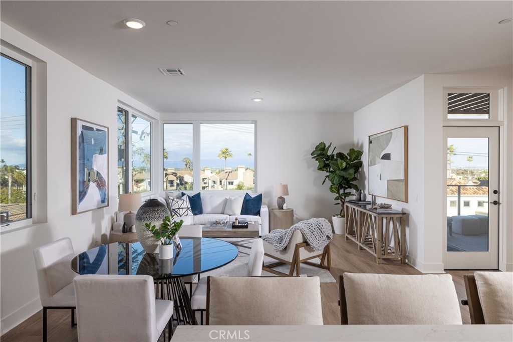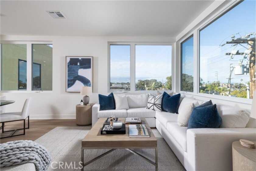 A modern masterpiece in the world of condominiums, this exceptional residence is located in the prestigious ShoreHouse of downtown Huntington Beach. With an open-concept layout that blends functionality with stunning aesthetics, this home offers the perfect balance of style and comfort. Upon entry, you are greeted by a formal foyer that flows seamlessly into the expansive great room, featuring a chef-inspired kitchen with light-veined quartz countertops, top-of-the-line Bertazzoni appliances, under-cabinet lighting, and a large island with bar seating. The kitchen opens to the dining and living areas, which boast 10' ceilings and oversized windows, creating an open, airy ambiance throughout the luxury space. A thoughtfully designed in-home laundry room with a sink and counters is conveniently located near the entry, separate from the living and sleeping quarters. The serene primary suite features dual closets, a dual vanity, and a frameless glass shower adorned with custom designer tiles and finishes. Enjoy the serene, tree-lined, and rooftop views from the expansive private balcony off the living room, perfect for relaxing during those special outdoor moments. The building offers a host of premium amenities, including a rooftop terrace with breathtaking pier and ocean views, an indoor bike storage room, a beach storage room with a shower, underground dedicated parking with electric car charging, and a lobby with a mail room. Immerse yourself in the vibrant downtown Huntington Beach lifestyle, with easy access to shopping, dining, events, and water sports competitions. Whether you're enjoying air shows, fireworks displays, parades, concerts, or simply relaxing on the sand in perfect weather, this one-of-a-kind condo puts you at the heart of it all.