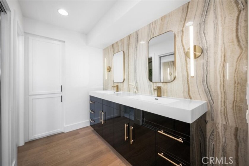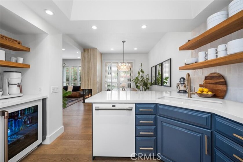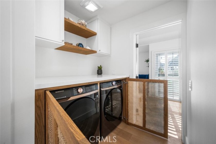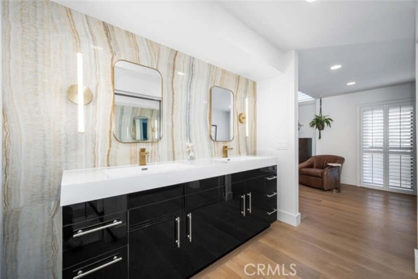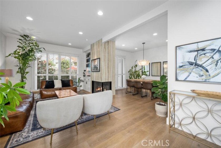 Experience coastal luxury living at its finest in this completely custom-remodeled corner unit, perfectly positioned on a quiet street at the rear of the community for maximum privacy. This beautifully reimagined home features two spacious master suites, two and a half baths, and an open-concept layout designed for modern living. Step inside to discover white oak hardwood floors throughout with a ½-inch soundproofing membrane for enhanced comfort and quiet. The home includes new PEX piping, all-new walls, moldings, doors, outlets, recessed lighting, modern fixtures, ceiling fans, and a contemporary porcelain slab fireplace that anchors the living space. Plantation shutters, dual-pane windows, and sliding glass doors elevate both function and aesthetics. The designer kitchen is an absolute showpiece, featuring all high end Café appliances—including a double oven, dishwasher, refrigerator and beverage center. New upper shelving, a beautifully tiled backsplash, updated hardware, and a convenient pantry complete this stunning culinary space. The primary suite with bonus retreat has been luxuriously updated with new cabinetry, custom closet with built-in features and lighting, a stylish vanity and porcelain slab accent wall in this thoughtfully redesigned bathroom. The secondary bedroom suite is light and bright with vaulted ceilings, walk in- closet, private balcony and en suite full bathroom. The custom upstairs laundry area is equipped with a brand new Samsung washer and dryer, shelving and cabinetry for added convenience. The elegant half bath downstairs also showcases new custom tile, a new sink, mirror, shelving, and modern touches throughout. The attached garage feels like an extension of the home, offering epoxy flooring, built-in shelving, and included storage racks—perfect for organization. Enjoy multiple outdoor spaces with two separate balconies and a perfectly situated patio off the living spaces with views of the beautifully maintained community landscaping. Additional upgrades such as a Nest thermostat, water softener and a new staircase handrail reflect the meticulous level of detail that has gone into every corner of this home. Located just moments from Huntington Harbour, beaches, shopping, and dining, this impeccable residence offers the perfect combination of luxury and coastal ease. Homes with this level of customization and quality rarely become available. Don't Miss Out!!!!