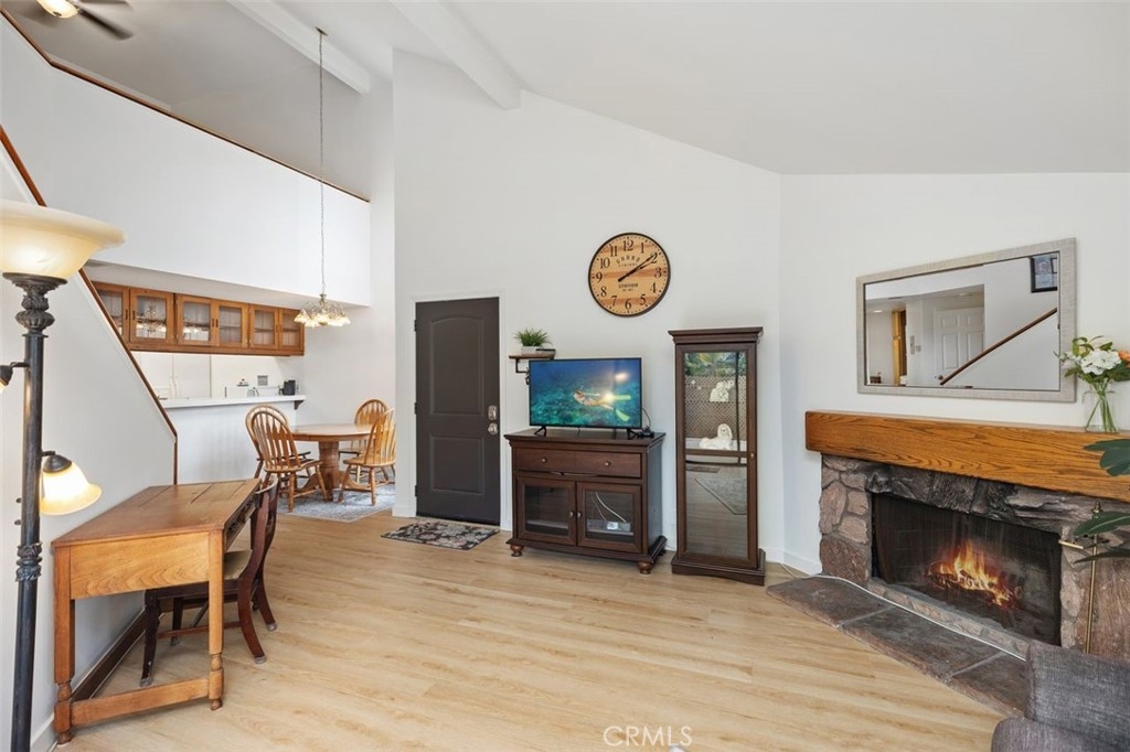 Welcome to your coastal oasis in the sought-after Villa St Croix community! This stunning 1-bedroom, 1-bathroom condo sits just minutes from the sandy shores of Huntington Beach. Nestled within a lush, palm-lined gated community, this home features soaring vaulted ceilings, warm wood accents, and an abundance of natural light. The open-concept living area centers around a cozy stone fireplace, which flows seamlessly into a kitchen with ample cabinetry, inside laundry, and formal dining area, ideal for entertaining. The spacious primary suite features vaulted ceilings and a well-appointed bathroom with a sleek vanity and glass-enclosed shower. A versatile loft provides space for a home office, home gym, or even a second bedroom complemented by a generous walk-in closet. Enjoy resort-style community amenities, including the pool, spa, and manicured grounds, all in a secure, prime location near Huntington Beach’s dining and shopping—schedule your tour today!