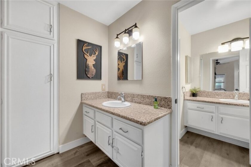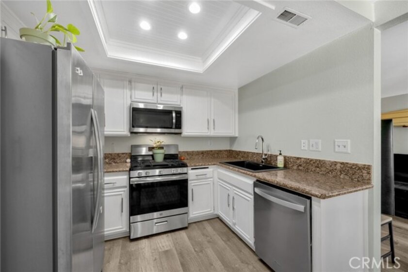 Beautiful townhouse just minutes from the beach. This stylish 2-bedroom is located in a gated community and has a fresh, clean feel with all new flooring throughout, "London Laminate Flooring Micro V-Bevel single click" to include flush stair noise. The light and bright kitchen has recessed lighting, granite countertops, and stainless steel appliances plus matching granite in the bathrooms. The primary bedroom is super roomy with two closets with built-ins, separate vanity area with sink, and even has a extra nook that's great for a small office, workout spot, or extra storage. Additional highlights include ceiling fans in both rooms, convenient 1/2-bath downstairs, two brand new toilets by "Glacier Bay", an inside laundry, attached garage, upgraded stair railing, large private patio with slider off kitchen/dining area, and a well-maintained community setting. Move-in ready and close to the coastal breezes, shopping dining, and more - this is a great spot to call home!