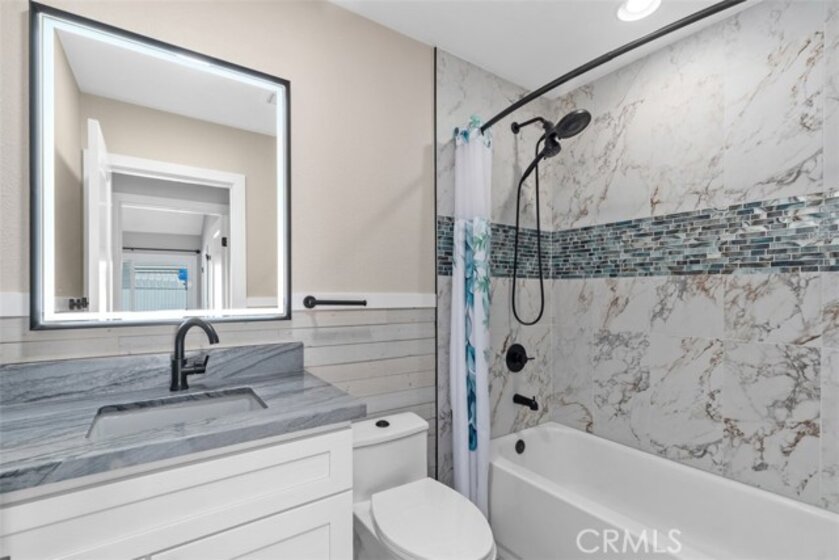 Welcome to 4482 Shorebird Drive, a beautifully reimagined 2-bedroom, 2-bathroom condo in the heart of Huntington Harbour. Designed and decorated for effortless beach-style living, this home has been 100% remodeled with luxury finishes, creating a modern coastal retreat just a 10-minute bike ride to Huntington Beach. Perfectly situated, you’ll enjoy walking distance to Davenport and Humboldt Island beaches, Harbour View School, and the nearby Trader Joe’s shopping center. Inside, soaring vaulted ceilings and engineered hardwood flooring create an airy, inviting feel. The chef’s kitchen features GE Café appliances (2022)—all Bluetooth- and app-enabled—including a gas range, double oven, refrigerator, wine fridge, and dishwasher. Striking Brazilian Quartzite countertops (two full slabs of Florida Wave) pair with custom soft-close cabinetry for a seamless, high-end look. The living room offers an electric fireplace, new windows and doors (2024), and motorized blinds that let in abundant natural light. The primary suite is a true retreat, with heated bathroom floors, a cedar-lined custom closet, and a spa-like shower with rain, wall, and handheld heads. Additional upgrades include a Nest HVAC system (2021), new stair rails, attic access with fan and ladder, and new insulation in all bathrooms. This intimate 21-unit gated community is rarely available and offers resort-style amenities: a pool, spa, clubhouse, and dog park. Two private garage spaces with epoxy floors, laundry hookups, and enclosed systems for a clean, finished feel. Truly a bargain for a fully remodeled Huntington Harbour home. Homes in this community rarely come on the market—don’t miss your chance to own this beach-inspired coastal retreat.