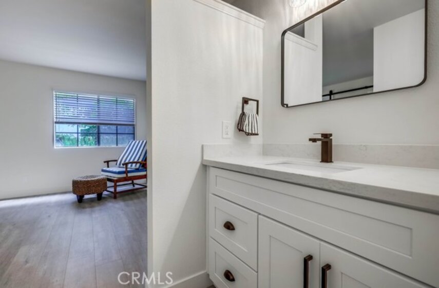 Modern Coastal Living Just Minutes from the Beach – Fully Remodeled 2-Bedroom, 2.5 bath at Pointe Surfside in Huntington Beach! Welcome to your next-level coastal lifestyle. Just 1.5 miles from PCH, this boldly reimagined 2-bed, 2.5-bath first-floor condo in the gated community of Pointe Surfside, delivers sleek design, smart upgrades, and all the indoor-outdoor flow you want—plus resort-style amenities to match. Upgrades throughout – from the floors to the fixtures so you can skip the projects and head straight to the beach. You’ll love the stylish, fully opened-up kitchen with white shaker cabinets, quartz counters, black hardware, new dishwasher, slide-in gas range + modern range hood. The breakfast bar is perfect for casual mornings or relax with friends. Open-concept living + dining area with fireplace and seamless flow for entertaining. Two spacious bedrooms each with private ensuite baths, plus a chic powder room for guests. Totally updated bathrooms with new tubs, designer tile, stylish mirrors, modern vanities, and updated fixtures. High-end waterproof laminate flooring throughout. Modern custom barn doors on bedroom closets, fresh paint, smooth ceilings, modern window treatments, including roll-up shades on sliders. Private patio with new concrete—perfect for weekend hangs, your morning coffee, or creating a lush container garden paradise for plant lovers. There is an in-unit laundry room with hookups, the unit comes with one covered parking space with storage shelf. First-floor location for easy access and enhanced convenience. This unit gives Resort-Style Feel with Everyday Convenience; step outside your door and into a beautifully updated community with everything you need to live your best SoCal life: Pickleball, Tennis, + volleyball courts, sparkling pool & spa, BBQ & outdoor dining area, showers and clubhouse for poolside entertaining. Ample guest and second-car parking available throughout the community, gated entry, lush landscaping, and a welcoming neighborhood feel. All this in a location that puts you close to everything: Huntington Harbour Mall, great restaurants, coffee shops, grocery stores, and easy freeway access. Plus, you're just a short walk to the nearby wetlands—perfect for peaceful nature strolls and sunset walks. This unit is for anyone chasing the laid-back beach lifestyle—with all the luxury finishes to match.