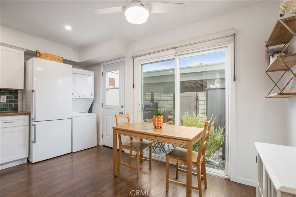 This turnkey townhome style condo is located in the beautiful city of Huntington Beach just minutes from the Harbor and sand. With no one living above or below, you feel the privacy of your own space. The home has been upgraded with wood vinyl flooring, new paint, recessed lighting, remodeled bathrooms, new kitchen cabinets and countertop. Downstairs there is a large living area with plenty of room to host games on the big screen, a storage closet, remodeled guest bathroom, open kitchen with newer cabinets, and an eating area. The kitchen has a patio slider that opens up to a quaint private yard which allows a lot of natural light. Upstairs features two spacious bedrooms with recessed lighting, ceiling fans and closets with ample space for storage. Washer and Dryer hook ups are located near patio door in the kitchen. The private patio area has gated access to the assigned carport space, unassigned parking spot and private storage. Outside and all around the community are lush greenbelts, a community pool, and a huge park that offer plenty of opportunities for relaxation and recreation.