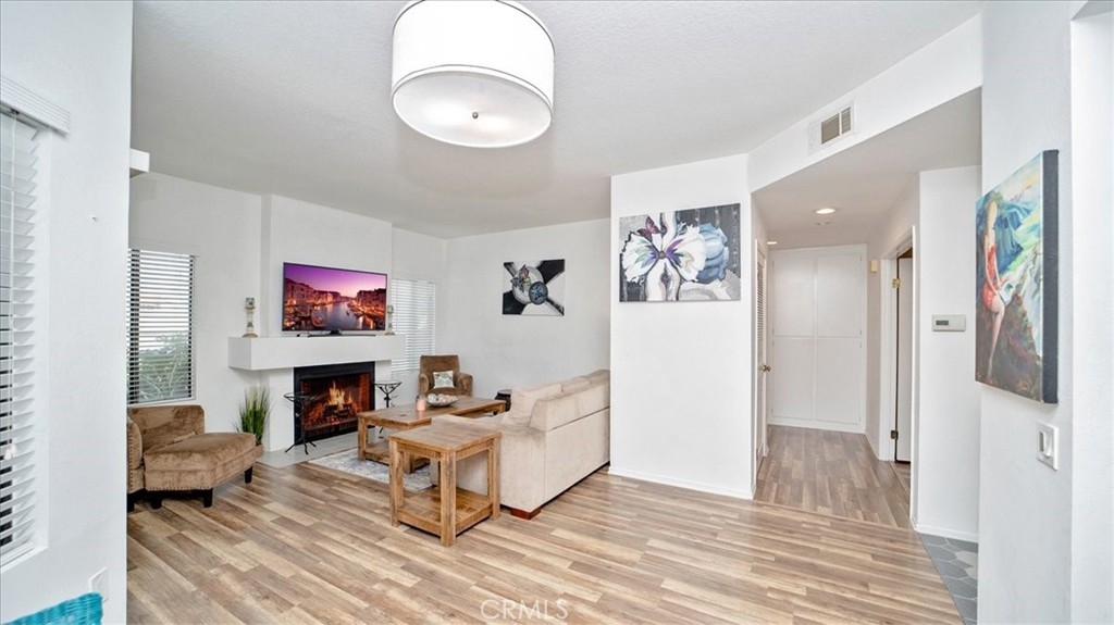 Surrounded with tropical landscaped, this private, two bedrooms , one and a half bath is an oasis in the upscale Tiara de la Pacifica community. This well lit condominium offers an open floor plan with ample outdoor living space. There are two separate patios, one beautifully lined with terra cota pavers next from the living room and the other off the north-facing bedroom. The kitchen has a sunny atrium window and breakfast bar opening to the dining and living room. The living room gets ample natural light from two big windows and a sliding glass door. It has a cozy fireplace too! This home includes a newer refrigerator, stackable washer and dryer and furnace. Plenty of storage too, including walk-in closet, additional cabinetry in the bathroom and sturdy shelves in the garage. This home shows pride of ownership- everything is C_L_E_A_N. Harbour Pointe is a gated community with a pool, spa, clubhouse, tropical foliage and beautiful fountains. Walk or ride to Bolsa Chica wetlands, beach, restaurants, Trader Joe's and Huntington Harbour Shopping Center.
