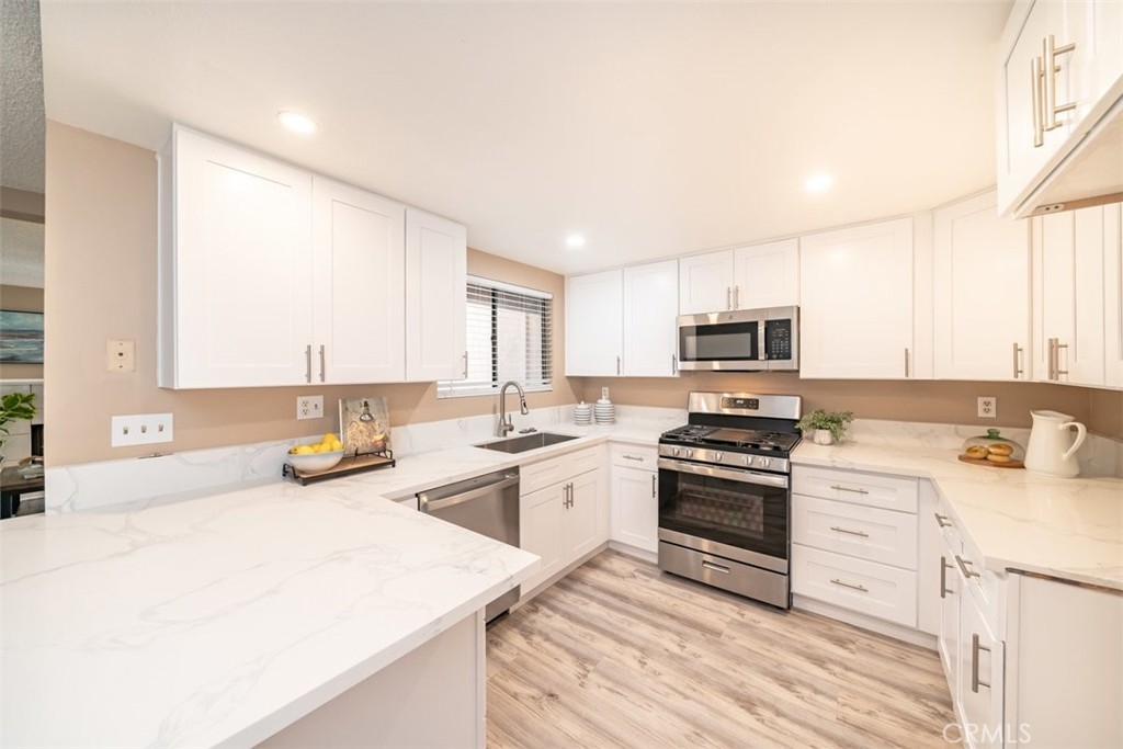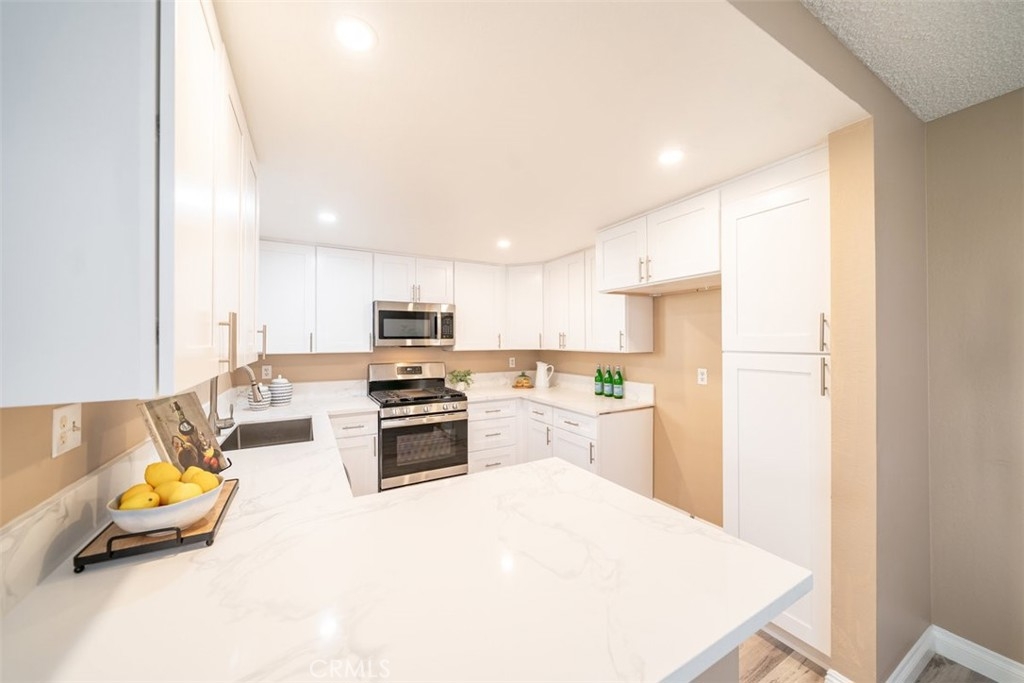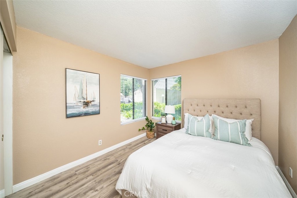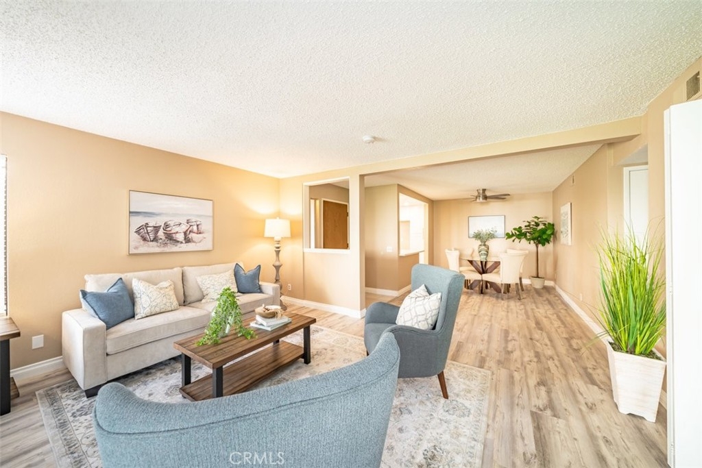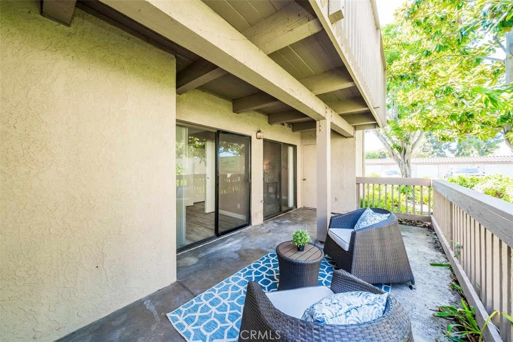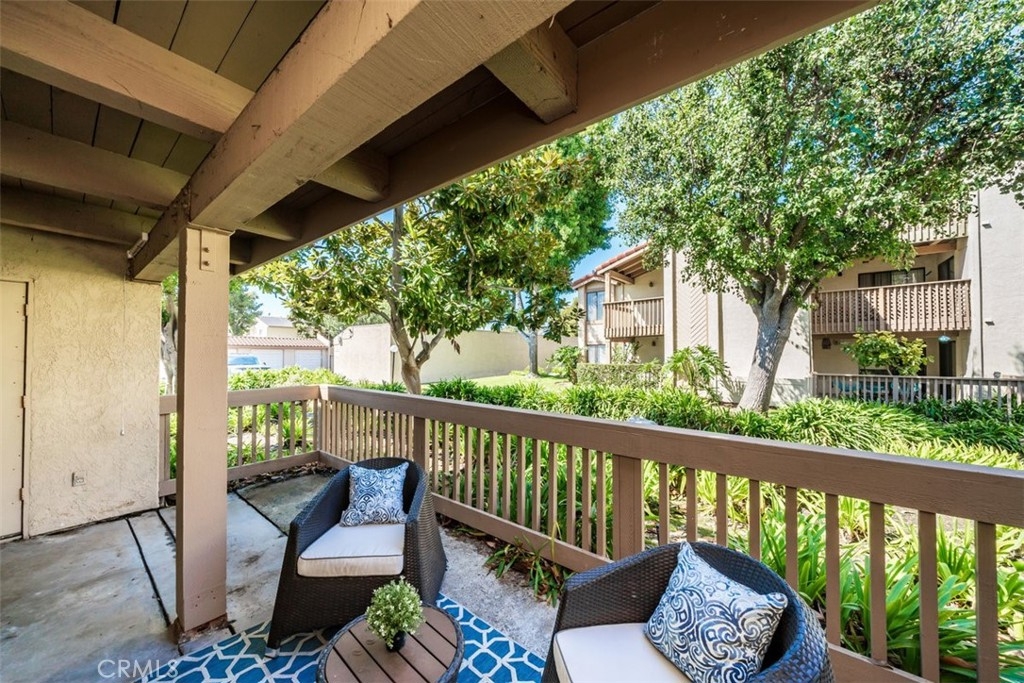 Welcome to your new home in the gated Harbor Vista community in Huntington Beach! This stunning 3-bedroom, 2-bathroom condo offers a blend of modern upgrades and Southern California charm. Conveniently located on the first floor with no stairs, this move-in-ready unit features a brand-new kitchen equipped with soft-close cabinets, brand new appliances, and stylish vinyl flooring. The condo's upgraded bathrooms provide a touch of luxury, while two expansive patios offer serene views of lush greenery and tranquil streams. The primary bedroom is a true retreat, boasting a spacious en suite bathroom with dual sinks, a generous walk-in closet, and its own private patio. Additional highlights include a separate laundry room for added convenience, a private 1-car garage, and an assigned parking spot located very close to the unit. The Harbor Vista community enhances your living experience with amenities such as a pool, spa, clubhouse, and basketball courts. Ideally situated in Huntington Beach, you'll enjoy effortless access to the beach, shopping, dining, and entertainment. Embrace the Southern California lifestyle and make this beautiful condo your new home in Harbor Vista. Water and trash are included in HOA dues. This property is on leased land which expires 8/31/2041 - land lease amount is $230 per month.
