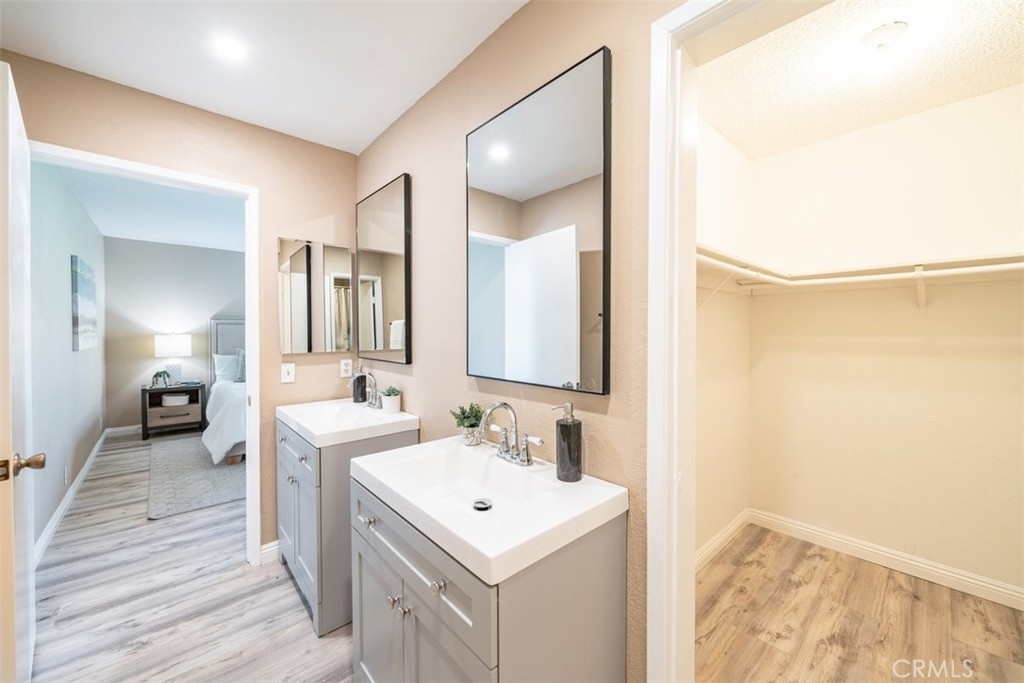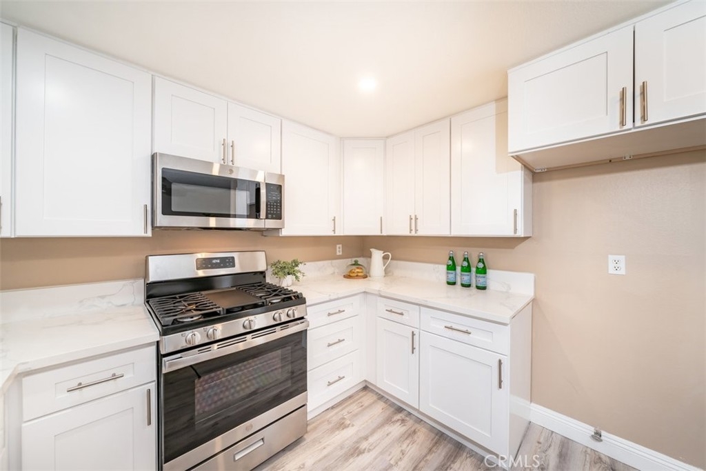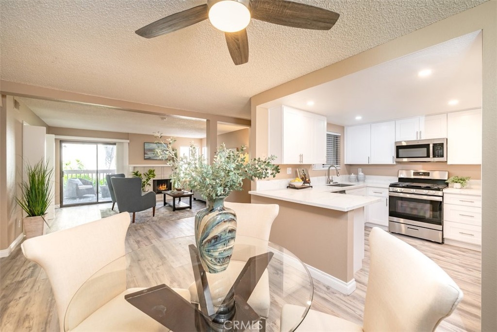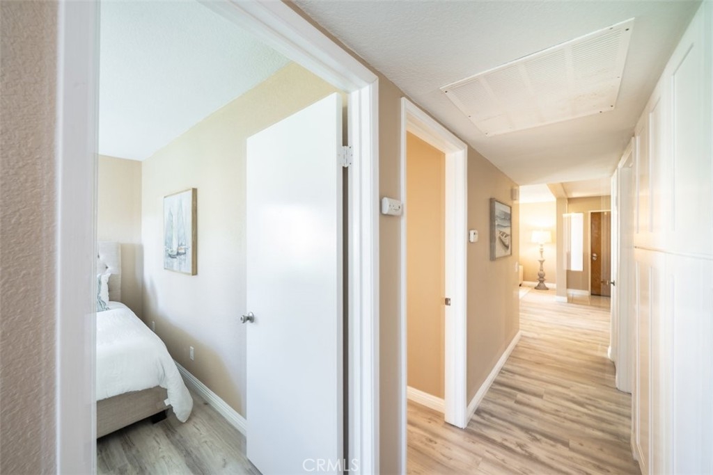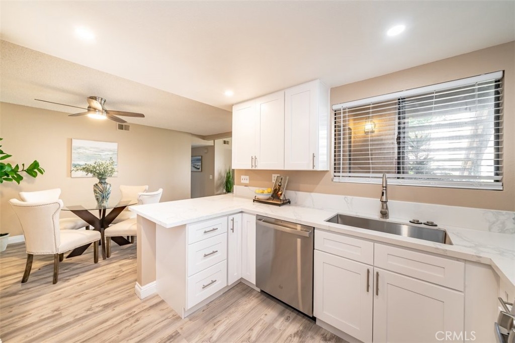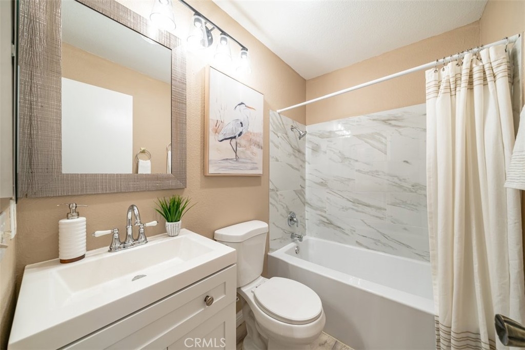 Welcome to your new home in the gated Harbor Vista community in Huntington Beach! This stunning 3-bedroom, 2-bathroom condo offers a blend of modern upgrades and Southern California charm. Conveniently located on the first floor with no stairs, this move-in-ready unit features a brand-new kitchen equipped with soft-close cabinets, brand new appliances, and stylish vinyl flooring. The condo's upgraded bathrooms provide a touch of luxury, while two expansive patios offer serene views of lush greenery and tranquil streams. The primary bedroom is a true retreat, boasting a spacious en suite bathroom with dual sinks, a generous walk-in closet, and its own private patio. Additional highlights include a separate laundry room for added convenience, a private 1-car garage, and an assigned parking spot located very close to the unit. The Harbor Vista community enhances your living experience with amenities such as a pool, spa, clubhouse, and basketball courts. Ideally situated in Huntington Beach, you'll enjoy effortless access to the beach, shopping, dining, and entertainment. Embrace the Southern California lifestyle and make this beautiful condo your new home in Harbor Vista. Water and trash are included in HOA dues. This property is on leased land which expires 8/31/2041 - land lease amount is $230 per month.