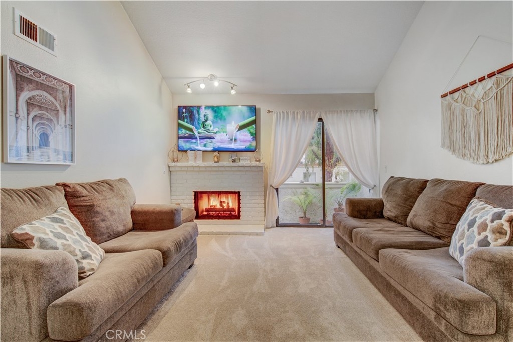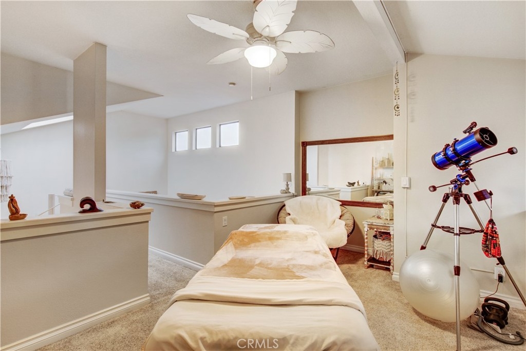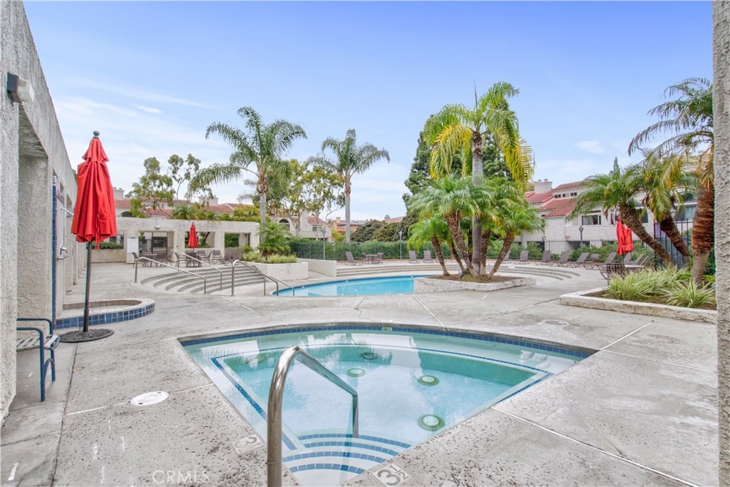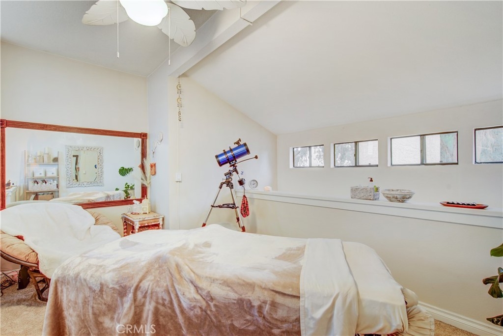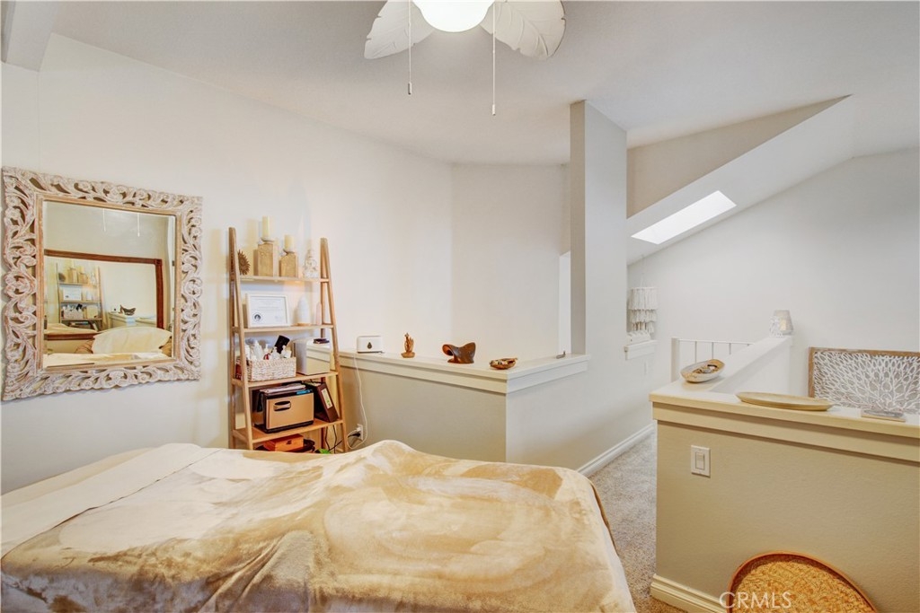Rare opportunity for a highly desirable end unit with loft in Cabo Del Mar! This is the largest floor plan in this gated Resort Style Community in Huntington Beach. This condo is light and bright with extra high Cathedral Ceilings and Skylights through out. New carpeting has been installed in the living room and bedrooms. Kitchen has recently been remodeled with soft close cabinets, Quartz counter tops, stainless steel appliances; including Refrigerator, Built-in Microwave, Dishwasher, and Gas Range/Oven. Kitchen has open concept to the dining room and living room. Dining room has new beautiful fan and hardwood floors. Living room has new carpet and brick fireplace and sliding door that leads to tranquil balcony surrounded by trees. Master bath has extra high Cathedral ceilings, Mexican Talavera sinks and accent tiles. Above the large oval tub there is private star gazing sky windows that lets in lots of natural light during the day. Master bedroom has two large closets with storage space on top of the closets and Cathedral ceilings. Both Living Room and Prime Bedroom has Patio Sliding doors that leads to the large balcony that has a storage closet. Both bathrooms have tile floors and newer toilets. The second bedroom has a large closet with space above closet for storage. The Loft is in addition to the two bedrooms and is very light and bright and can be used has an office, den, storage, etc. Loft has beautiful new a fan. There are two assigned parking spaces in the garage directly below the unit. This community is pet friendly has beautiful grounds with lots of trees, grass, plants and walking areas. It is also next to the wetlands, hiking trails, beach, markets, banks, restaurants and transportation. The amenities include, pool, hot tub, dry sauna, club house, indoor racket ball and tennis courts.