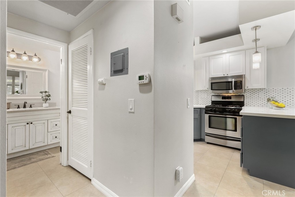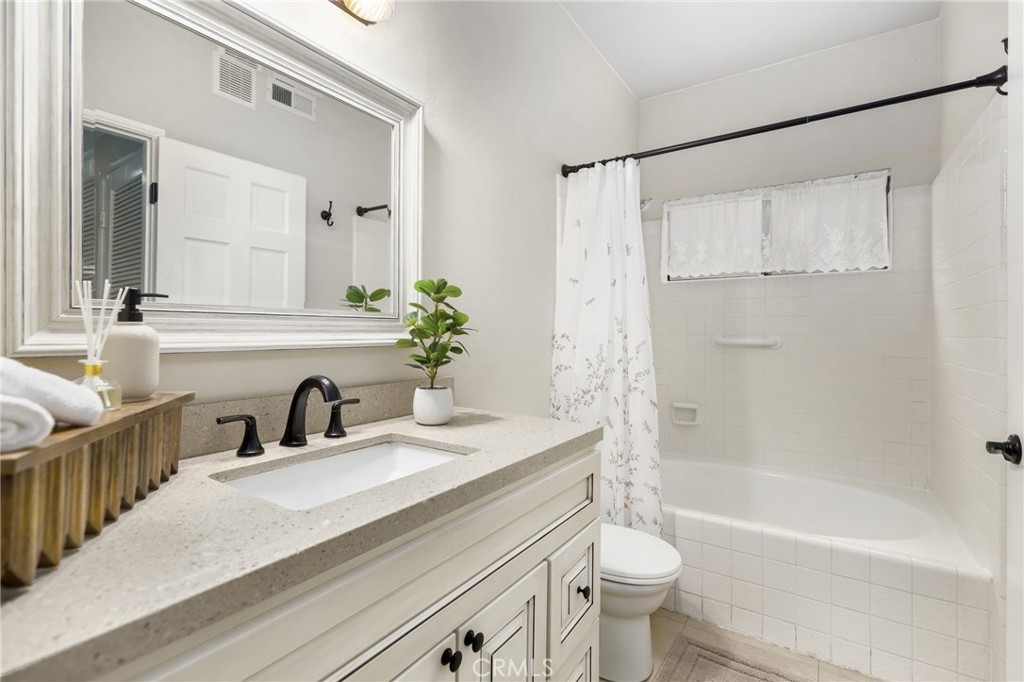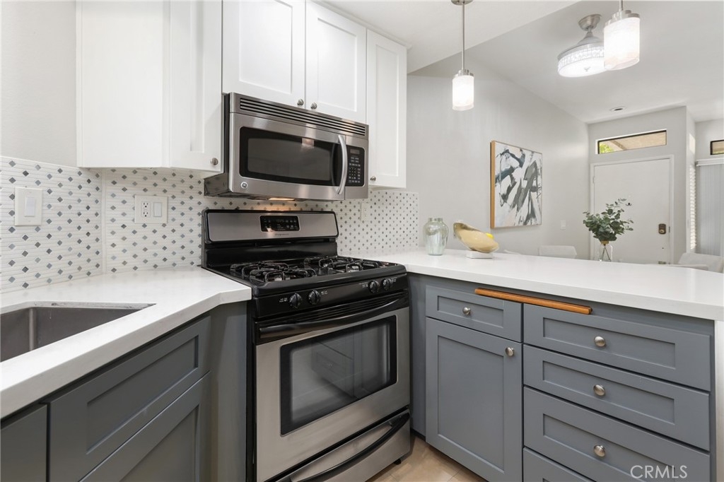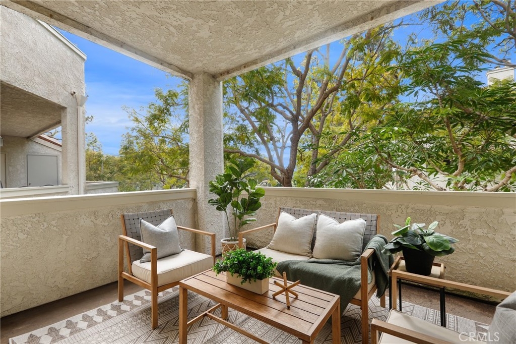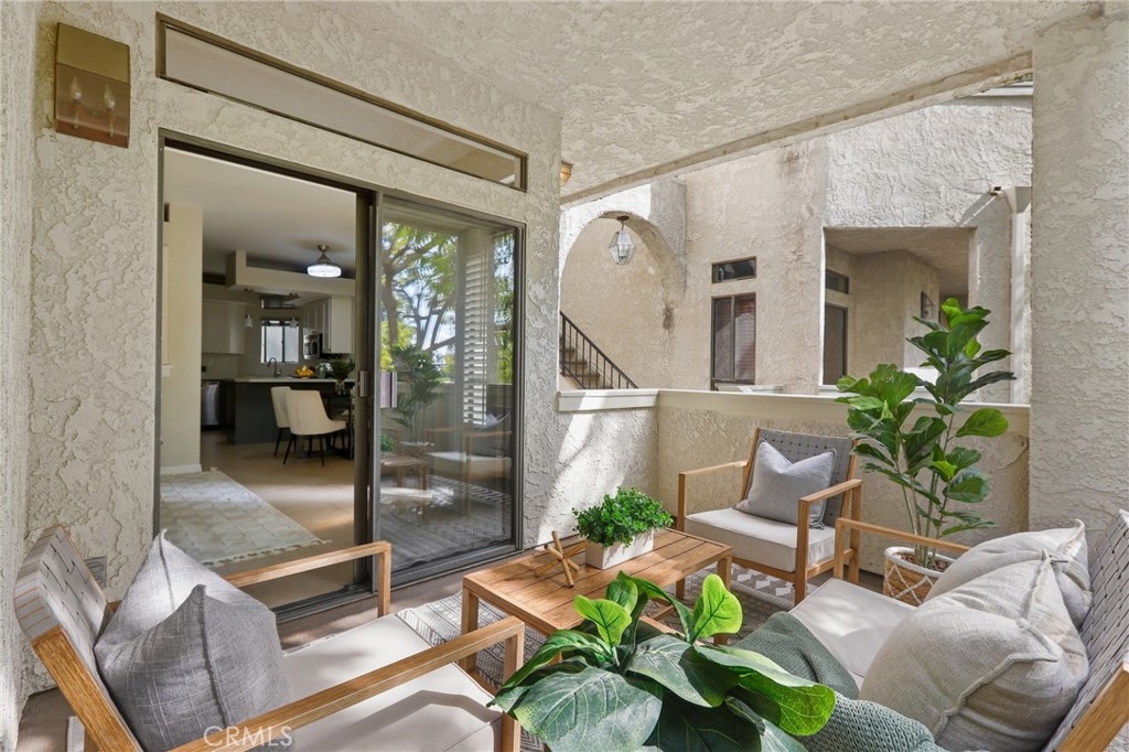 Gated Cabo Del Mar presents this beautiful corner unit in prime Huntington Beach area! Tucked away from busy streets with mature trees makes for a perfect setting! This unit is up one flight of stairs with a very open and spacious floorplan. Feels much larger than SF with high ceilings and perfect amount of natural light! Living room boasts a brick fireplace and flows out to an oversized patio which is outdoor living at its best! Dining space off the updated kitchen with quartz counters, SS appliances, shaker style cabinets, and tile backsplash! Privacy wall added to the bedroom area making this studio perfectly fit! Indoor stackable laundry, linen closet, and outdoor storage as well. Ideal parking spot 185 is directly under unit. Enjoy the beach being about a mile away, hiking trails, biking trails, walking trails, just a block south of the gate. Rivergate park. Bolsa Chica ecological park. .5 mil to Ralph’s and Beachwood pizza and beer. HOAG is less than a mile away as is meadowlark golf club, Trader Joe’s, & Huntington harbor. Less than 2 miles sunset beach and PCH!