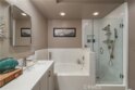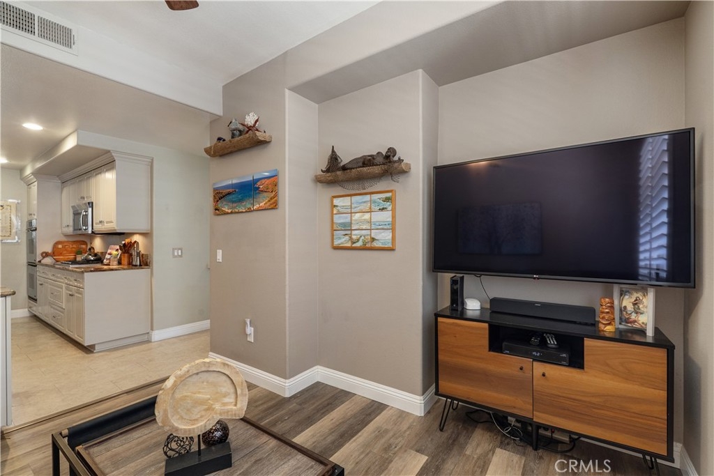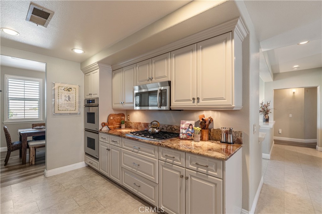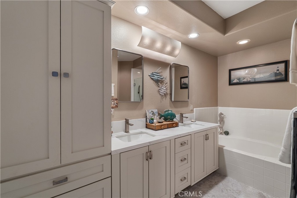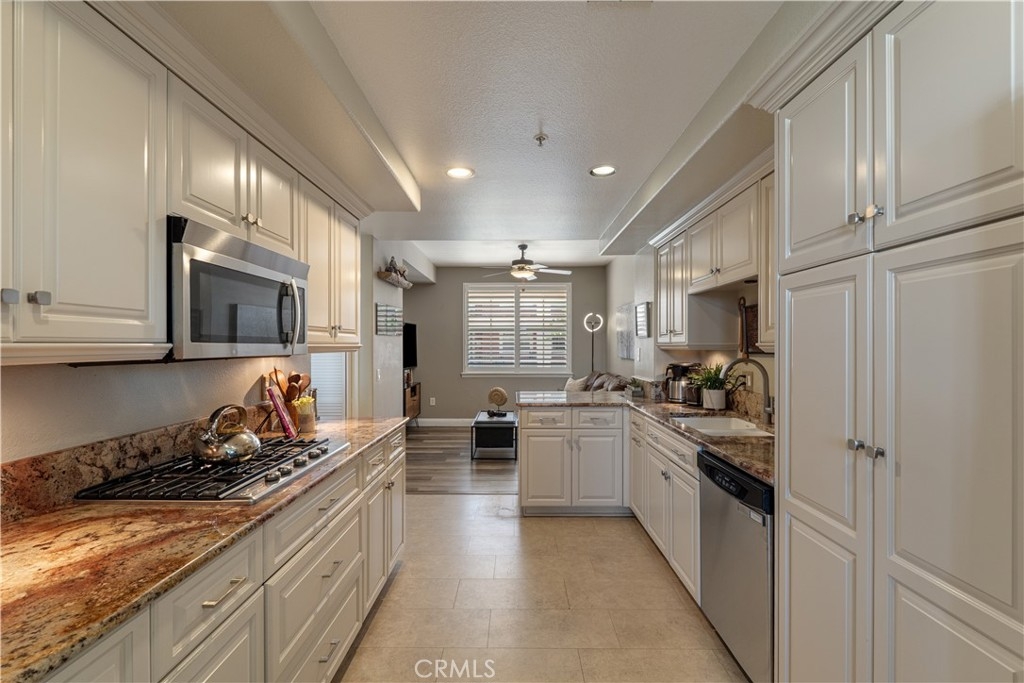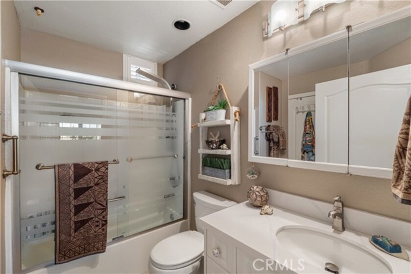 Just up the street from the Bolsa Chica Wetlands, Huntington Harbour, and the coastline sits this beautifully designed 2 bedroom, 2 bath Huntington Beach villa. As you step inside the welcoming entryway, you are greeted by a large living room, filled with abundant natural light and anchored by a cozy fireplace. Neutral vinyl wood flooring flows seamlessly throughout, creating a comfortable, easygoing atmosphere suited for quiet evenings or lively gatherings. The large, remodeled designer kitchen blends style with everyday function, offering high-end cabinetry, granite countertops, stainless steel appliances, and a spacious pantry with pull-out drawers that make staying organized feel effortless. The space invites both casual mornings and more thoughtful meal preparation. Adjacent, a separate den provides a versatile extension of the home, perfect as a home office, media room, or a quiet retreat when you need a little separation from the main living areas. Next, enter the thoughtfully placed dining area, framed by newer windows that invite in soft natural light and create an easy flow between spaces, ideal for both everyday living and entertaining. The primary suite feels like a true retreat, generous in size and designed for comfort, with direct access to the balcony. An ensuite bath has been beautifully updated with a new double sink vanity and quartz countertops, along with a soaking tub and separate shower. The second bedroom offers its own private ensuite bath, providing comfort and privacy for guests, extended stays, or a secondary primary setup. And when you want to enjoy the outdoors, step outside to the private balcony, where gentle coastal breezes and distant mountain views offer a peaceful moment of escape. Throughout the home, thoughtful details like plantation shutters, newer windows and central air conditioning add to the overall comfort, while an in-unit stackable washer and dryer and two side-by-side parking spaces with ample additional storage bring everyday convenience. Beyond the home, the community is well maintained and welcoming, featuring an elevator, a tranquil courtyard with a fountain, and resort-style amenities including a pool, spa, and inviting common areas designed for relaxation. All of this is set in a location near shopping, dining, walking trails and just minutes from the beach. What a beautiful place to call home!