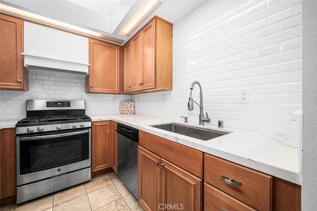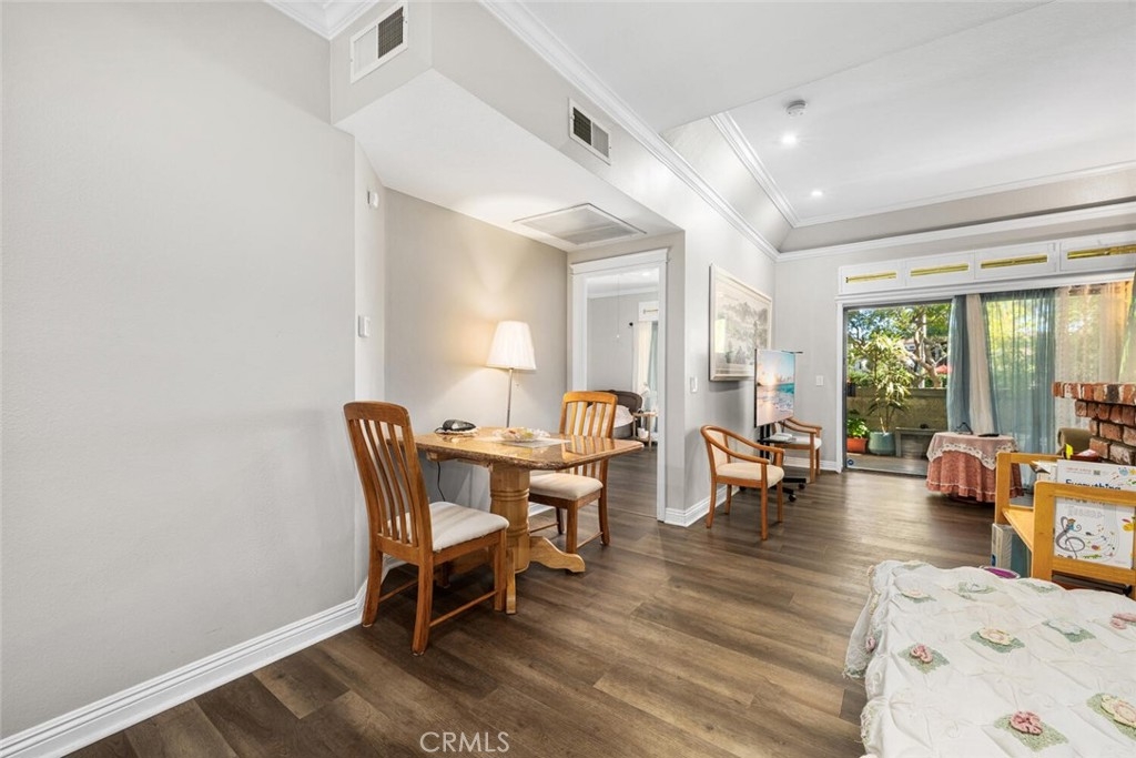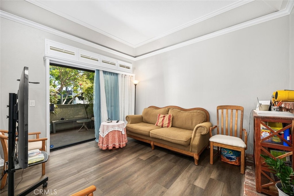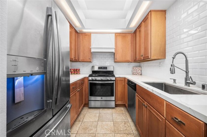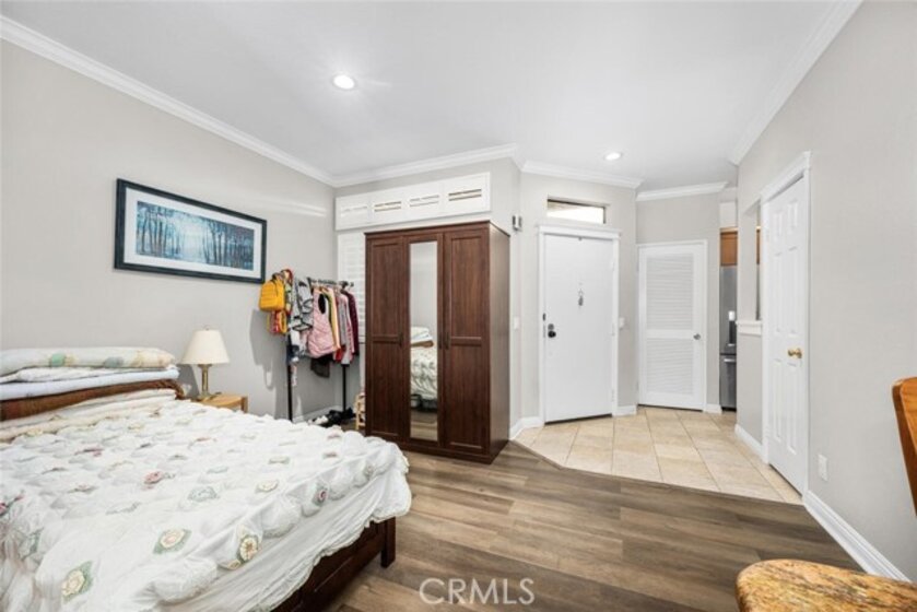 Welcome to luxury coastal living in Huntington Beach’s highly sought-after Cabo del Mar community. Nestled within a quiet, gated enclave, this serene retreat offers resort-style amenities including a sparkling pool, soothing spa, and beautifully maintained lush landscaping. Perfectly positioned within the community, this charming 1-bedroom residence invites in refreshing ocean breezes through expansive sliding doors. Inside, you’ll find a thoughtfully designed interior featuring a neutral color palette, handsome laminate flooring, crown molding, panel doors, elegant shutters, recessed lighting, and a cozy brick fireplace—blending comfort with timeless style. The upgraded kitchen showcases warm wood cabinetry, a stylish tile backsplash, and sleek quartz countertops—ideal for both everyday living and entertaining. The spacious living area flows seamlessly to a private balcony overlooking tranquil greenbelts and the pool, creating the perfect setting for outdoor relaxation. Imagine unwinding with a cool drink as you take in the coastal sunset. The bedroom offers generous double closets and easy access to a well-appointed bathroom with a dual-sink vanity. Additional conveniences include in-unit stackable laundry and a private storage closet on the balcony. Enjoy the best of coastal living with close proximity to world-class beaches, shopping, dining, and endless outdoor activities. This is your opportunity to experience the laid-back elegance of Cabo del Mar—where every day feels like a vacation.