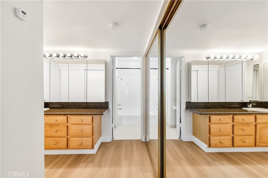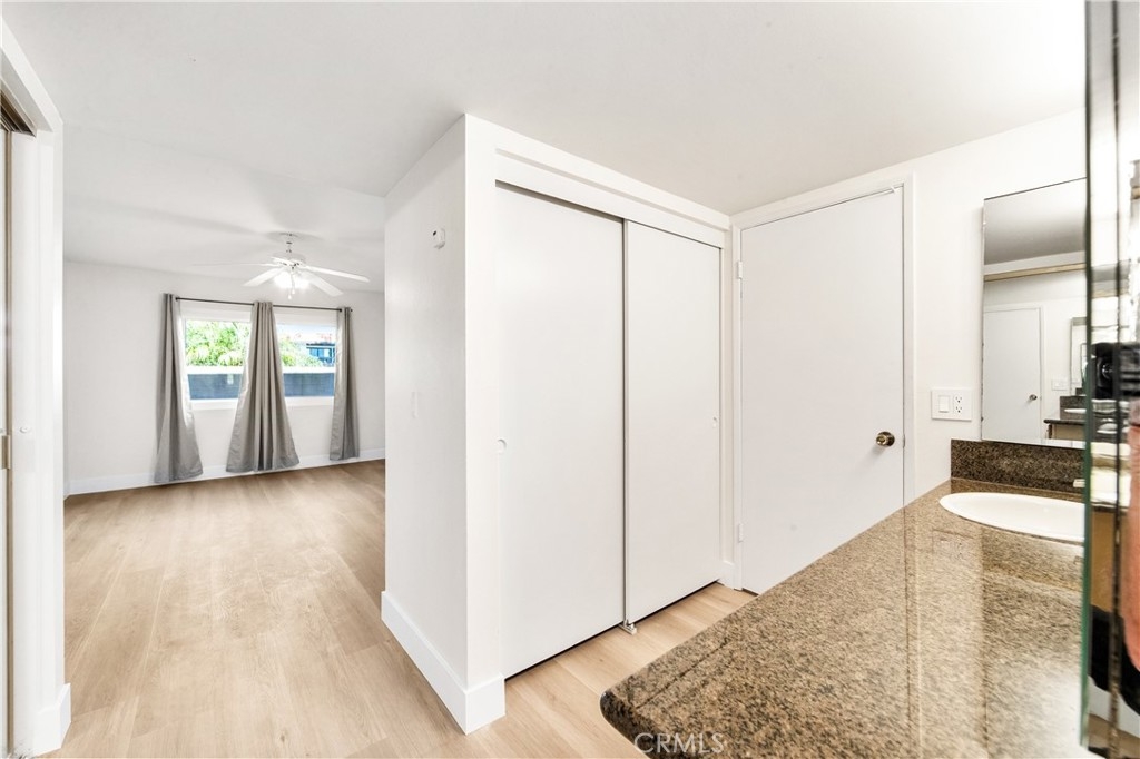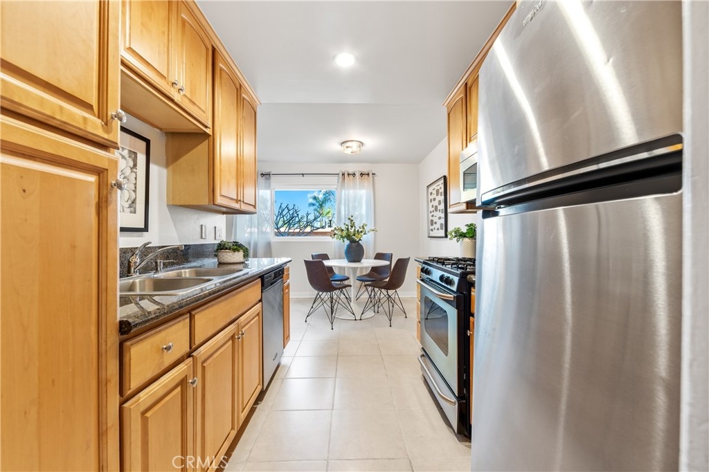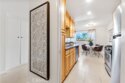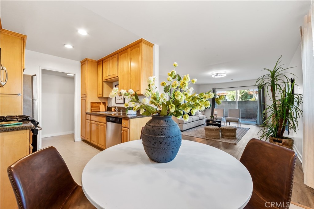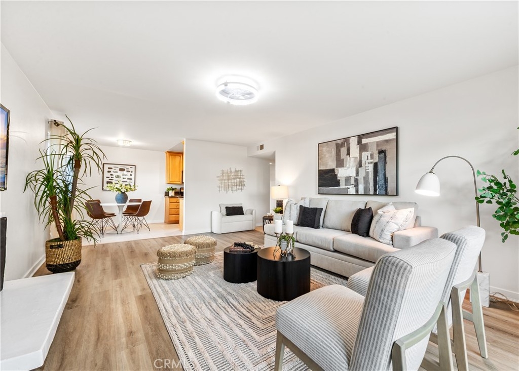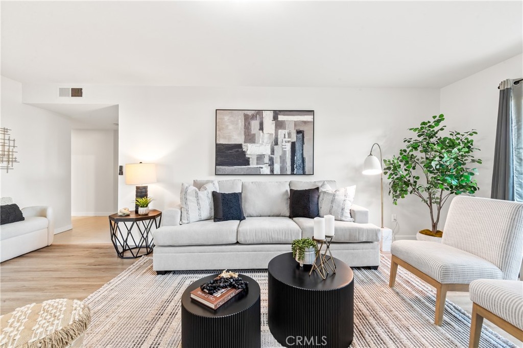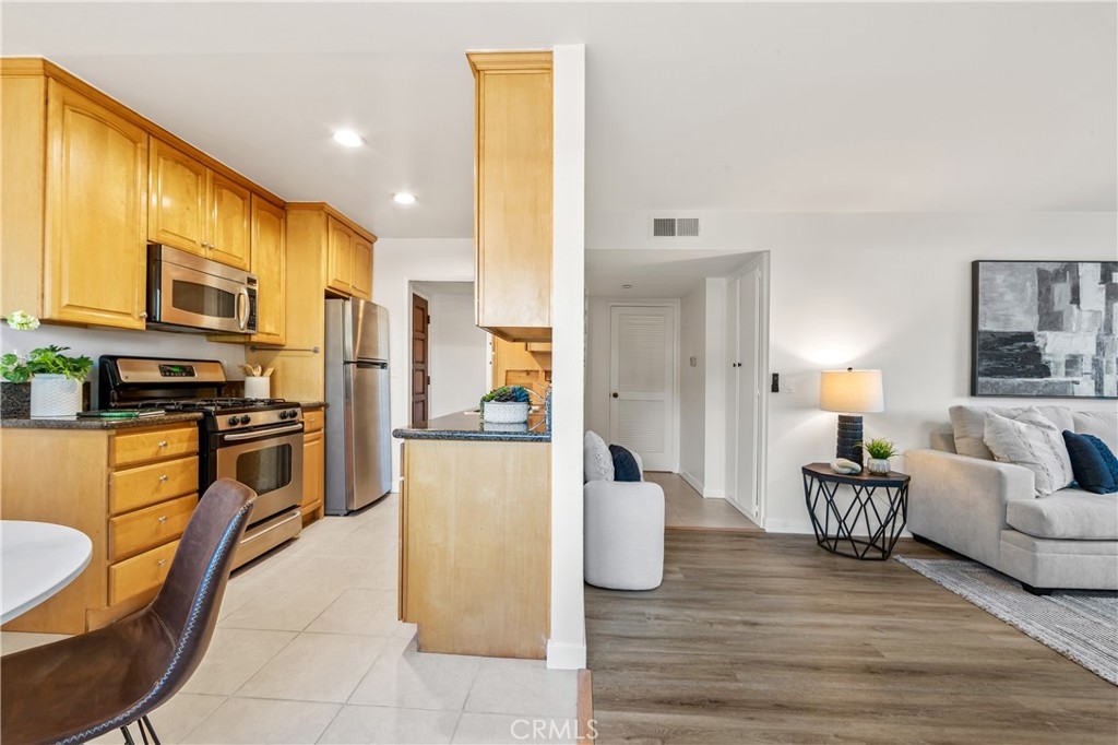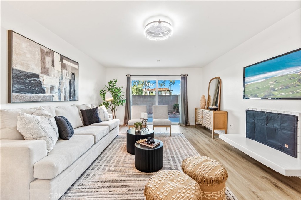 Gorgeous two-bedroom ground floor unit featuring a spacious living room highlighted by a cozy fireplace and direct access to an expansive rear patio ideal for indoor-outdoor living. The beautifully updated kitchen offers warm maple cabinetry , stylish countertops, stainless steel appliances. Large primary bedroom has double closet space , dressing area and a view of your private rear patio. Second bedroom is bright & open with lots of closet space Both bathrooms have been tastefully updated . This beautiful condo feels like a home with other features including smooth ceilings, designer lighting, all dual pane windows and sliding door, freshly painted & updated flooring . Villa Warner is a gated community which offers a large pool, spa , gym, billiards room, clubhouse outdoor BBQ's pet friendly. Conveniently close to the beach, shopping, dining and easy access to all fwys