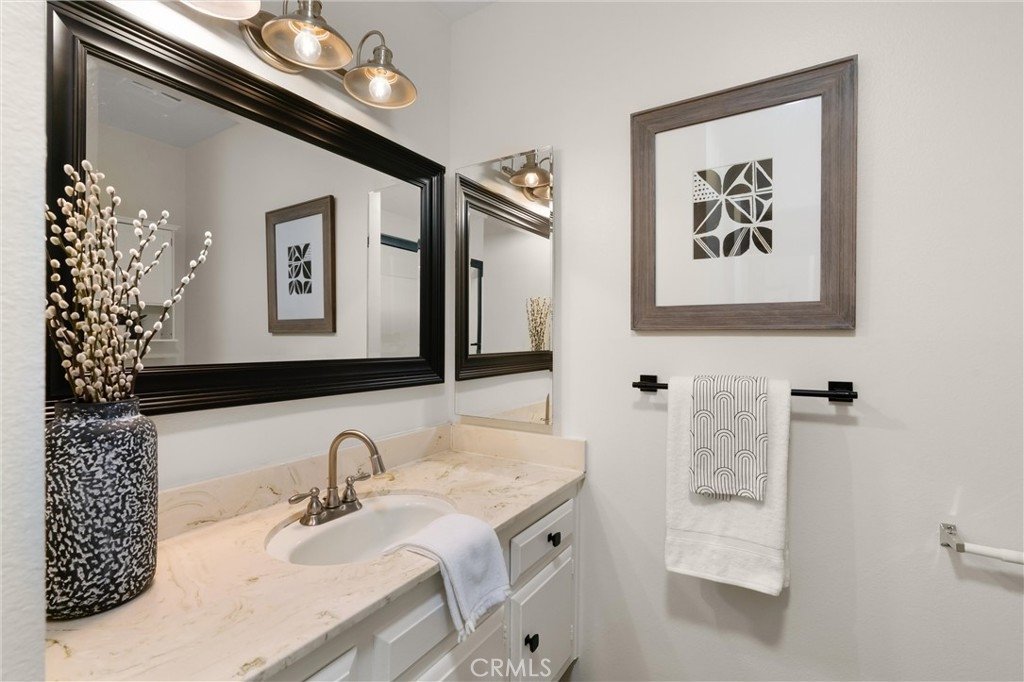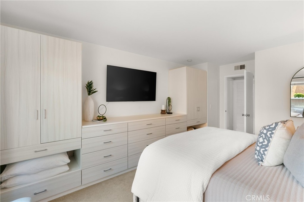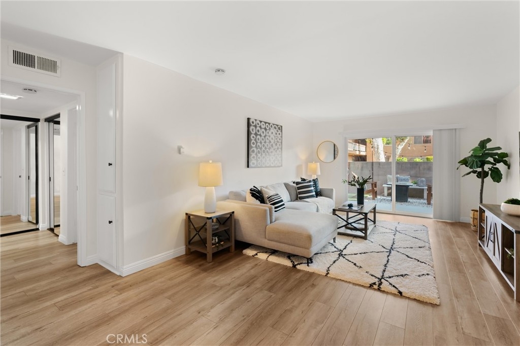 This highly sought after, turnkey condo is everything you’ve been looking for! Upon entering, you'll be greeted by an open floor plan, fresh paint, and beautifully updated vinyl flooring. The unit has been impeccably maintained with updated modern finishings, complemented by double-paned vinyl windows and smooth ceilings throughout. The bedroom showcases newly added custom cabinetry by California Closets, providing sophisticated and ample storage. This unit features a freshly renovated back patio, perfect for entertaining! It also backs up directly to the greenbelt making it highly convenient if you have a dog or pets. Villa Warner is a gated community offering an array of amenities including a large pool and spa, outdoor BBQs, a gym, billiard room, and clubhouse. Additionally, the complex is pet-friendly, and each unit comes with private storage. Also, this unique unit boasts not one, but TWO PARKING spaces, a rare find in the community! Don't miss out on the opportunity to own this exceptional property, where beach living meets convenience. Schedule a showing today and experience the epitome of coastal living in Huntington Beach.