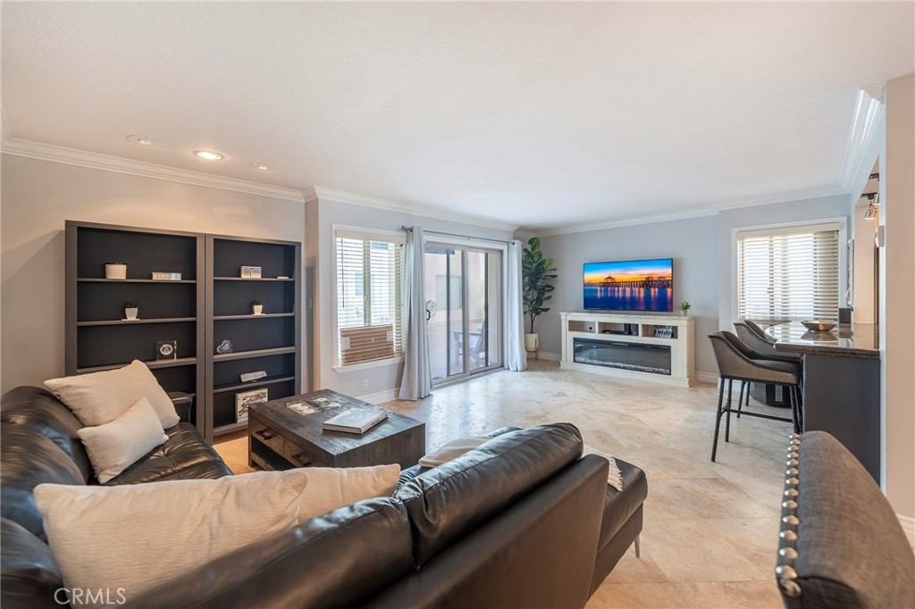 LIVE ON THE SAND IN HUNTINGTON BEACH! Walk to Pier and Main Street. SINGLE STORY CONDO Oceanfront location. MOVE IN READY! Come enjoy Resort Living All Year Round! This is a RARE opportunity to own a home, in this Unique Secured Complex that is located right on the beach. Walk out your door and have easy Direct Gated Access to the Iconic Surf City Coastline, along with Private Fire Pit, Bike Path, Pier, and Exciting Main Street Action. As you enter inside this Newly Remodeled Unit, be greeted with an Open Floor Plan, great for family gatherings, and entertaining. Travertine floors flow seamlessly throughout the home, and the Open Kitchen is inviting with white cabinetry, granite countertops, stainless appliances, and an island that offers bar seating, for casual dining. Both Upgraded Bathrooms feature white cabinets, granite counter tops, and stone showers. This unit boasts Heated Ceilings, fresh paint, crown moulding, recessed lighting, and a Stackable Washer/Dryer, for convenience. The bedrooms are good sized and the primary bedroom has a walk in closet, for extra organization. The exterior boasts an Expansive Patio with Whitewater Ocean Views, it is a great place to sit and watch the surfers, sunsets, fireworks, and the famous HB Air Show. This Guard Gated Community includes Subterranean Secured Parking Garage. Two parking spaces are assigned complete with an additional storage locker. Take advantage of Year Round Resort Living with the Sparkling Pool, Spa, Gym, and Clubhouse. Walk to the famous Huntington Beach Main Street and Pacific City for renowned Dining, Shopping, and Entertainment, and close proximity to the other Orange County coastal towns. Come live the Surf City lifestyle and all it has to offer. This METICULOUS UNIT has been very well maintained and CAN BE SOLD w/ FURNISHINGS to be MOVE IN READY!