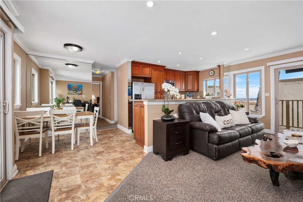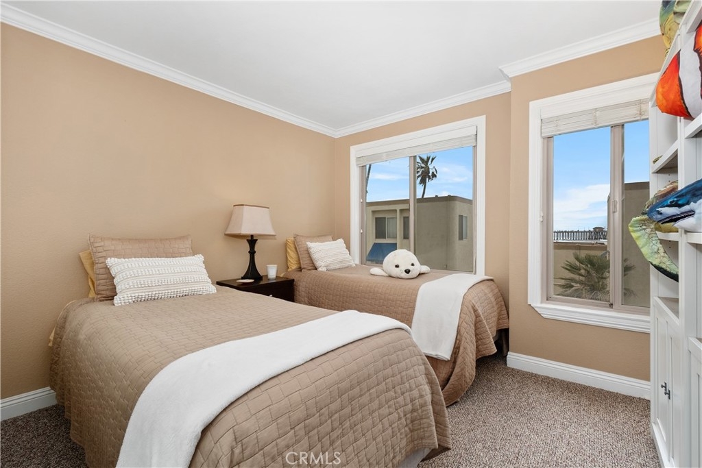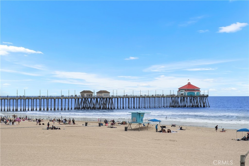 EVERYONE HAS BEEN WAITING FOR THIS! A one of a kind PREMIUM OCEANFRONT SANCTUARY! Welcome to the pinnacle of coastal living, breathtaking Panoramic Ocean Views at the ONLY property on the sand for EIGHT (8)+ miles at Huntington Beach “Surf City “ USA. This exceptional single floor plan residence sleeps six and is a rare find with views from both sides including a private patio with endless vistas of the sparkling coastline. This premium unit has more windows than any other 2 bedroom unit in the complex. Open floor plan to showcase ocean views with custom mirrors. Completely remodeled throughout. Custom Kitchen has views of the pier, granite countertops, quality cabinets with pull-out drawers and ample storage space for everyday living and entertaining. The Expansive Living Area is ideal for memorable gatherings. The corner desk has an added wide window for fantastic views. The Primary Bedroom has spectacular whitewater views, a relaxing recliner, custom wood closets, a peaceful retreat where the sound of the surf will lull you to sleep. Wake up refreshed to enjoy coffee while watching surfers and dolphins on the private patio sheltered from the wind. The full bathroom features dual sinks w/ granite countertops, shower w/ stone walls and stone mosaic trim, soaking tub, and a washlet. The second Bedroom has an added large window with incredible ocean views. Convenient washer/dryer in unit, updated electrical panel, new water heater and plumbing upgrades. All windows and patio doors are newer double pane glass with privacy tinting. Unique to this home is its dual access design: a front entrance door with views of the pier on one side and a sliding glass door opening to the private patio with views of the beach on the other, refreshing cross breezes and maximum privacy. Located in a secure guard-gated community, 2 parking spaces, huge private storage locker for all your toys, and abundant guest parking. Tastefully fully furnished including two smart TVs, all patio furniture, BBQ- turnkey, ready for your immediate enjoyment. Community includes an Ocean-View Clubhouse-with full kitchen, pool table, swimming pool, sauna, gym, fenced private fire pits with BBQs. Enjoy fun activities at the iconic Huntington Beach pier, 4th of July fireworks, Pacific Air Show, the US Open of Surfing and so much more... the ultimate in vacation style living year round. This is more than a home, it's a lifestyle! Come enjoy Huntington Beach Oceanfront Living and all it has to offer!