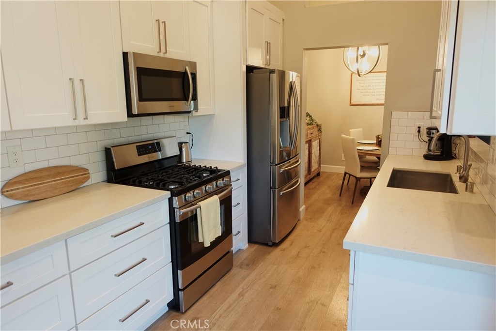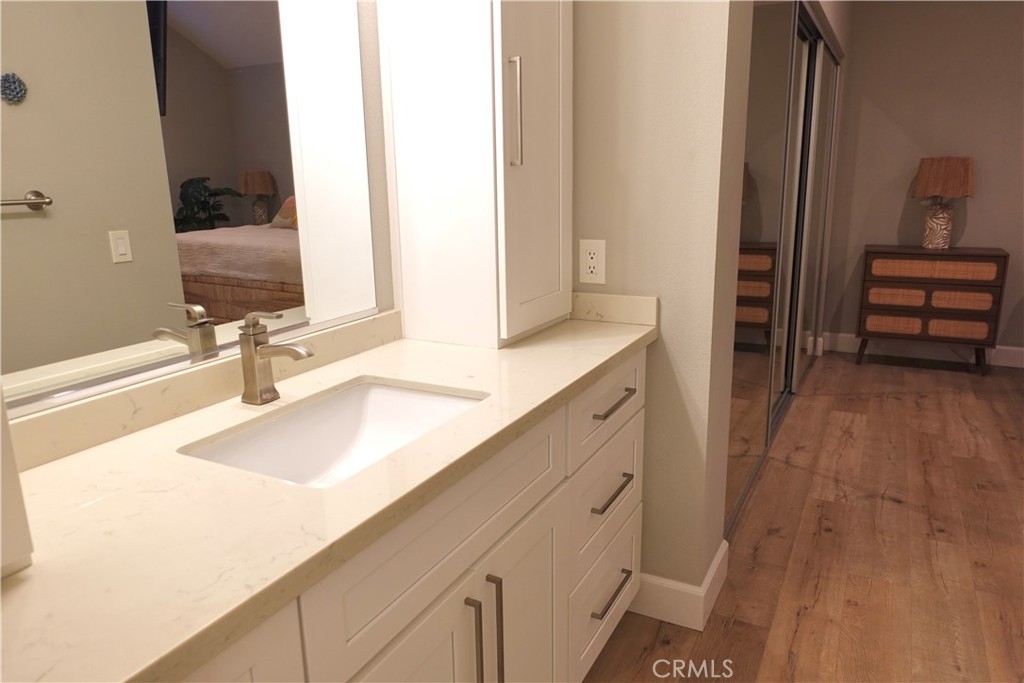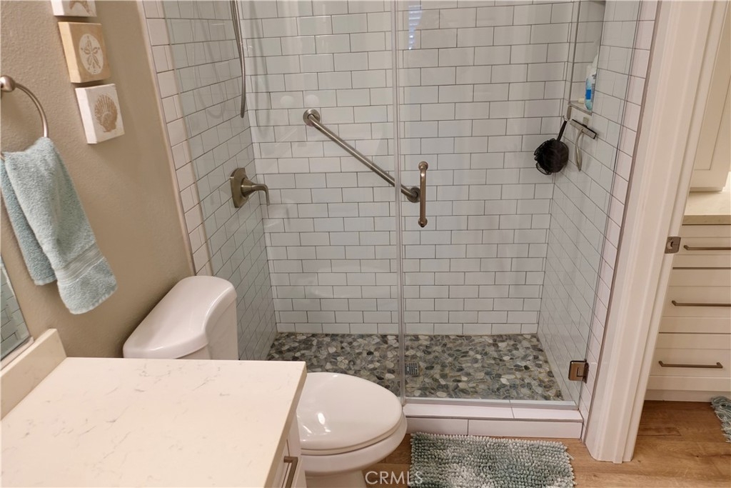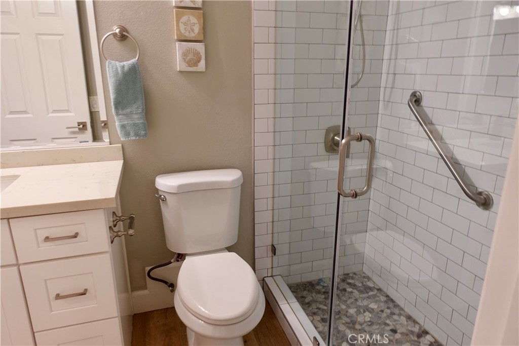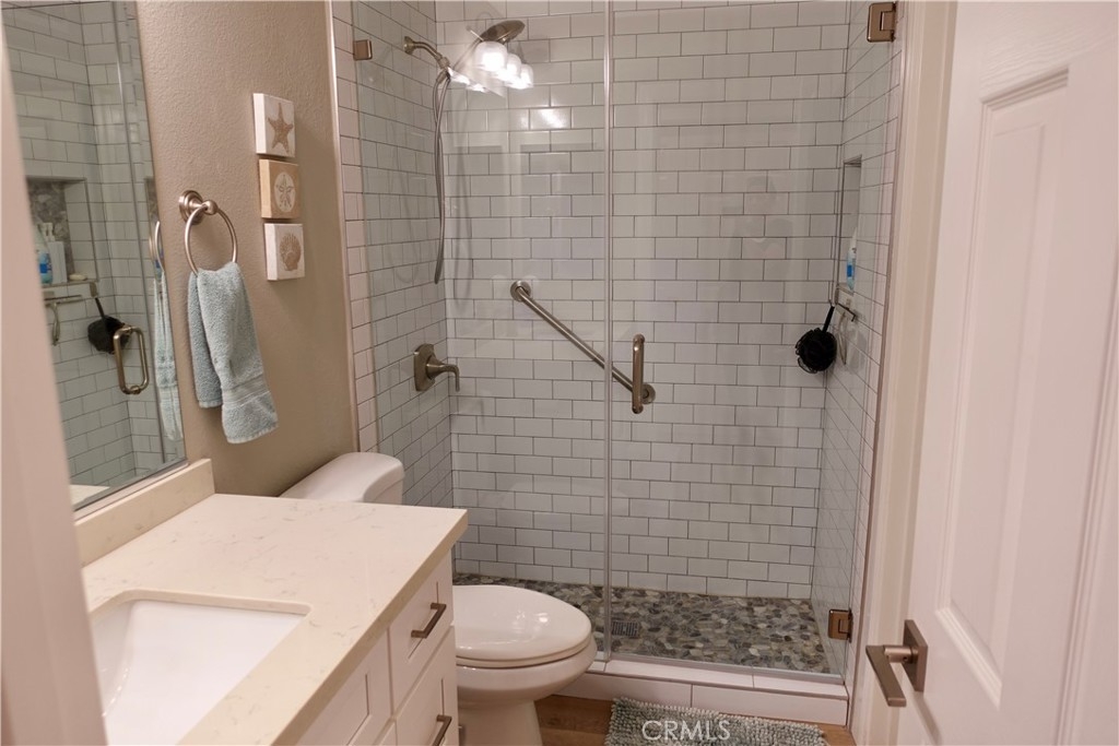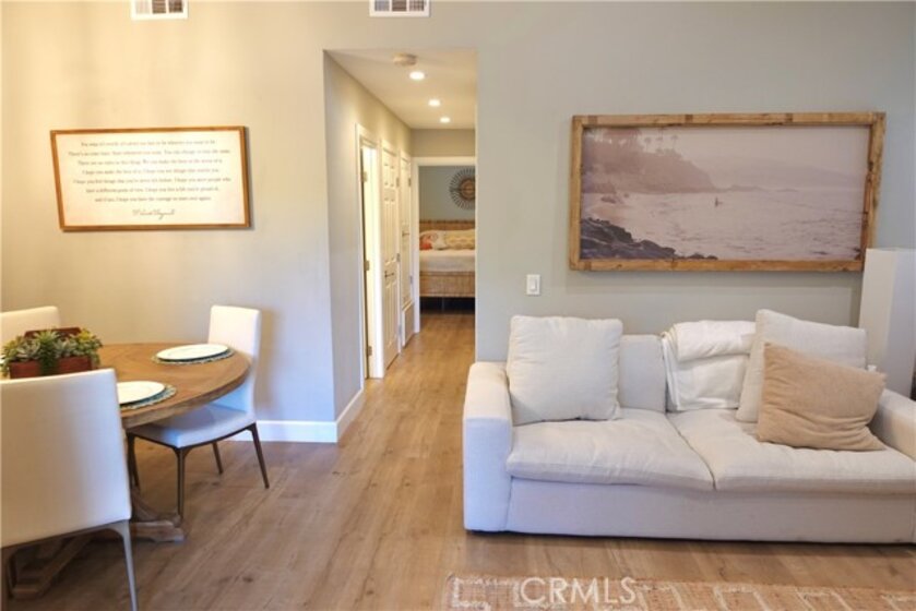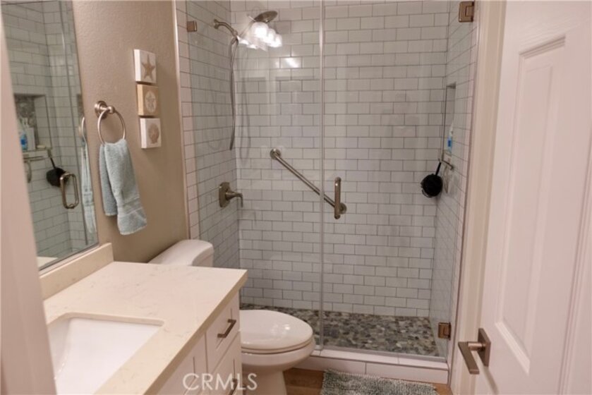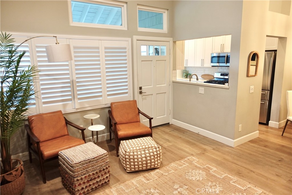 Welcome to this rarely available Avalon model in the highly sought after Pacific Ranch Villas community of Huntington Beach. This charming top level, single story condo offers 2 bedrooms, 1.25 bathrooms, and approximately 873 square feet of bright and open living space. The completely remodeled spacious living room features vaulted ceilings, a cozy gas fireplace, and direct access to a patio, perfect for relaxing or entertaining. The open concept kitchen includes a large stainless steel sink, stainless steel appliances and white quartz countertops. Laminate flooring, plantation shutters and recessed lighting are featured throughout the property. The primary suite offers a large closet and shared Jack-and-Jill bathroom access. The second bedroom is ideal for guests, a home office, or fitness retreat. Additional features include inside stackable laundry, a one car garage located below the unit, and an additional assigned parking spot. Community amenities include guard-gated security, three pools and spas, clubhouse, and lush landscaping . The HOA covers exterior maintenance, roofs, landscaping, water and trash. Located less than 2 miles to the beach, downtown HB and Pacific City. Don’t miss this opportunity to own in one of Huntington Beach’s most desirable gated communities!
