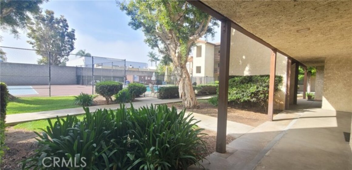 Welcome to Newman Terrace! A beauty two bedrooms,two bathrooms condo located on the first level in the quite gated community.Gorgeous property offers over 1,200 square feet of living space with Vinyl flooring,Baseboards,Crown molding,Smooth ceilings,Recessed lighting. The spaces living room easily accommodates with large sectional. A lovely fireplace will bright up your living room. The open kitchen dinning area and breakfast bar looks over the dinning area. Two bedrooms opens to private patio. Upgraded bathrooms. The master bathroom has an additional closet. A private community provides a gated pool, spa, as well as tennis court and beautiful maintained landscaping. A private gated parking;2 parking spaces and cabinets. Close to shopping centers,Restaurants,Markets,Freeways, Entertaining,Beaches and more...