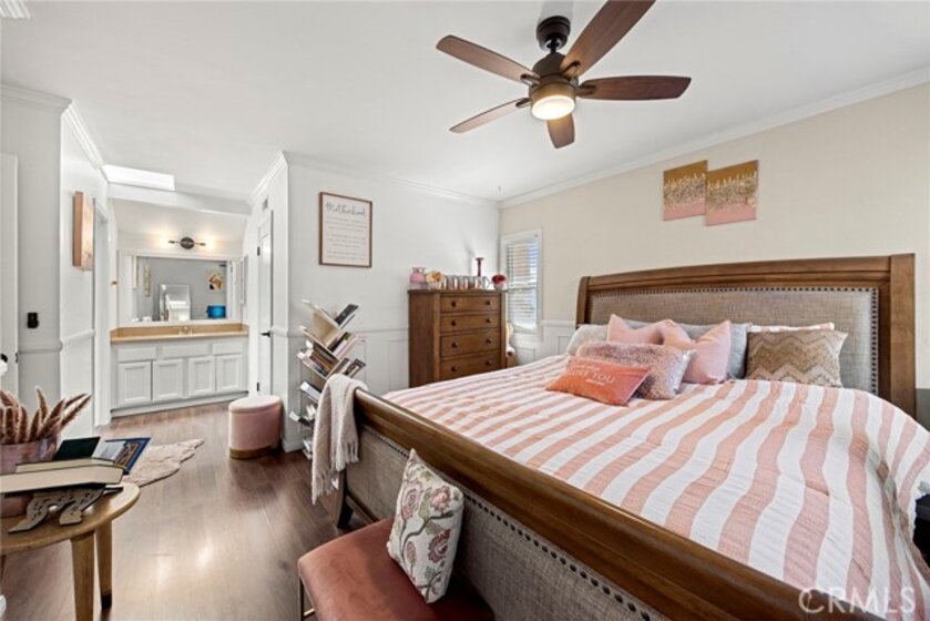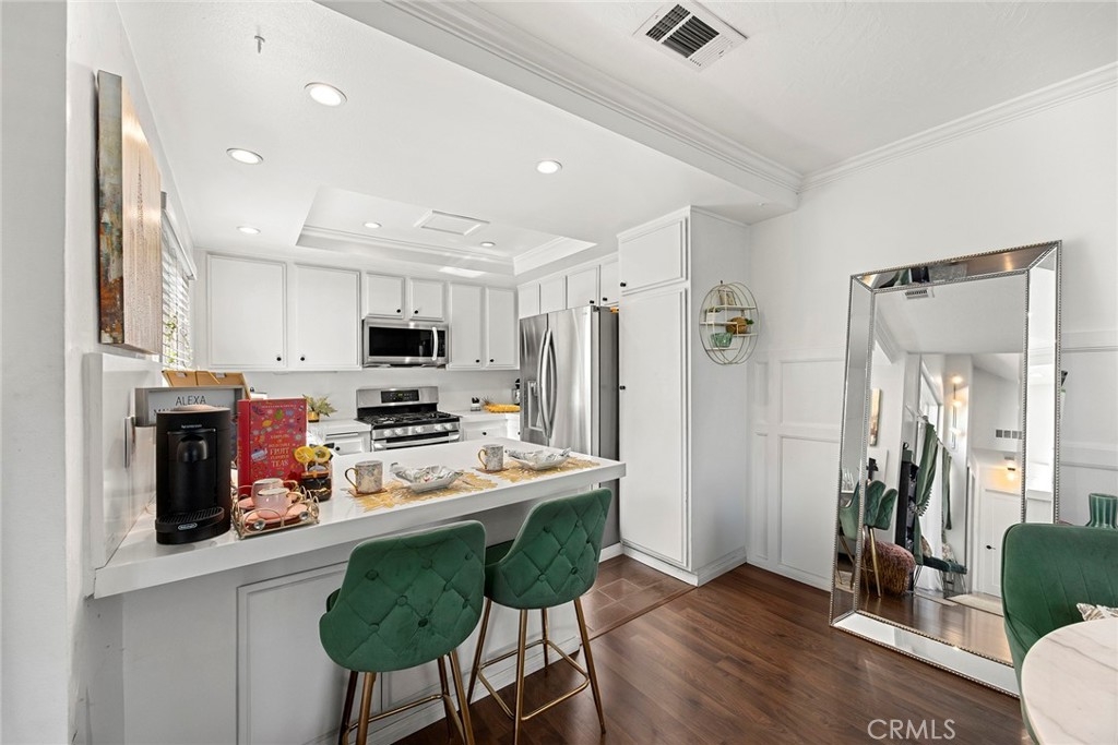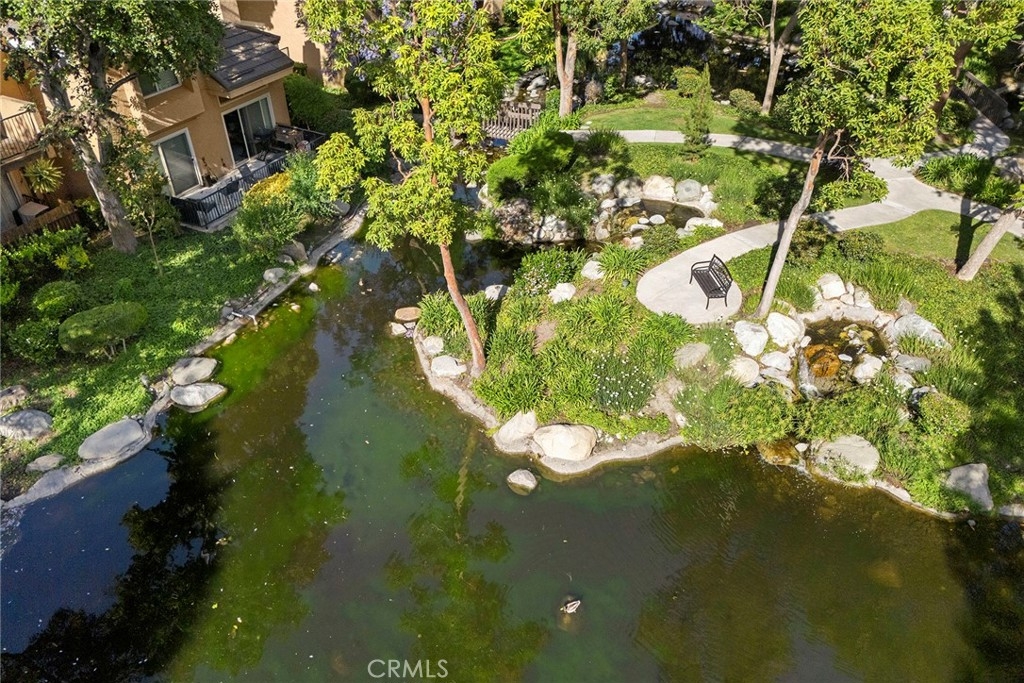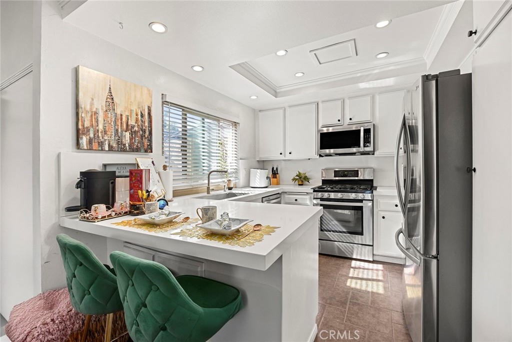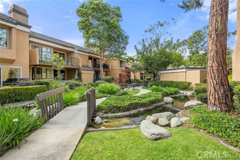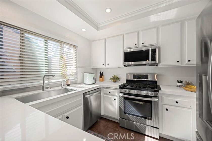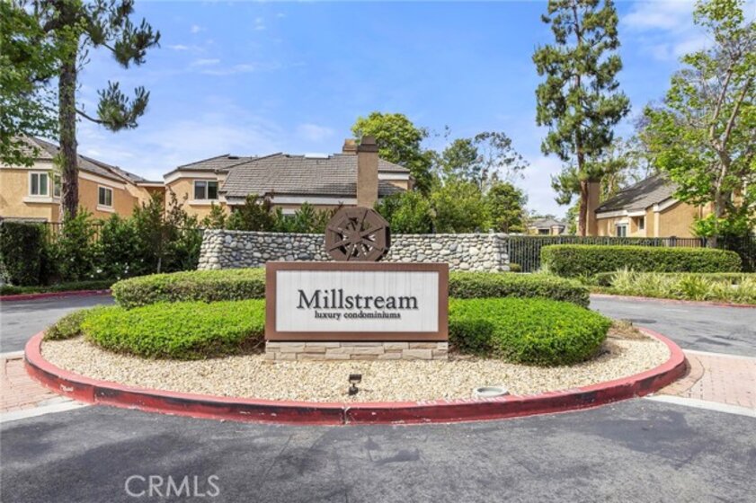 Located in the gated Millstream community, this rare end-unit offers exceptional privacy with only one shared wall and no one above or below. The upgraded kitchen is the centerpiece, featuring quartz countertops, full backsplash, white cabinetry, and LG stainless steel appliances. The light-filled living and dining areas overlook your private patio and are enhanced by soaring ceilings, elegant wainscoting, crown molding, ceiling fans throughout, gorgeous wood laminate flooring, and a NEST thermostat. The 2-bedroom, 1.25-bath layout includes a bright primary suite, flexible second bedroom or office, skylit bath, and in-unit laundry. Storage is abundant with a hallway closet, walk-in closet, built-ins, attic with pull-down ladder, and garage shelving. Enjoy resort-style living with streams, bridges, lush landscaping, pool, spa, and tennis courts, plus ample parking and a prime location within walking distance to shops and restaurants, close to beaches and freeway access. HOA covers water and trash—offering comfort, convenience, and a true sense of community living. A rare opportunity in Millstream with no other units currently on the market—take a look at the 3D tour and schedule your private showing before it’s gone.
