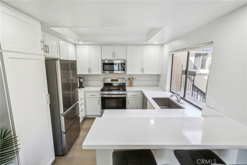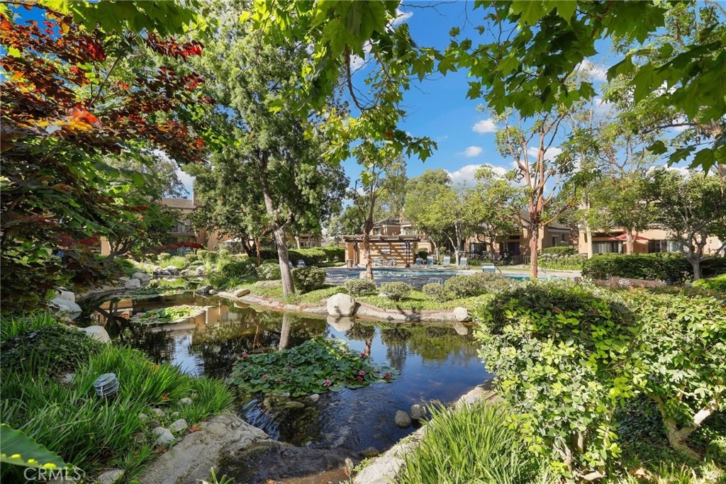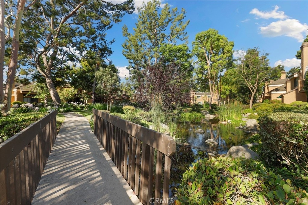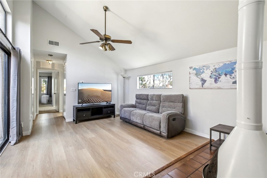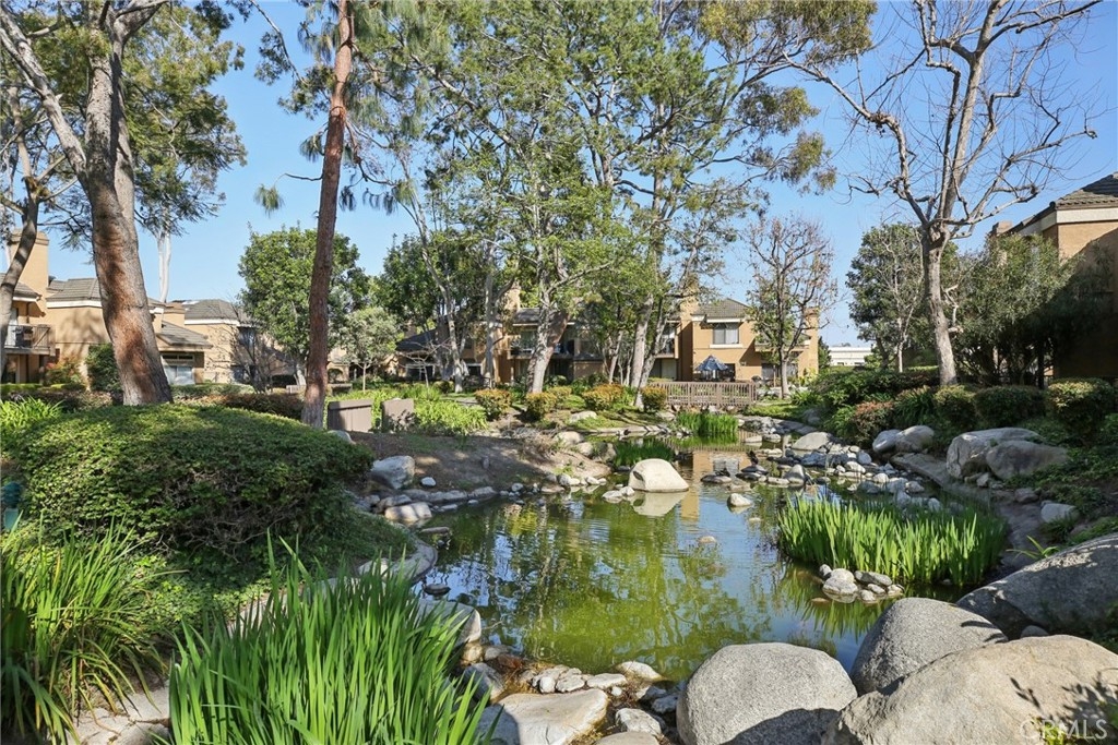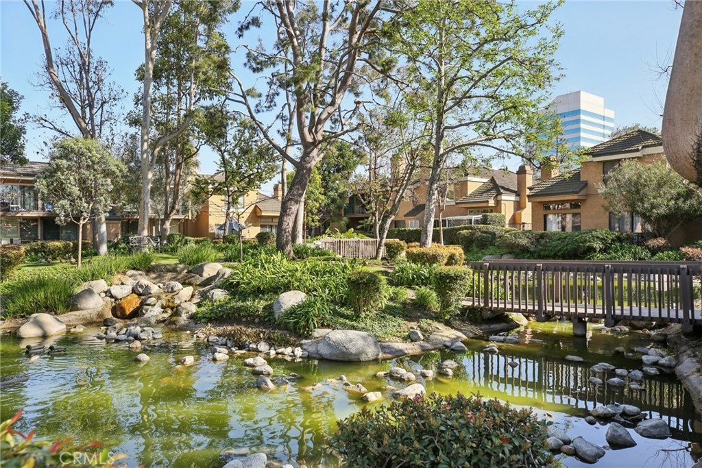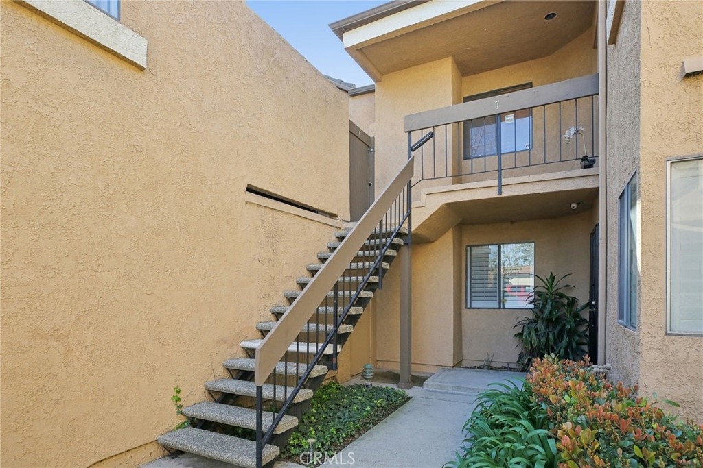 Welcome to the Millstream Community! This beautiful second level condo with 971 sq. ft. of living space boasts an abundance of natural light in every room. The home features two spacious bedrooms and one and a quarter bathrooms (other units have converted the 1/4 bath to a 3/4 bath), a large private gated patio, and a single car detached garage! As you enter the home, you are greeted by a cozy free standing fireplace, vaulted ceilings and luxury vinyl flooring. The kitchen was remodeled in 2023 with all new cabinetry, quartz countertops and stainless steel appliances. The primary bedroom features a large walk in closet and its own private sink area, and the secondary bedroom has mirrored closet doors. The stackable washer and dryer are conveniently located inside the unit and are included in the sale. There was also a new furnace installed in 2022 and a new water heater in May of 2023. Skylights and lots of windows give this unit a light and bright atmosphere. You will love the scenic pathways of this community with meandering streams and gentle waterfalls. This amazing gated community also offers a sparkling pool, soothing spa and a well maintained tennis court. There is plenty of guest parking throughout the community with no permits needed. In addition to being in close proximity to shopping, restaurants, and entertainment, this community is 5 minutes to the freeway and 10 minutes to the beach! You don’t want to miss this one!!!