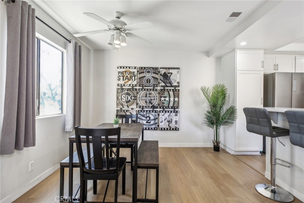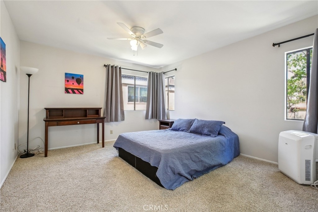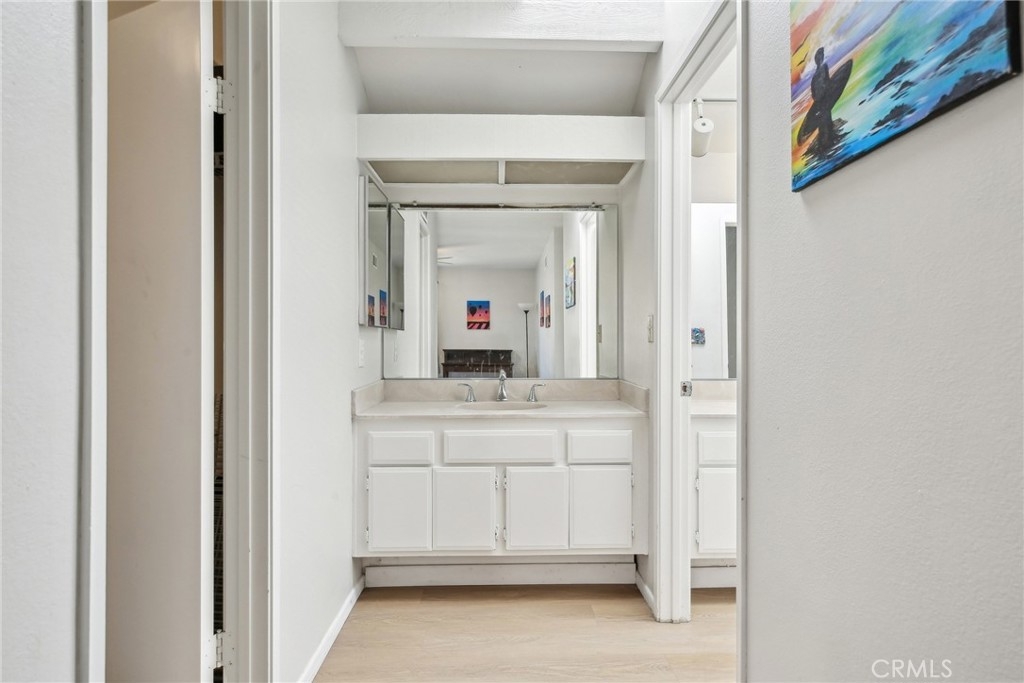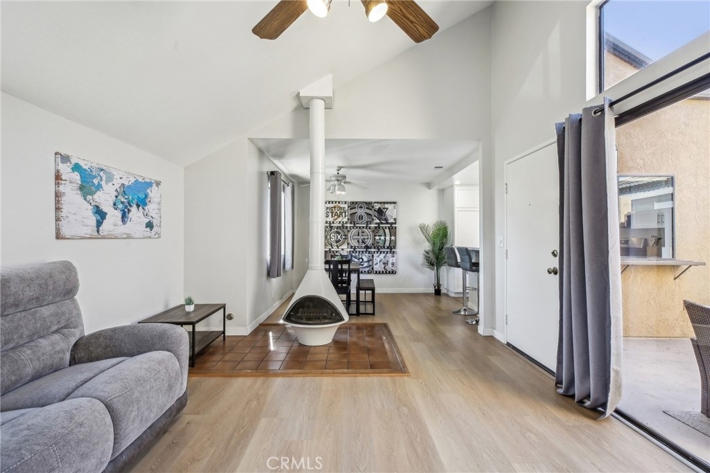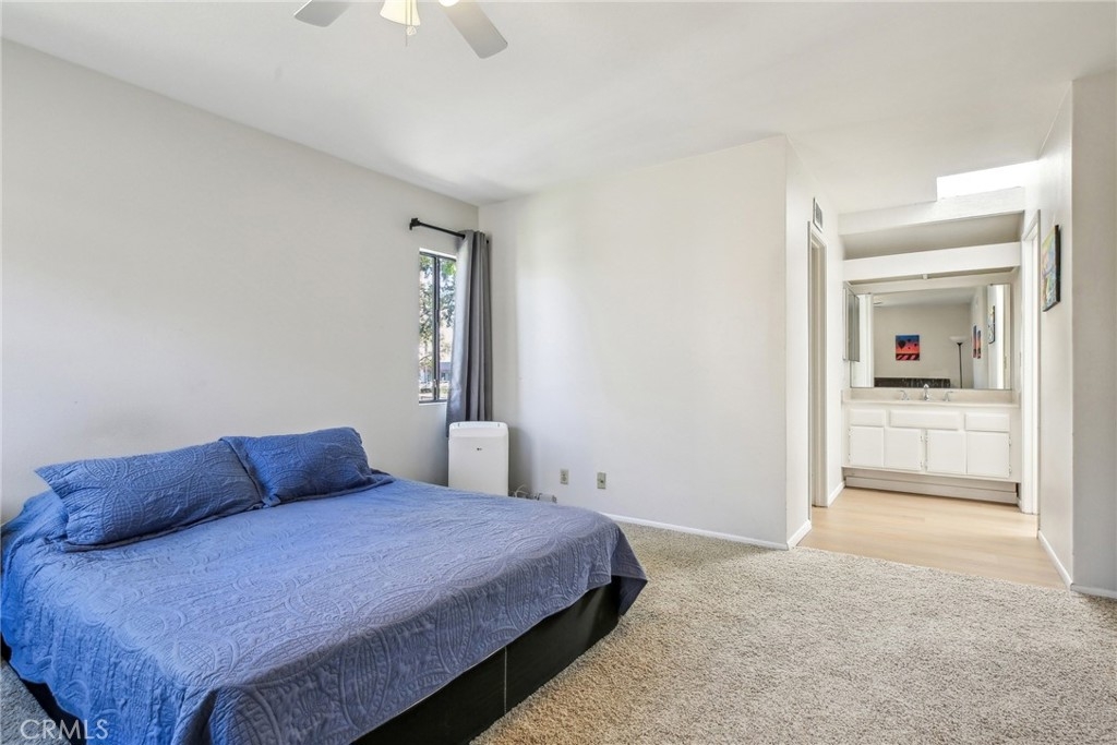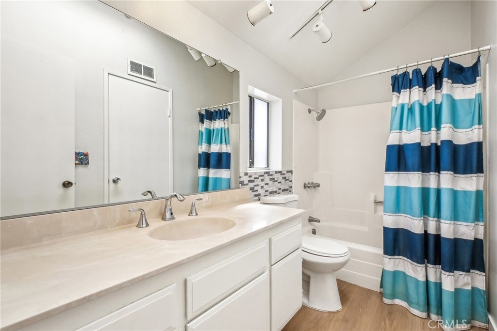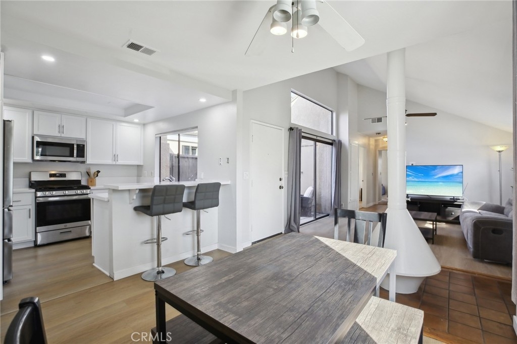 Welcome to the Millstream Community! This beautiful second level condo with 971 sq. ft. of living space boasts an abundance of natural light in every room. The home features two spacious bedrooms and one and a quarter bathrooms (other units have converted the 1/4 bath to a 3/4 bath), a large private gated patio, and a single car detached garage! As you enter the home, you are greeted by a cozy free standing fireplace, vaulted ceilings and luxury vinyl flooring. The kitchen was remodeled in 2023 with all new cabinetry, quartz countertops and stainless steel appliances. The primary bedroom features a large walk in closet and its own private sink area, and the secondary bedroom has mirrored closet doors. The stackable washer and dryer are conveniently located inside the unit and are included in the sale. There was also a new furnace installed in 2022 and a new water heater in May of 2023. Skylights and lots of windows give this unit a light and bright atmosphere. You will love the scenic pathways of this community with meandering streams and gentle waterfalls. This amazing gated community also offers a sparkling pool, soothing spa and a well maintained tennis court. There is plenty of guest parking throughout the community with no permits needed. In addition to being in close proximity to shopping, restaurants, and entertainment, this community is 5 minutes to the freeway and 10 minutes to the beach! You don’t want to miss this one!!!