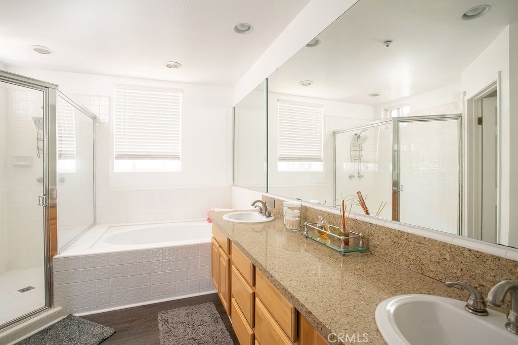 Welcome home to this spacious light & bright unit located in a quiet complex in the heart of Huntington Beach. The home was upgraded with new wide plank wood like flooring throughout, newer quartz kitchen countertops and stainless steel appliances. Additional features include a large master bedroom and master bathroom, open floor plan and indoor laundry . Enjoy cool breezes on the large outdoor patio or relax by the community pool & spa. The attached direct access 2-car garage also offers plenty of additional storage space. Do not miss out! Your new home awaits!