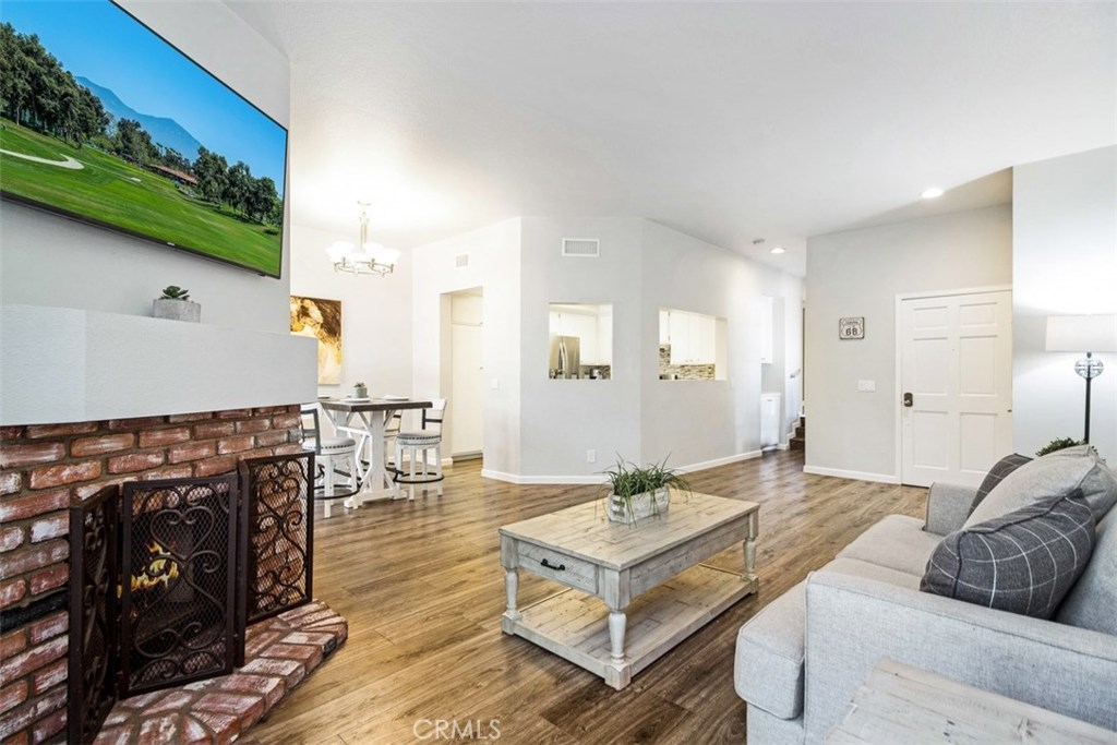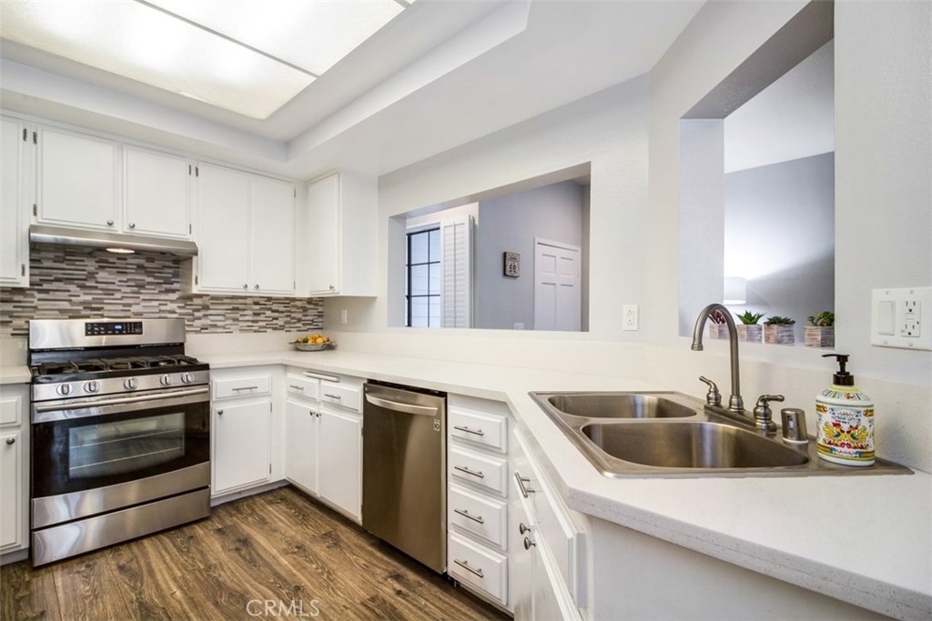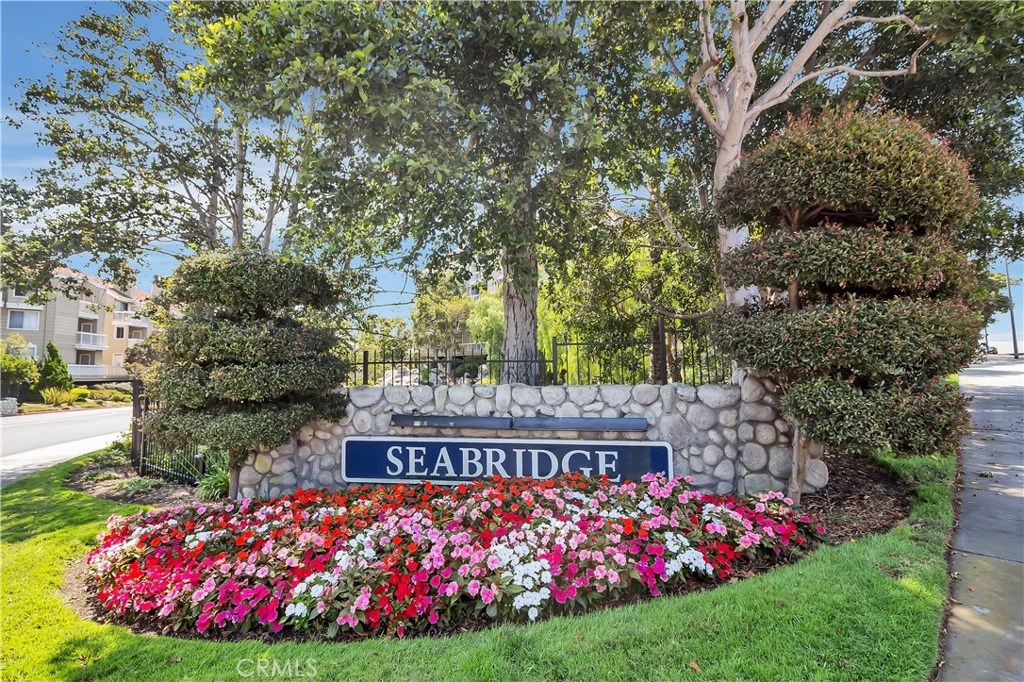 Resort style living in the highly desirable Seabridge community! This spacious 2 bedroom 2 bathroom end unit has a very inviting open floor plan with lots of natural light. Upon entering the living room you will notice the 12ft ceilings and cozy fireplace, that opens up to the separate dining area and kitchen giving you that wonderful great room feel. This tasteful home features an updated kitchen with white cabinets, quartz countertops, a breakfast bar and stainless steel appliances. Off the kitchen sliding glass doors will lead you to the patio with picturesque rushing streams and gorgeous view of the pool, perfect for enjoying the coastal breeze and summer nights. The 1 car garage with storage is located conveniently just below the unit. Washer and dryer are located inside the unit. This 10+ Location is walking distance to the beach, downtown, Pacific City, shopping, restaurants and all that Huntington Beach, Surf City has to offer.