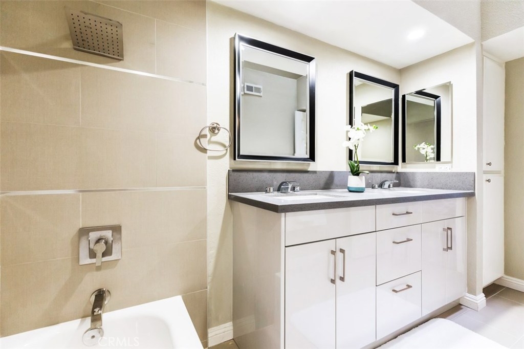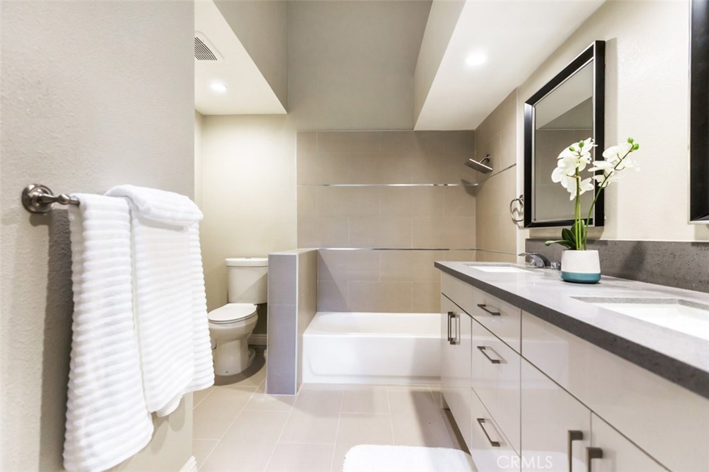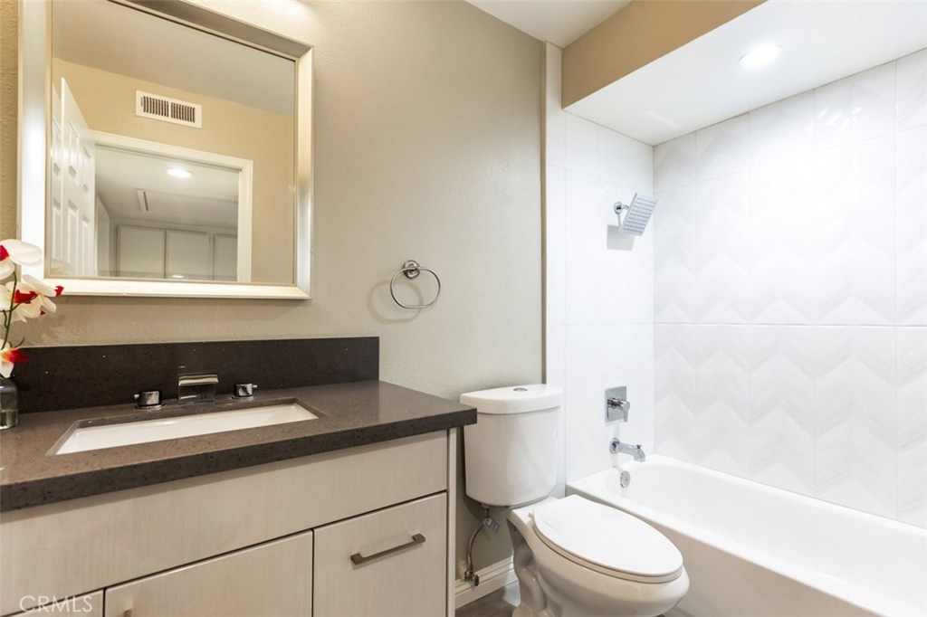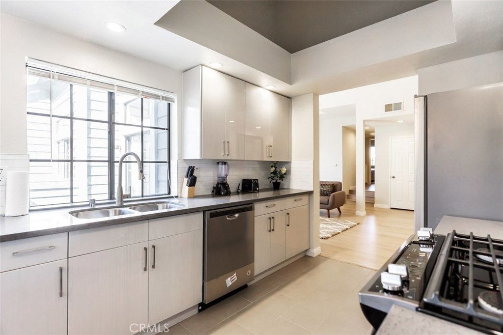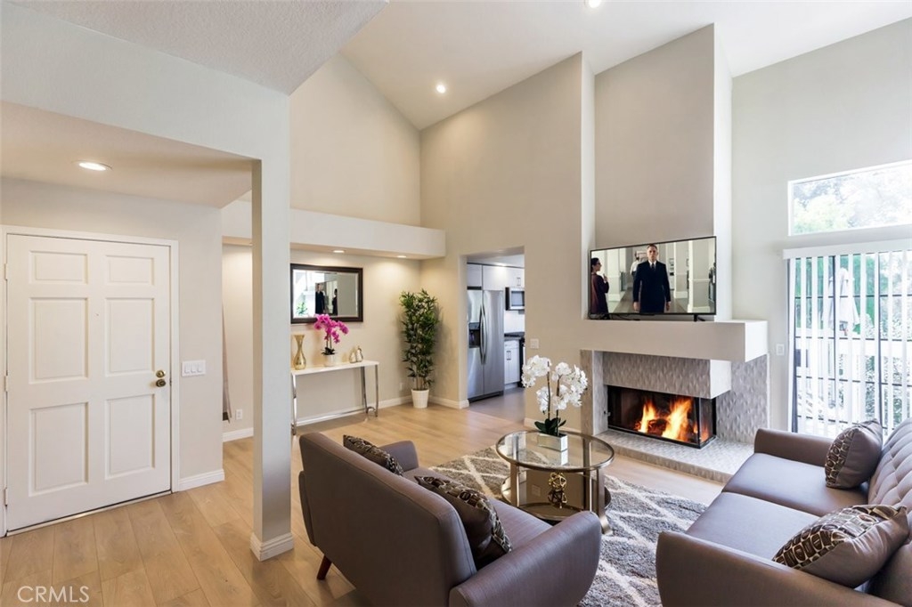 Turnkey & Regular Sale! This newly remodeled 2bd/2bth condo with loft is located in the prestigious Seabridge Village community. The unit has just completed an extensive interior remodel that fills the interior with a contemporary vibe. The galley style kitchen features custom cabinets with subway tile backsplash, stainless steel appliances, and breakfast nook/dining area. Both bedrooms are a few steps up from the main floor. The master suite is spacious with its vaulted ceilings and the en-suite bathroom has been tastefully upgraded with modern touches as well including a custom dual vanity. A loft with spiral staircase can be used as a 3rd bedroom and overlooks the living room. Other features include brand new flooring throughout and light fixtures throughout, newly tiled fireplace, beautiful views of the park-like grounds via balcony, and a single car garage. Community amenities include tennis courts, pools, spas, and various lakers, creeks, and ponds throughout the community. Only minutes to the beach, Main Street, and the 405 Freeway.