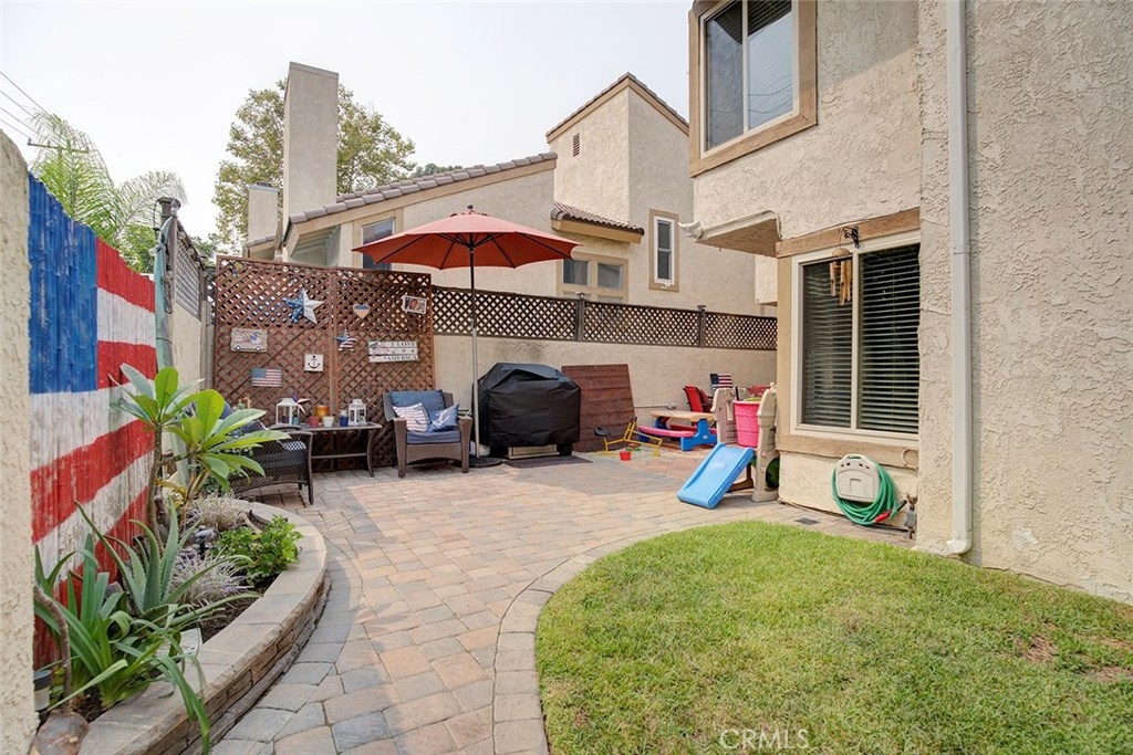 Welcome Home! Step inside this spacious end unit with only 1 attached neighbor to find this beautiful 3 bedroom 2.5 Bath, 2 story home with over 1800 square feet. Open and spacious floor plan has living room with wood burning fireplace, scraped ceilings, ceiling fans. The kitchen has stainless steel appliances; gas stove, dishwasher, microwave. Open to BIG dining room. Corner backyard with block wall, pavers, real grass, even a beach sand pit. Upstairs has 3 Bedrooms and 2 full baths. Master suite with vaulted ceilings, walk in closet, fireplace 2 ceiling fans, in master full bath (shower over tub and privacy glass doors), newer vanity with granite counter. 2nd and 3rd bedrooms also have scraped ceilings, side by side closets. 6 panel doors and dual pane vinyl windows though out. Direct access to the attached 2 car garage with washer / dryer hook ups, garage door opener. Property is part of a Home Owner Association with CC&Rs, community pool, clubhouse. Floor plan is under the map / when you click listing supplements