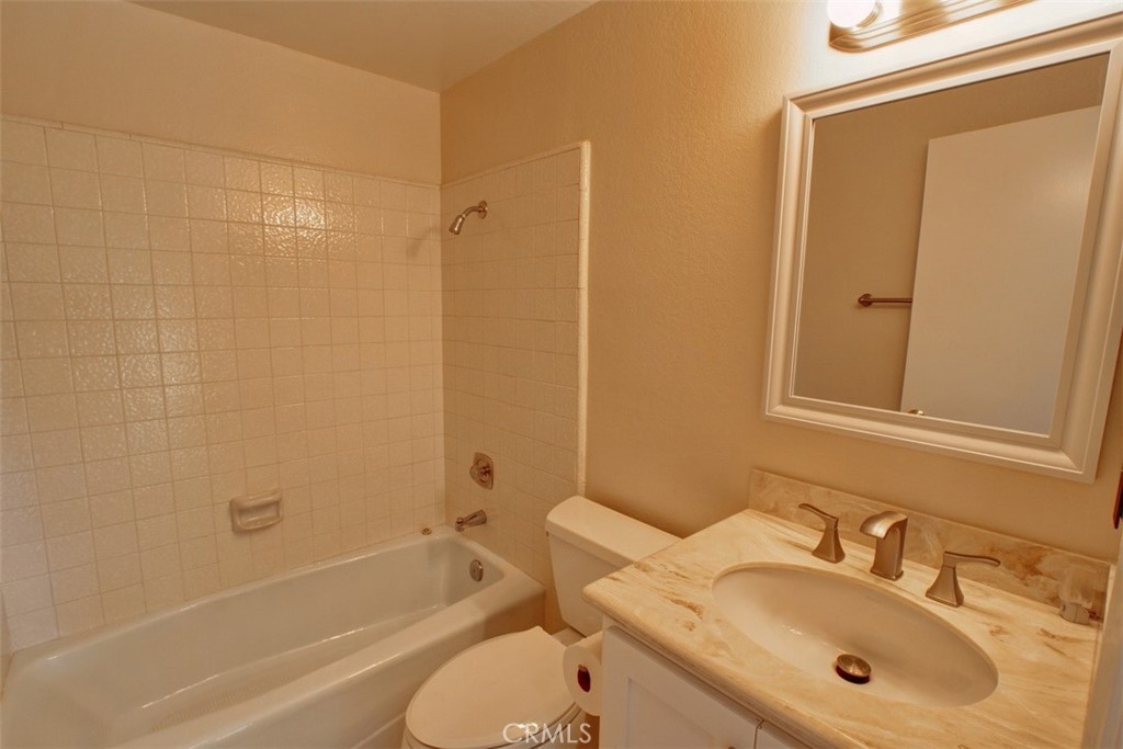 Welcome home to this 2 Bedroom 1.75 Bath, 1212sf single-level home located in the highly-desirable La Cuesta Tennis Club Community! Enjoy the private front patio for relaxing in the afternoon sun and the private back patio to enjoy the morning sun! A large grass area in the common area behind & in front of the property, gives the feeling of a larger lot for the property! The home has recently been refreshed with new interior paint and scrapped ceilings. The master bedroom offers high ceilings, dual pane windows with plantation shutters and plenty of closet space. The second bedroom has a dual pane slider that opens to the front patio. Additional amenities include a larger driveway than most properties in the community and will accommodate parking two cars in addition to the 2-car garage with washer & dryer hookups. The community features exclusive HOA tennis courts, clubhouse, BBQ areas and plenty of green areas to walk the dog. You will enjoy living in close proximity to the beach, Main Street, Pacific City and Bella Terra! Make this your new home in Huntington Beach!
