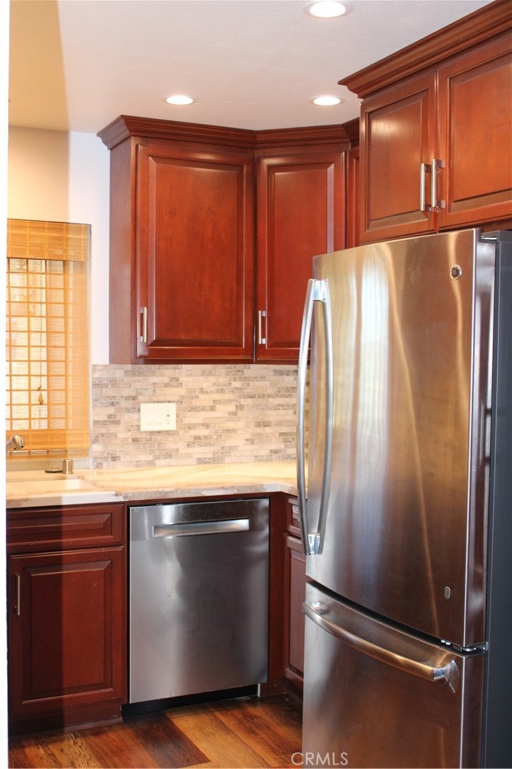 Wonderfully updated Breakers model located steps from the Beacon pool. Freshly painted and cleaned it is truly move-in ready. Owner spared no expense with upgrades and remodeling that includes new vinyl windows, new solid wood interior doors, classically remodeled kitchen with fine wood cabinetry, including pull out shelving, quartz counter tops, Silgranit sink, recessed lights, undercounter lighting, smooth ceilings. Stunning luxury vinyl plank floors, beautiful deep base moldings and both baths fully and tastefully remodeled. New A/C unit in 2024 and new heater in 2023. Includes LG stackable washer and dryer, refrigerator, stove, Nest thermostat, Ring doorbell and Ring Camera & storage shed. Just bring your clothes to hang in the fitted/designed closets with mirrored wardrobe doors. The home was re-piped in copper and the exterior fence was raised for privacy. New front door, plantation shutters - everything you could want and a peaceful spot in the community. All the heavy lifting has been done here as to property improvements and maintenance, so just move in and enjoy the amazing lifestyle at Huntington Landmark. HOA fees include all amenities and even earthquake insurance, just in case. This home offers a detached one car garage with additional guest parking nearby. Huntington Landmark is a guard gated, 55+ community offering resort style living with two heated swimming pools and spa, pickleball, card & sewing room, library, tennis , billiards room, bocce ball , and shuffleboard courts. PLUS On-Site Management Team, Expansive Greenbelts, BBQ Grills, Horseshoe Pits, Ping Pong, Putting Green, Ceramics, Fitness Center, Art Room, Woodshop, Pool Parties, Club Activities, RV Storage& Basketball. Enjoy Huntington Landmark, a private 55+ community close to beach, shopping and transporation and the So Cal lifestyle.