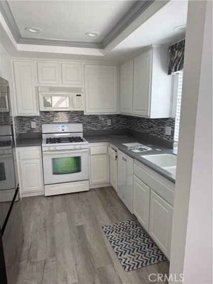 Located in Center of the tract and an End Unit which is most The Desirable "Pacific" Model. This is a Turnkey Home That is Move right in. It has been totally Remodeled. Featuring a Light & Bright Kitchen with New Recessed Lighting, White Cabinets, Upgraded Sink, Faucet, Countertops & Backsplash. Property has All New Laminate flooring and New Carpeting. Refrigerator, Washer are Dryer Included. Replaced dual pane windows and Sliders. Sliding Glass doors have Eletronic Remote Control Shades. Newly Painted. Home has Multiple Skylights and plumbing has been Re Piped. Both Bathrooms have been remodeled. One Car Garage located steps away. LandMark Senior Community is noted for it's central location in Huntington Beach and all Amenities with a Very Active Population. r