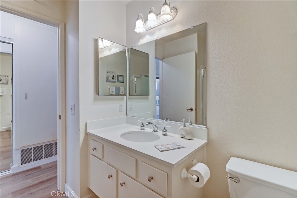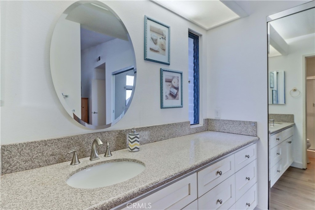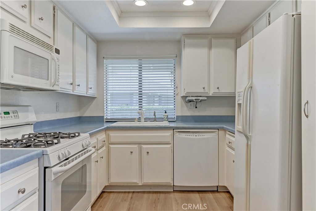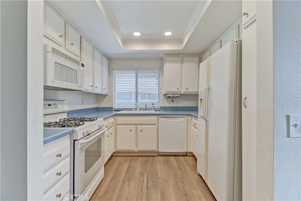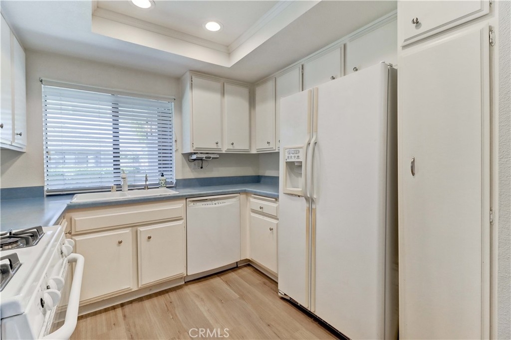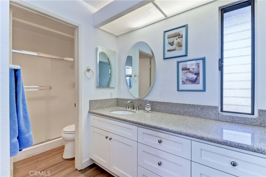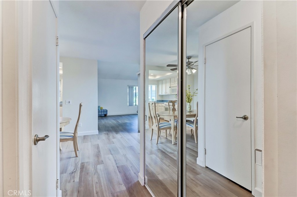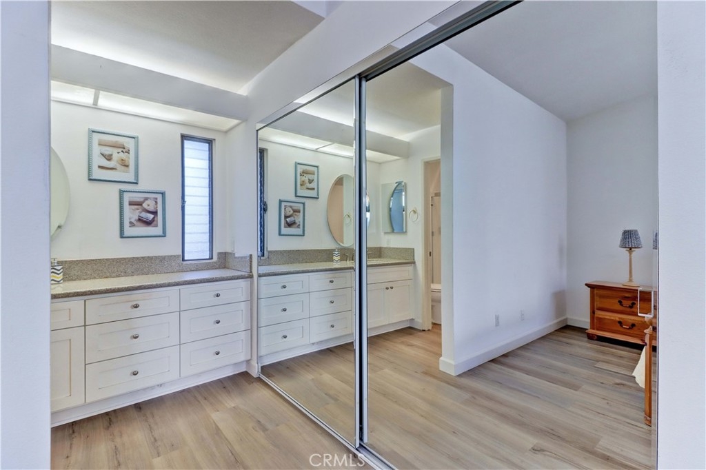 LOCATION! LOCATION! LOCATION! THIS PRIME LOCATION IS IN A RARELY AVAILABLE-BLDG RIGHT NEXT TO THE 2ND/BEACON ST POOL & SPA. Very Popular 2 Br Single Story Breakers model with 2 Patios-a Center Private Atrium Patio which acts as a Giant Skylight & a Great Source of Air Flow & a 2nd Patio off the Guest Br which has an Electric Awning for those really Sunny days. NEW Luxury Vinyl Plank Flooring installed all throughout the condo. Ceilings are scraped. All White Kitchen with White Cabinetry & Appliances, Updated Countertops, Tiled Flooring and Recessed lighting. The Large Living Room & Vaulted Ceilings greet you as soon as you walk in. Enjoy the Gorgeous Greenbelt and Tree Views from the Living Rm Window. Separate Dining Area w/Ceiling Fan. Condo has been Re-piped. Furnace Replaced. Beautifully Updated White Master Bath Cabinetry, Mirror, Faucet, Sink and Countertop. Master Br has a Vaulted Ceiling, a Sliding Glass door to the Private Center Atrium Patio and a 2nd window above the slider providing so much light to the Br. Guest Parking & Garage off the Back of the condo. Roll Up Garage Door. This condo with a South Easterly and North Westerly face has so much Natural Light that Streams in throughout the day. Walk to the Beacon St Private Pool and Spa. In this Location in the Complex, you are still Surrounded by Beautiful Greenery all around. Feels Like Being at a Resort with a Fabulous Recreation Center. 2 Pools, 2 Spas with Main Rec Center Pool being almost Olympic Size! Tennis Courts, Pickleball Courts, Ping Pong, Dances, Trips, Movies, Clubs, Parties, Concerts, Fitness Center, Fitness classes-Water Aerobics, Yoga & Zumba, Woodshop, Chorale, Quilters, Art & Ceramics Clubs & Classes, Billiards, Putting Green, Library & Much More. Well Maintained Grounds with Mature Trees. Hunt Landmark is located close to the Post Office and Grocery Store and Famous Beaches of Huntington Beach. Near the HB Pier, Downtown Area & Pacific City. 24 Hr Guard Gated 55+ Community Near the Ocean (Approx.1.2 Miles).