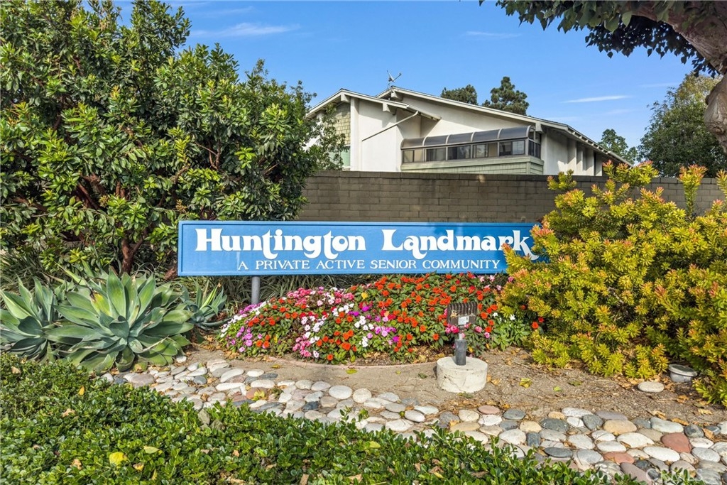 Ground Level home with a large patio surrounded by lush green trees. This is the Huntington Landmark home in a 55+ community, you’ve been waiting for. Features of this lovely home are easy care laminate floors, solid surface counter tops, newer bathroom vanities, large Walk-In closet in the main bedroom and plantation shutters. Come enjoy the ocean breeze and Huntington Landmark lifestyle with resort style amenities including - 2 heated swimming pools & spas, tennis courts, pickle ball, shuffle board, gym/weight room, club house, gated and guarded community, ceramic room, woodshop, library, billiard room, and more.