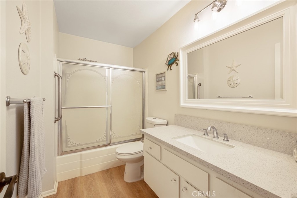 Welcome to 8644 Portola Court! Located in Huntington Beach—a luxurious coastal haven just 1 mile from the beach, nestled within a vibrant 55+ guard-gated community. This elegantly appointed home boasts an open floor plan with new stainless steel appliances, quartz countertops, and a spacious bedroom overlooking serene greenbelt views. The dual pane windows flood the space with natural light, offer energy efficiency, and frame the picturesque surroundings. You'll Experience resort-style living with Landmark's extensive resort style amenities, including two heated pools, spas, tennis and pickleball courts, shuffleboard, and a putting green. The fitness center, professional workshop, sewing room, and library cater to diverse interests, while ping pong and billiards provide lively social spaces. Here you will engage in a rich social life with organized activities, clubs, and classes ranging from dances and trips to woodshop, chorale, and art. Each day is an opportunity for relaxation, recreation, and community engagement. Fully embrace this luxurious beachside living at 8644 Portola #12E, where comfort meets convenience just a stroll away from the sandy shores. Your dream coastal retreat in Huntington Beach, where every detail is curated for a sophisticated and active lifestyle, awaits.