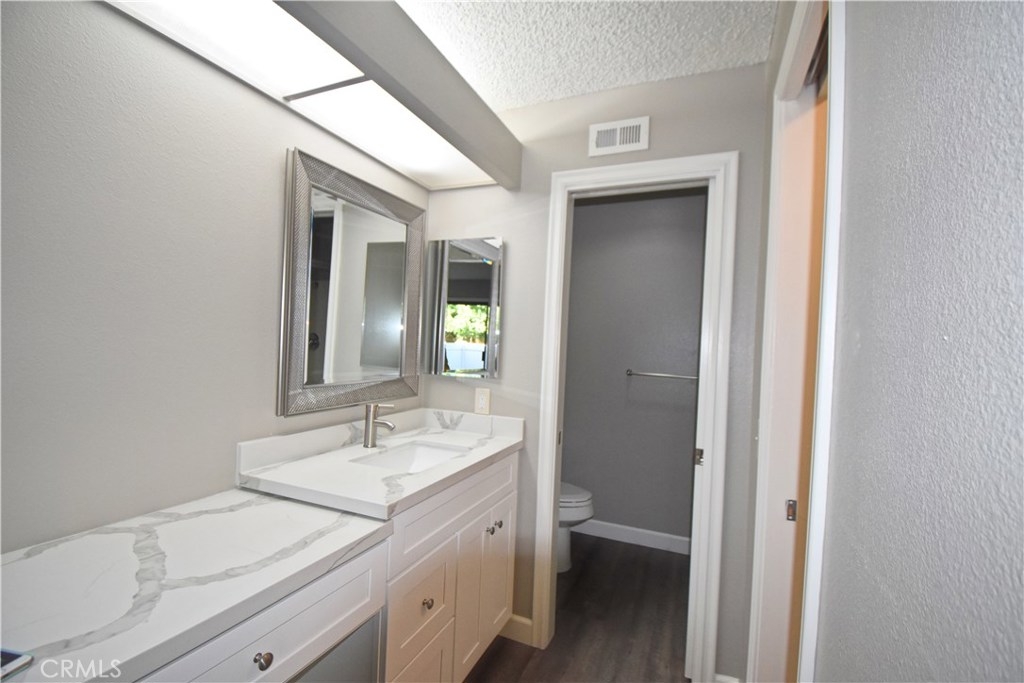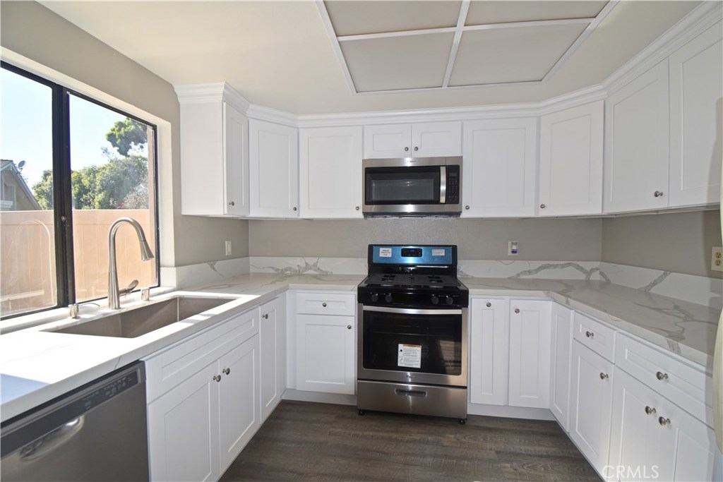 Single Story Unit in the Heart of 55+ Gated Huntington Landmark. it is located within a few miles to the Beach. The unit has only 1 common wall. Remodeled with brand new flooring, new interior paint, kitchen and bathrooms have also been remodeled. New gas stove, microwave hood and dishwasher. The stack able washer and dryer are included. Unit includes 1 detached garage. The community has 2-heated pools, spas, tennis courts, shuffle board, a putting green, weight room, clubhouse, ceramics room, wood shop, library, billiards. There are also scheduled activities such as Bingo, line dancing classes, water workout classes, card playing groups. Landmark Pet's Policy allows for 2 Dogs.