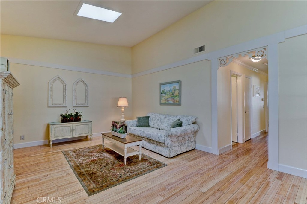 WELCOME TO THIS COTTAGE STYLE FULLY RENOVATED 3 BR SINGLE STORY LAGUNA MODEL. END UNIT. THE SOLARIUM ROOM IS SUCH A PLEASURE TO RELAX IN & IT ADDS SO MUCH EXTRA SQ FEET OF LIVING SPACE. LARGE LIVING ROOM W/ VAULTED CEILINGS & 2 SKYLIGHTS. SCRAPED CEILINGS. FRESHLY PAINTED THROUGHOUT. BAMBOO FLOORING THROUGHOUT W/ BATHS AND KITCHEN HAVING TILE. DINING AREA HAS ADDED WINDOW & SKYLIGHT. YOU’LL ENJOY THE REDESIGN WHICH PROVIDES FOR THE DINING AREA BUILT-IN, RECONFIGURED PLACEMENT OF THE BUILDER WINDOW & DOOR REPLACED W/ A FRENCH WINDOW FROM THE LIVING RM & FRENCH DOORS THAT LEAD YOU INTO THE ADDED SOLARIUM RM. WAINSCOTING & BEADBOARD ABOUND. REMODELED KITCHEN W/ BEAUTIFUL CABINETRY, RECESSED LIGHTING, CABINETRY PULL OUTS & LAZY SUSAN. CROWN MOLDING IN HALLWAY AND BEDROOMS. UPGRADED BASEBOARDS. REMODELED BATHS THAT ARE A COTTAGE LOVER’S DELIGHT.THIS LOVELY CONDO IS EQUIPPED WITH AIR CONDITIONING FOR THOSE WARM DAYS OF SUMMER WHERE THE OCEAN BREEZE ISN’T QUITE ENOUGH. CEILING FANS IN ALL BEDROOMS & SOLARIUM RM. CONDO HAS BEEN REPIPED WITH COPPER PLUMBING. PRIVATE LAUNDRY CLOSET IN SOLARIUM ROOM WITH INCLUDED WASHER & DRYER. WATER HEATER REPLACED IN 2019. 24 HR Guard Gated 55+ Community Near the Ocean. The Feeling of being at a Resort with a Fabulous Recreation Center, Amenities include 2 Swimming Pools (One nearly Olympic Size) & 2 Spas, Tennis, Pickle Ball, Billiards, Fitness Center, Wood Work Shop, Art, Ceramics & Fitness Classes, Trips, Clubs, Dances & Bingo & So Much More!!