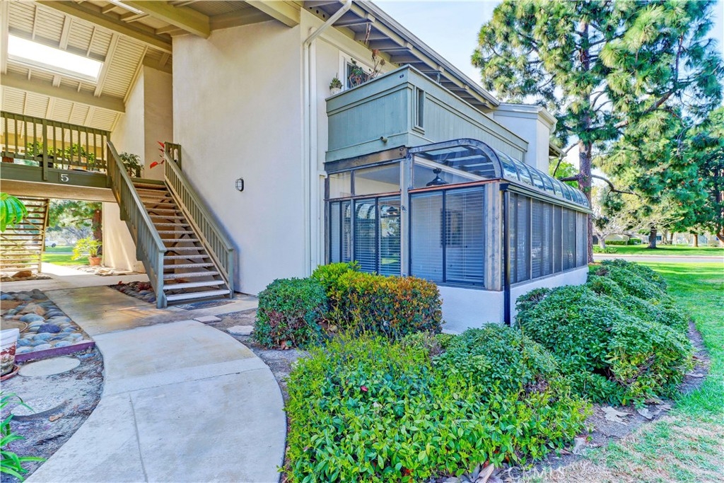 LOCATION! LOCATION! LOCATION! THIS ONE IS A BEAUTY!! ABSOLUTELY STUNNING REMODEL WITH OVER $80K IN UPGRADES!! Very Popular Newport Model-2 Br Ground Floor Condo with a PRIME Location. Located Directly across from the Main Rec Ctr yet it is located off the back of the Bldg Providing Privacy & giving you the Best of Both Worlds. Gorgeous Greenbelt & Tree Views out the Windows of the Solarium Rm, Kitchen and Living Rm. Enjoy the Extra Sq Ft of Living Space with the Added Solarium Rm. The lights on the Solarium Rm convert to Ceiling Fans. Gorgeous Kitchen Remodel with All New White Cabinetry, Tasteful Hardware, Pullouts, Recessed Lighting, Stainless Sink, Modern Gooseneck Faucet, Granite Countertops, Stainless Steel Kitchen Appliances including a GE ceramic top Range with Modern Exhaust Hood and Backsplash. New Luxury Vinyl Plank Flooring & Tall Baseboards Throughout. Scraped Ceilings. Both Baths have been Completely Remodeled including Showers & Exhaust Fans. The Lighting throughout offers Such Elegance. Dual Paned Windows and Sliding Glass Door off the Living Rm. This floorplan features a Huge Walk in Closet in the Primary Br with added shelving to utilize the space. New Blinds Throughout. This is an Opportunity to have a Coveted Ground Floor 2 Br w/o the Single Story Price. Private Laundry closet with included New Washer and Dryer right off the Patio Enclosed w/a Solarium Rm. Condo has been Repiped. Guest Parking, Garage and Mailbox are located Near the Condo. Feels Like Being at a Resort with a Fabulous Recreation Center. 2 Pools, 2 Spas with Main Rec Center Pool being almost Olympic Size! Tennis Courts, Pickelball Courts, Ping Pong, Dances, Trips, Movies, Clubs, Parties, Concerts, Fitness Center, Fitness classes-Water Aerobics, Yoga & Zumba, Woodshop, Chorale, Quilters, Art & Ceramics Clubs & Classes, Billiards, Putting Green, Library & Much More. Well Maintained Grounds with Mature Trees. Hunt Landmark is located close to the Post Office and Grocery Store and Famous Beaches of Huntington Beach. Near the HB Pier, Downtown Area & Pacific City. You are Close to Shopping and Post Office. 24 Hr Guard Gated 55+ Community Near the Ocean (Approx.1.2 Miles)