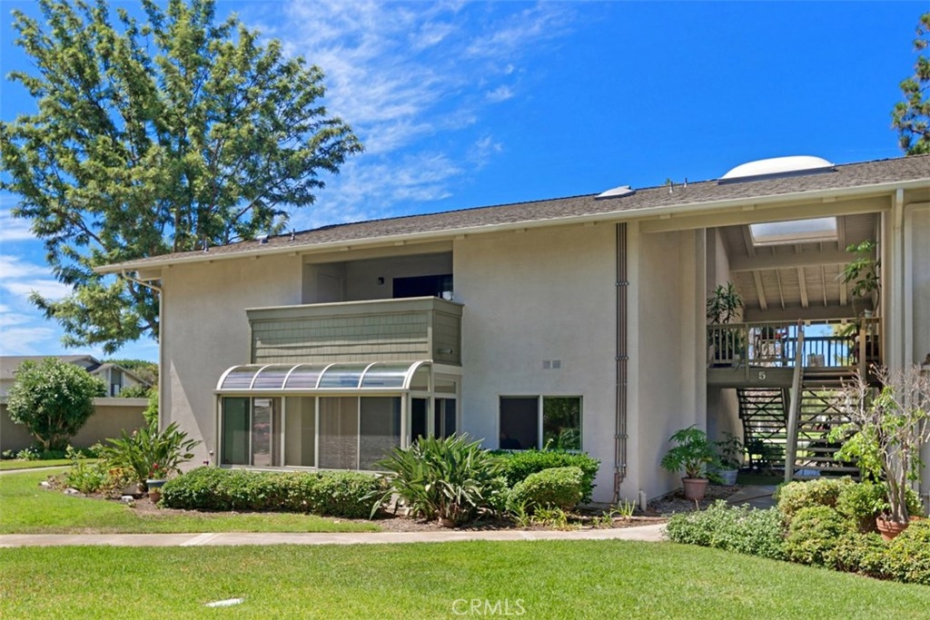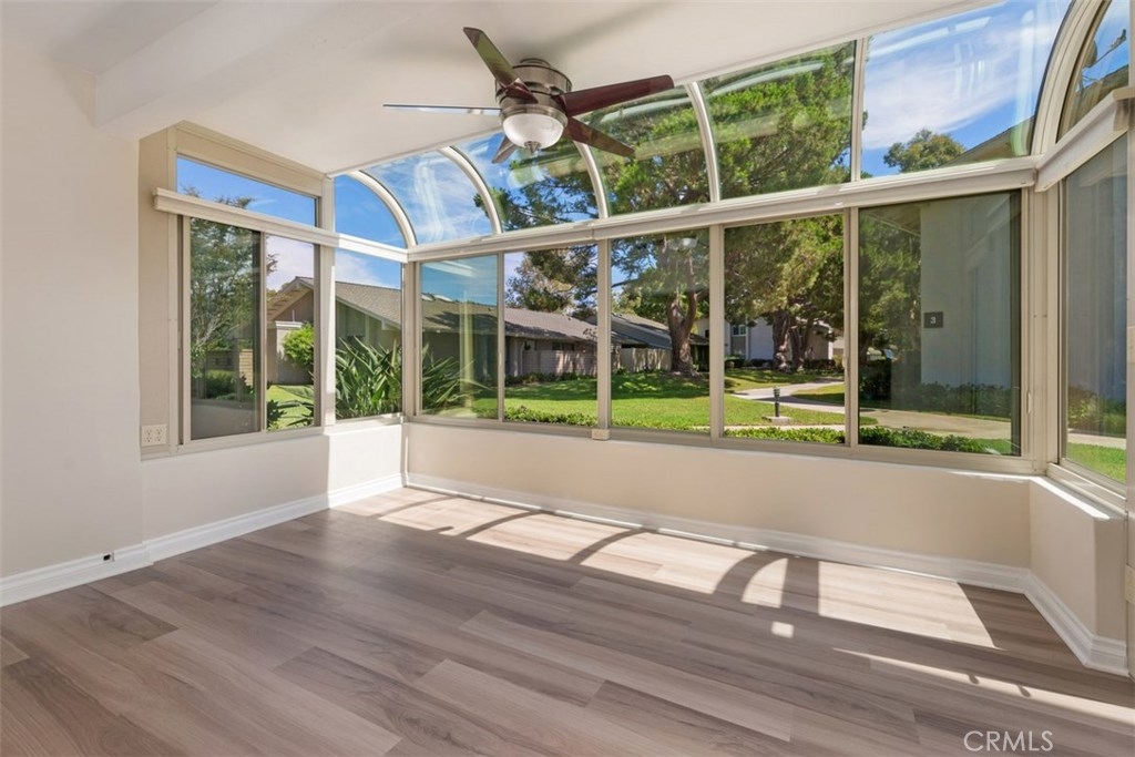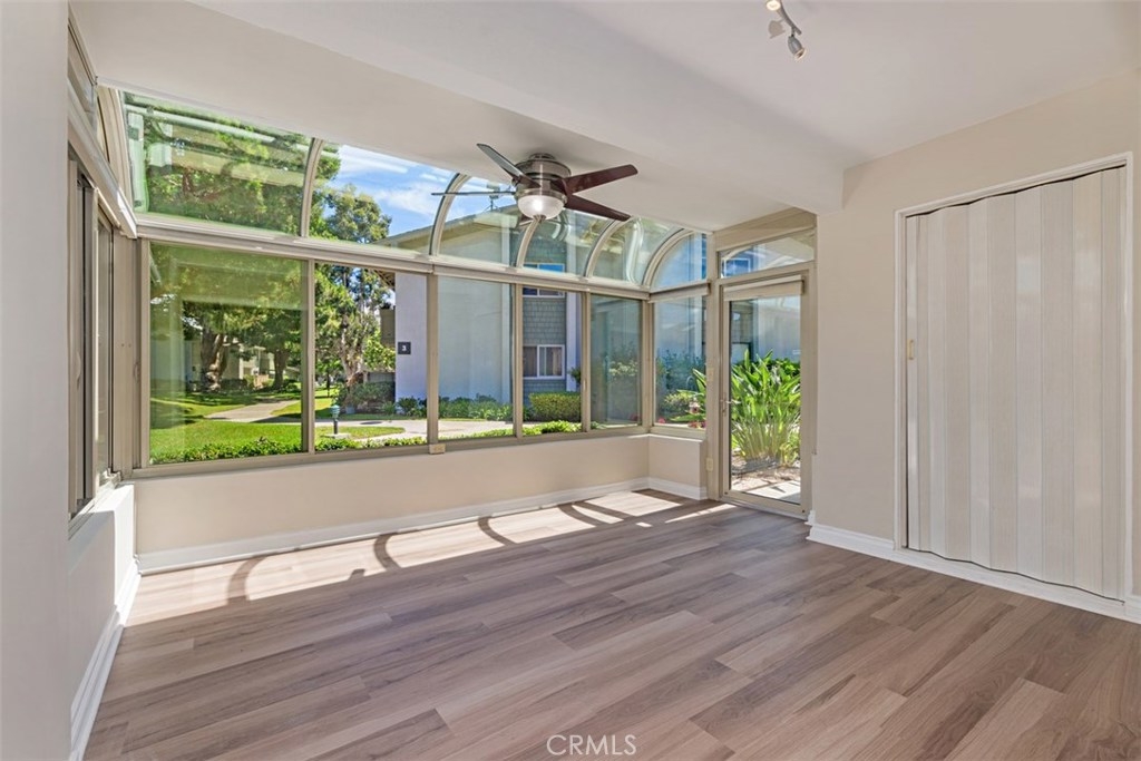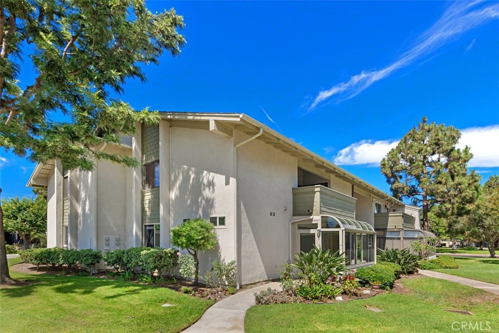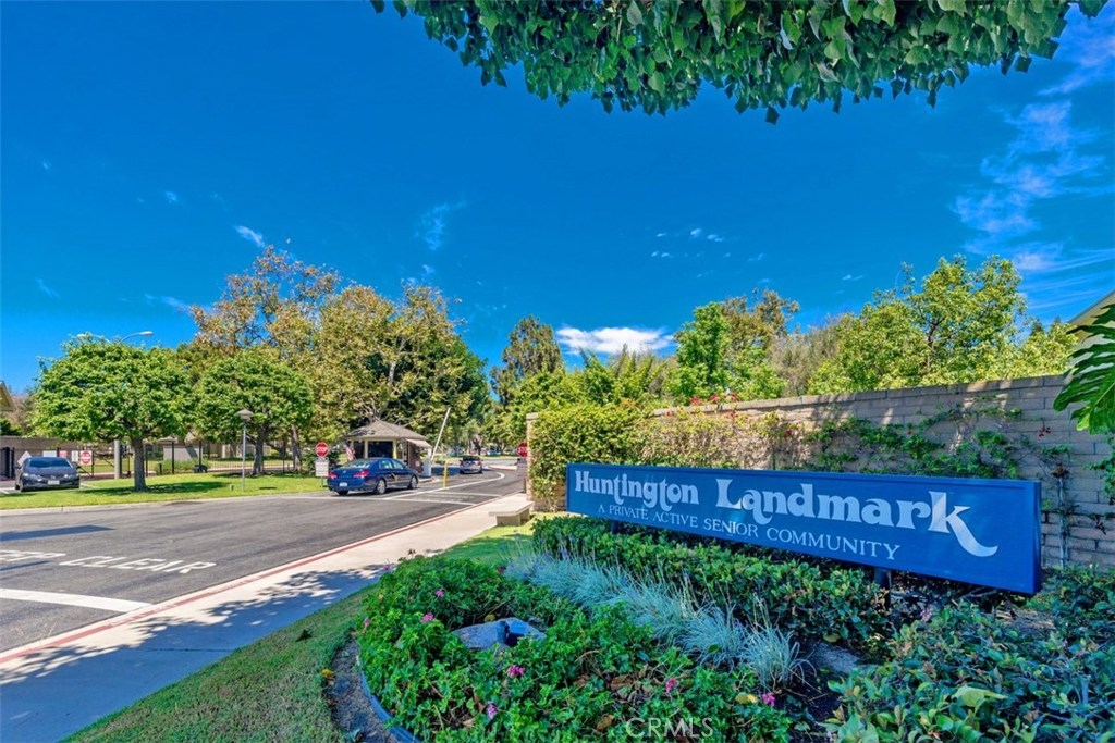 Fantastic, ground level, end unit situated in the delightfully ocean close, guard gated Huntington Landmark 55+ community. This light and bright 1 bedroom condo, features wide plank flooring and double paned windows throughout. The large master bedroom offers plenty of space and has customized built in cabinets in the walk in closet. Enjoy the Four Seasons enclosed patio and extended living area off of the living room, which suits well as an office, den or guest room. Fresh paint throughout, stackable washer/dryer included. Situated in a prime location of the community, across from the club house, but set back from the street with extensive greenbelt views. Comes with 1 car garage in prime location, complete with extra built in storage. Amenities in Huntington Landmark community include, 2 pools2 spas, putting green, tennis court, gym/weight room, billiards rooms, wood shop, shuffleboard, library, various classes/events, ceramics &fitness classes, trips, clubs, dances & bingo and so much more! Must be 55+ years old. Truly a wonderful community for active seniors. Don't miss your chance to secure this wonderful property.