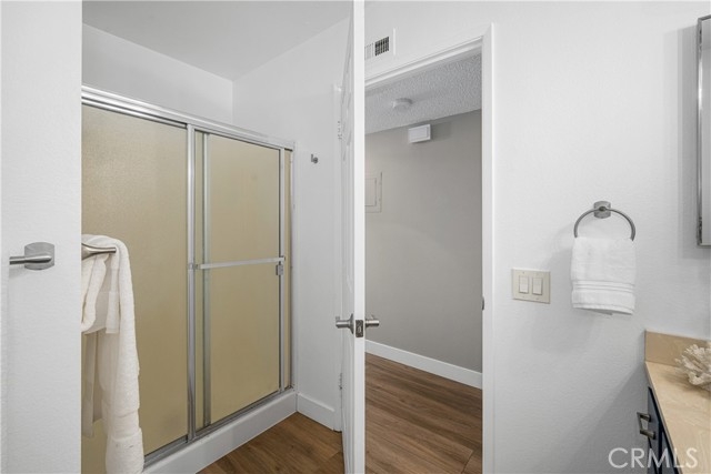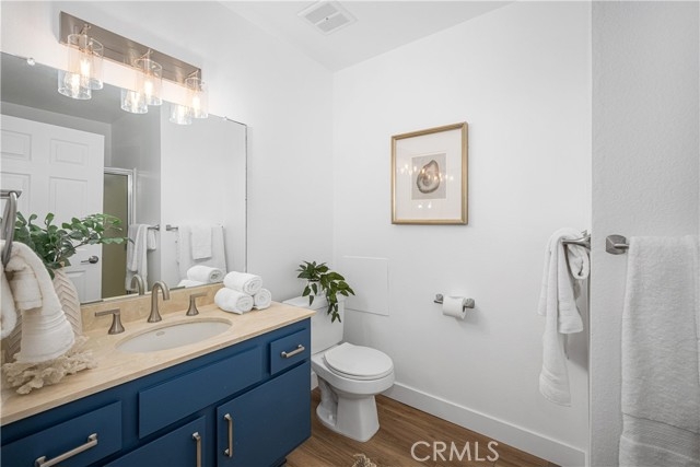 Upper level 2 bedroom, 2 bath condo in the desirable 55 plus Landmark community offering 1056 square feet of comfortable living in a quiet, park like setting minutes from the ocean. This home features vaulted ceilings and large sliding glass doors that open to a private deck, bringing in an open and airy feel with views of Saddleback and ocean breezes. Additional highlights include private laundry and a single car garage, plus ample guest parking. The primary suite includes its own bath and generous closet space, and the second bedroom works well for guests or a home office. Landmark is a guard-gated community known for its vibrant, active lifestyle with resort-style amenities such as a pool, hot tub, fitness center, tennis and pickleball courts, an expansive putting green, horseshoe pits, clubhouse, walking paths and greenbelts, BBQ areas, RV parking and indoor activity rooms including billiards, ping pong, arts and crafts, and a well-equipped woodshop. Conveniently located close to shopping, dining, the HB Senior Center, and the beach.