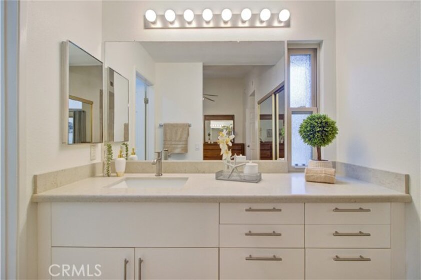 Location! Location! Location! Very Popular 2 Br Single Story Breakers floorplan with 2 Patios. The Center Atrium Patio has a Glass top Enclosure & the 2nd patio is off the Guest Bedroom. When you Walk through the door, you are Greeted with Such a Spacious Living Rm with Vaulted Ceilings. Tastefully Remodeled. New Paint. Laminated Wood Flooring throughout & Gorgeous Tile in Kitchen & Baths. Scraped ceilings. Dual Paned Windows and Sliders Throughout. Beautiful All White Kitchen with Updated Cabinetry, Recessed Lighting, Quartz countertops & White Appliances. Updated Built in Cabinetry Added in the Dining Area which provides so much Extra Storage Space. 2 Skylights in Dining Area. Both the Baths have been Updated. The Primary and Hall Baths have Reglazed Showers and the Hall Bath has a Reglazed countertop, Sink and New Kohler Faucet. The Primary Bath has updated Modern Cabinetry with Quartz countertops. The Enclosed Atrium Patio has a Glass top that Opens & Closes for Air flow and Adds another 144 sq ft of Living space! The Enclosed Atrium has wonderful natural light and is also equipped with an Awning. Raised panel doors throughout. Have Guests, yet need an Office or Spare Room? There is Murphy Bed in the Guest Bedroom with the Bed neatly folding up right up into the wall so that the Room can be used as an Office &/or Sitting area. Condo has been Repiped. Lovely Sunny South facing patio off the Guest Bedroom which Provides so Much Natural Light that Streams into the Guest Bedroom. Enjoy the ocean breezes through your hidden front screen door. Feels Like Being at a Resort with a Fabulous Recreation Center. 2 Pools, 2 Spas with Main Rec Center Pool being almost Olympic Size! Tennis Courts, Pickleball Courts, Ping Pong, Dances, Trips, Movies, Clubs, Parties, Concerts, Fitness Center, Fitness classes-Water Aerobics, Yoga & Zumba, Woodshop, Chorale, Quilters, Art & Ceramics Clubs & Classes, Billiards, Putting Green, Library & Much More. Well Maintained Grounds with Mature Trees. Hunt Landmark is located close to the Post Office and Grocery Store and Famous Beaches of Huntington Beach. Near the HB Pier, Downtown Area & Pacific City. You are Close to Shopping and the Post Office. 24 Hr Guard Gated 55+ Community Near the Ocean (Approx.1.2 Miles)