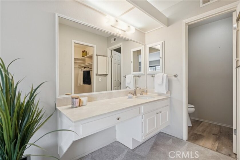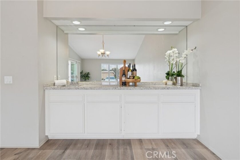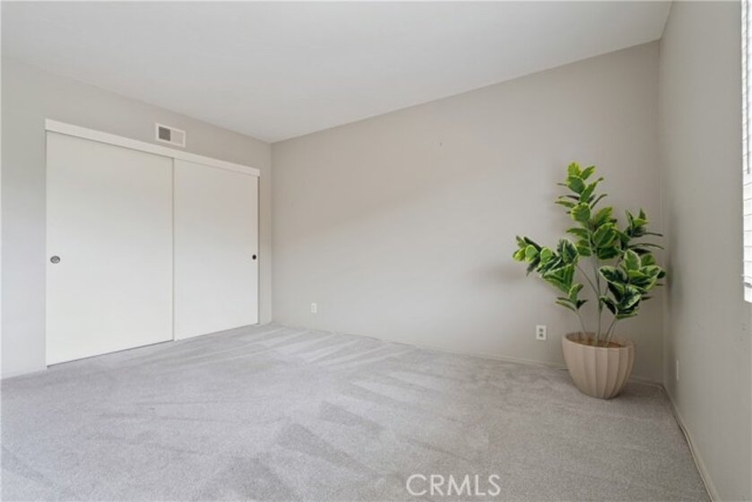 Welcome to this highly sought-after end-unit townhome located in the guard-gated, 55+ community of Huntington Landmark. This light and bright residence offers a desirable layout with two private outdoor living spaces, creating a wonderful indoor-outdoor flow. The front patio, accessed directly from the living and family room area, provides a charming space to relax or entertain. The primary bedroom features its own rear patio, offering a quiet retreat with added privacy—an appealing and rarely available feature. Inside, the home offers luxury vinyl plank flooring throughout the main living areas, with carpeted bedrooms for added comfort. The kitchen features white cabinetry, granite counter tops, stainless appliances, lovely window overlooking patio and a stackable washer and dryer conveniently located within the space. A custom built-in wet bar with sink adds both character and functionality, ideal for entertaining or everyday enjoyment. Both bathrooms are original and well maintained, offering a clean, light, and bright feel. The primary bathroom includes a grab bar in the shower, providing added convenience and accessibility. Additional features include a detached one-car garage and guest parking conveniently located directly in front of the unit. Huntington Landmark is a premier 55+ community offering resort-style amenities including two heated swimming pools and spas, pickleball, tennis, fitness center, library, billiards, ceramics studio, woodshop, putting green, shuffleboard, bocce ball, RV storage, organized clubs and activities, expansive greenbelts, on-site management, and guard-gated security. HOA dues include access to all the terrific amenities. Ideally located close to the beach, shopping, dining, and transportation—this is Southern California living at its best.