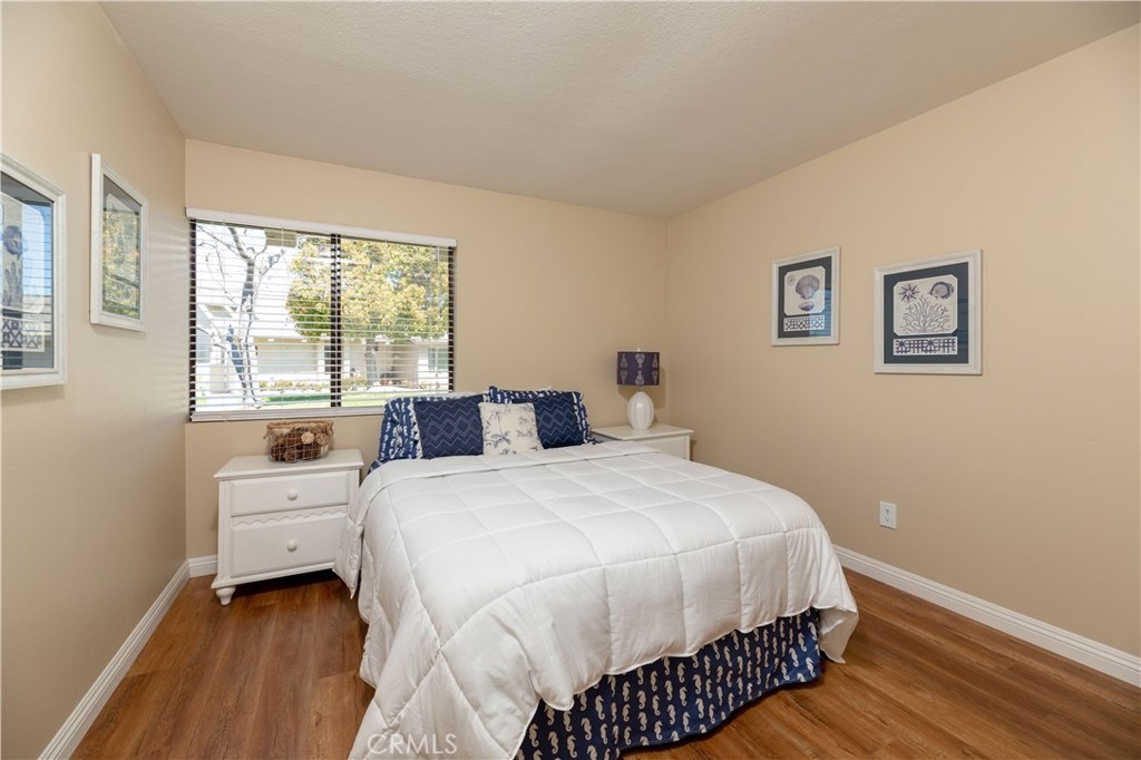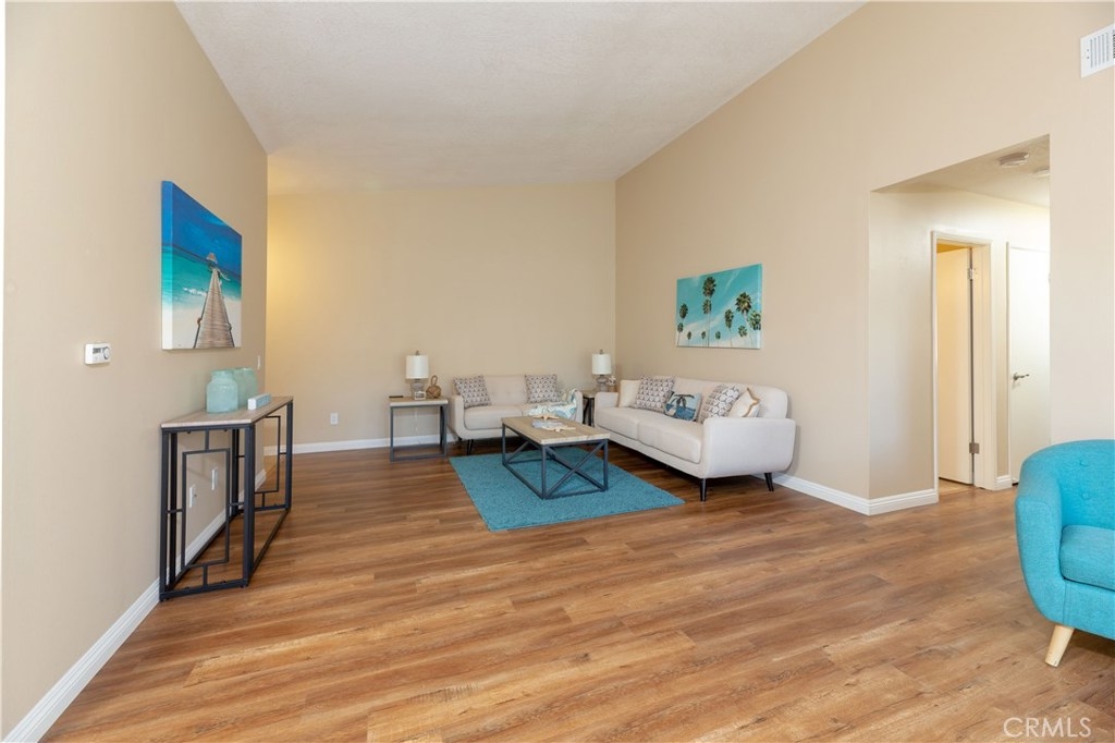 Highly upgraded end unit in Huntington Landmark community. Completely remodeled 3 bedroom 2 bath Laguna Model in a great location. Move in ready with newer flooring throughout, clean paint, smooth ceilings, and natural light. Kitchen features high end stainless steel appliances, granite counters, beautiful mouldings, recessed lighting, and white cabinetry. Both bathrooms have been beautifully remodeled with granite counters, designer tile, lighting, and white cabinetry. Large master bedroom has walk-in closet and master bath with double vanity. Additional bedrooms have ample space for guests, offices, or craft rooms. Living and dining rooms open to large private patio. 55 plus community features a guard gate, pools, spas, putting green, sports courts, gym, activities, socials, and so much more!
